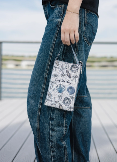 Hand beaded by artisans in India, this versatile smart phone bag can be worn cross body or as a wristlet. Includes 54" cross body strap that can tuck inside when not in use, a short strap that unsnaps so the bag can be attached to a larger bag or belt, and a separate, secure side zip pocket for cash and credit cards. 4.5"W x 7.5"H