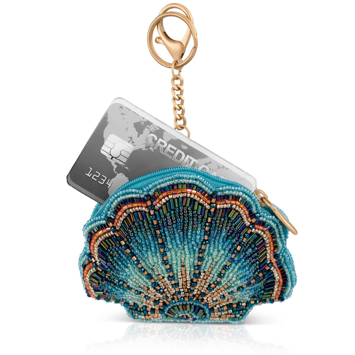 Make every day feel like a beach day with this shimmering seashell beaded coin purse! Bursting with oceanic blues, sparkling beads, and radiant detail. Clip it on and carry a splash of seaside magic wherever you go.