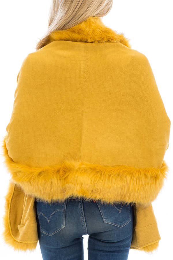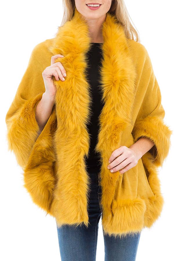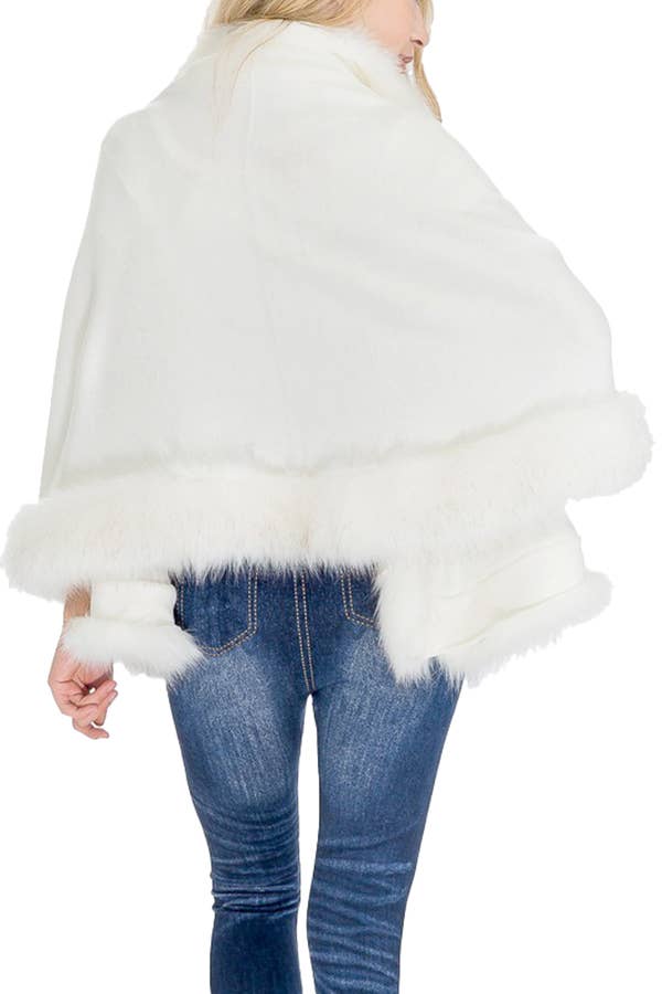 Solid Color Lux Faux Fur Trim Open Silhouette Cape Poncho