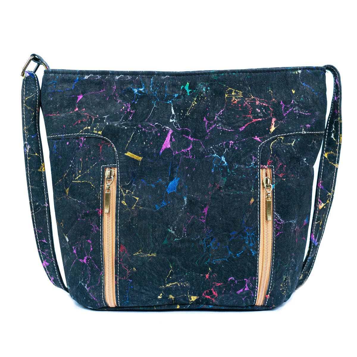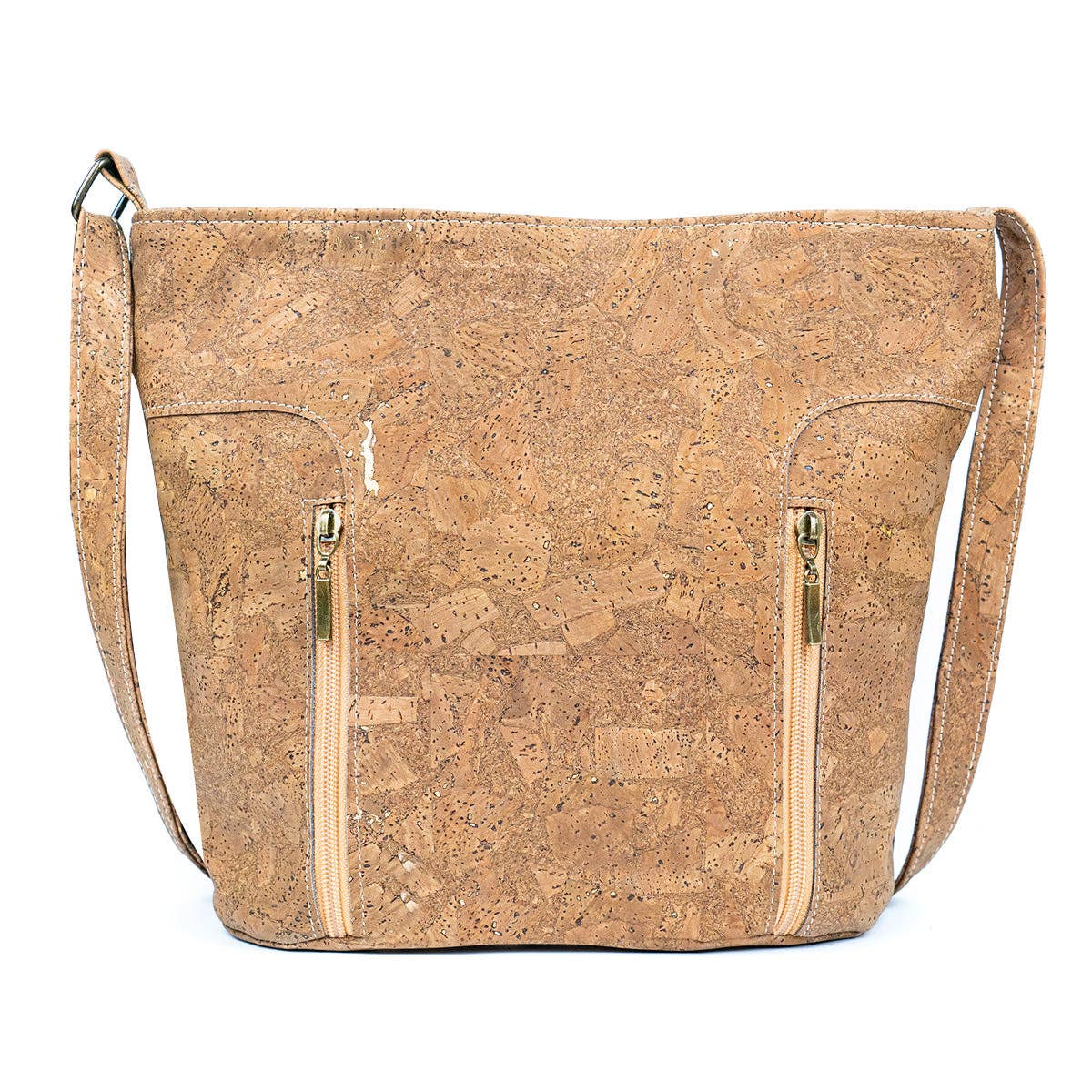 Product Description: This fashionable women's crossbody bag is crafted from high-quality, sustainable cork, showcasing a unique, eco-friendly style. The bag features two convenient front zippers and a rear zippenside, a small pocket helps organize smaller items, all secured by a large top zipper. Length: 4.7 inches Width: 11.8 inches* Height: 10.2 inches