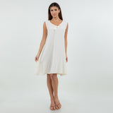 72271 Long Polka Dot Dress Linen with V-neck and Short Sleeves