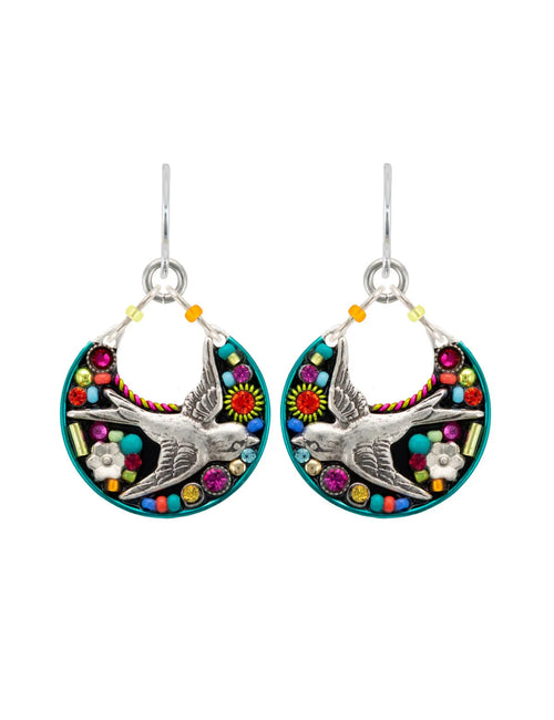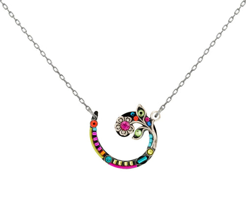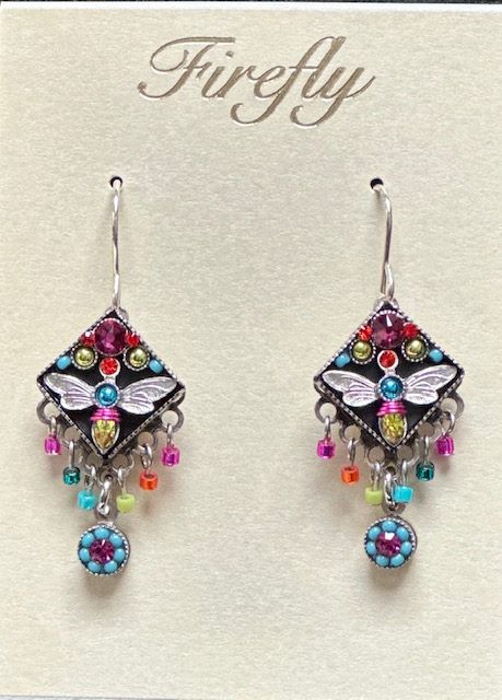 Firefly pieces are unique with distinguishing strong colors.The designs feature the clever use of mosaics with crystals and gemstones to create miniature works of art. Brass and nickel silver wire are most common. Japanese or Czech glass beads and Austrian Swarovski Crystal embellishments give this jewelry a stunning sparkle.