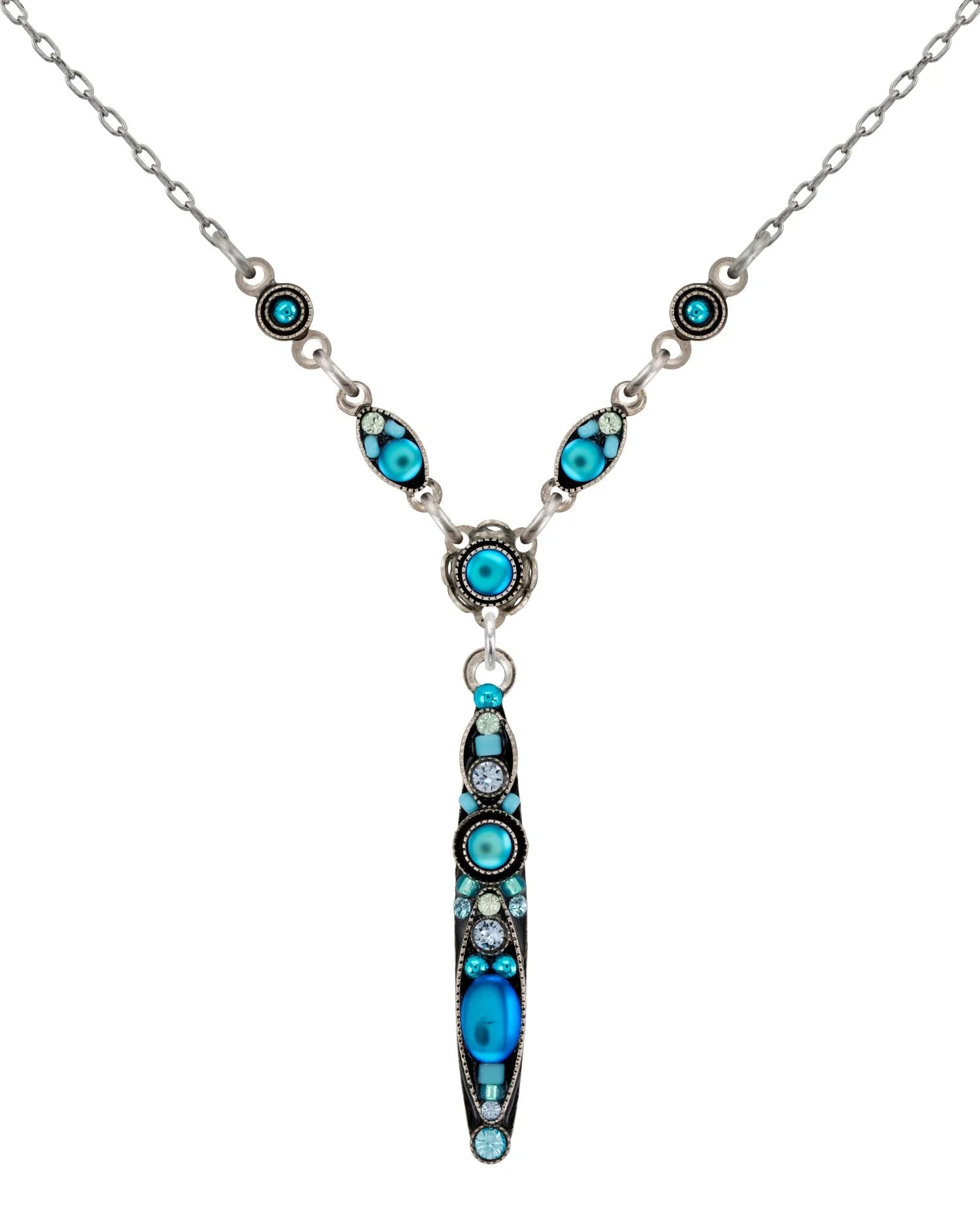9272-LB Moonlight Linear Y Necklace-Light Blue