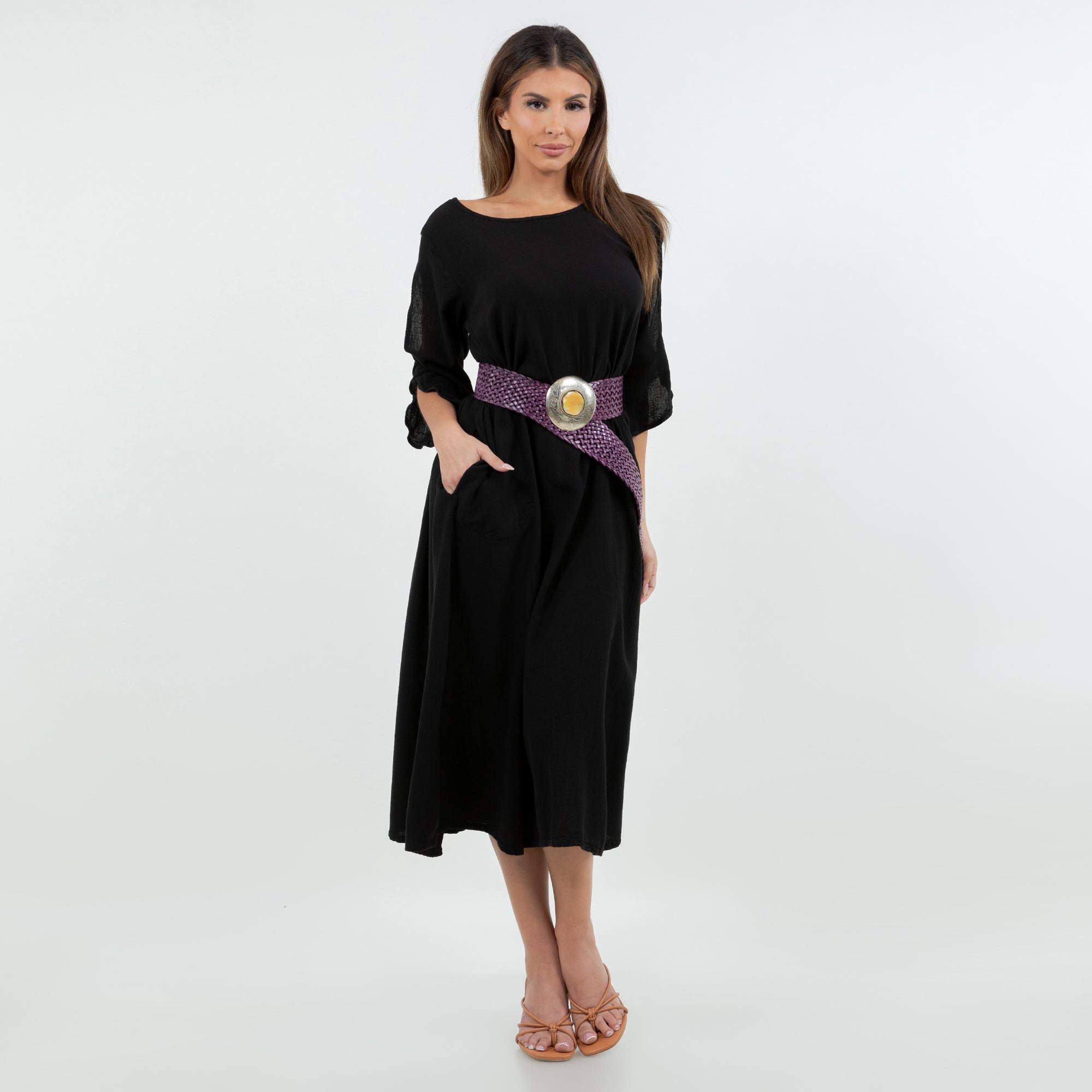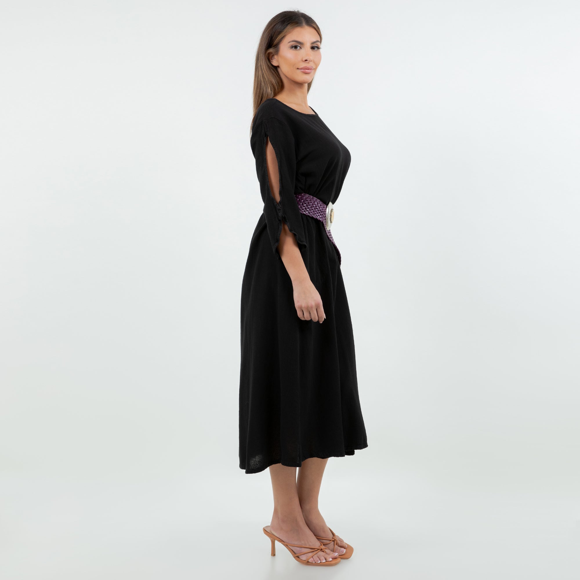 Extremely flattering style with peek a boo sleeve and perfectly scooped neckline with pockets!