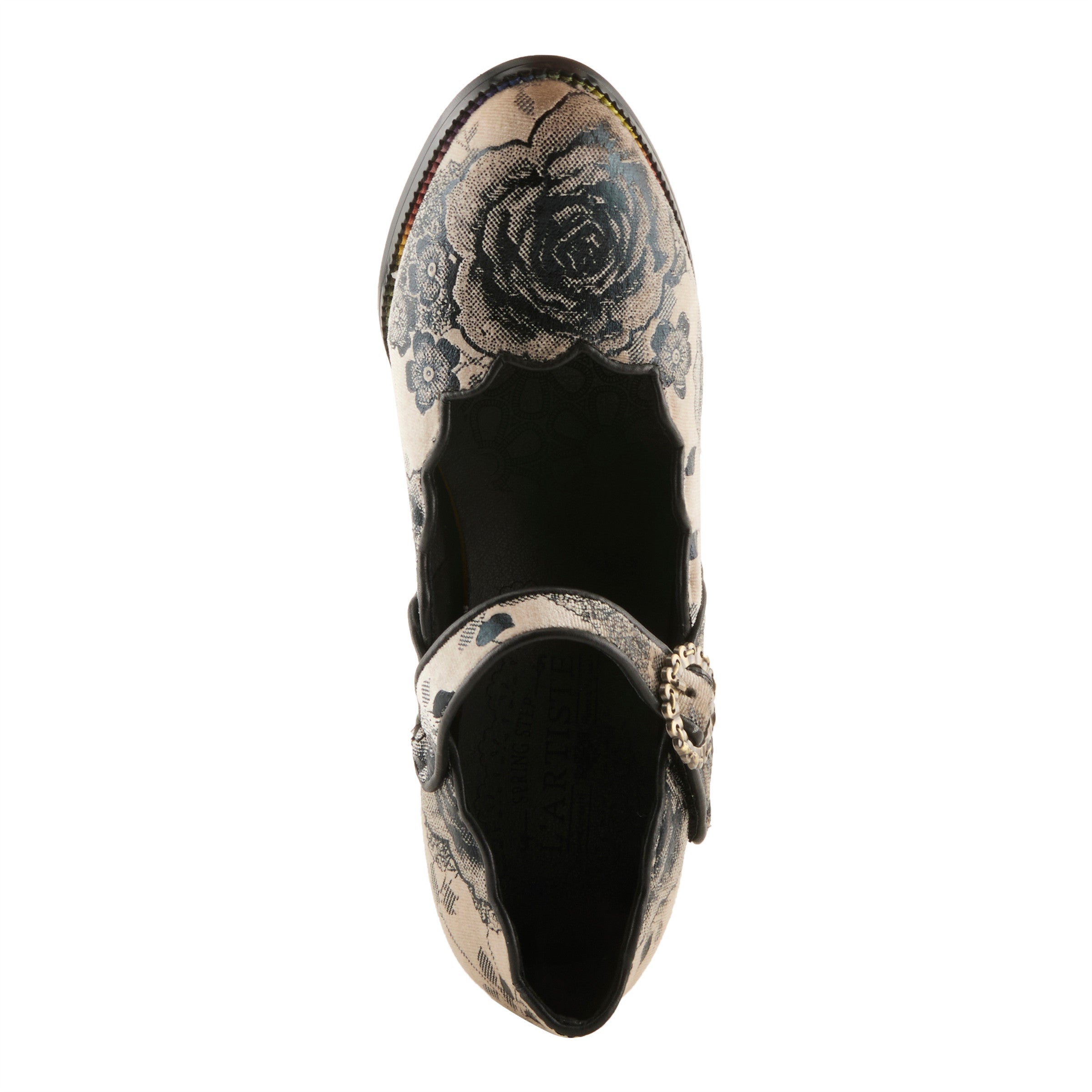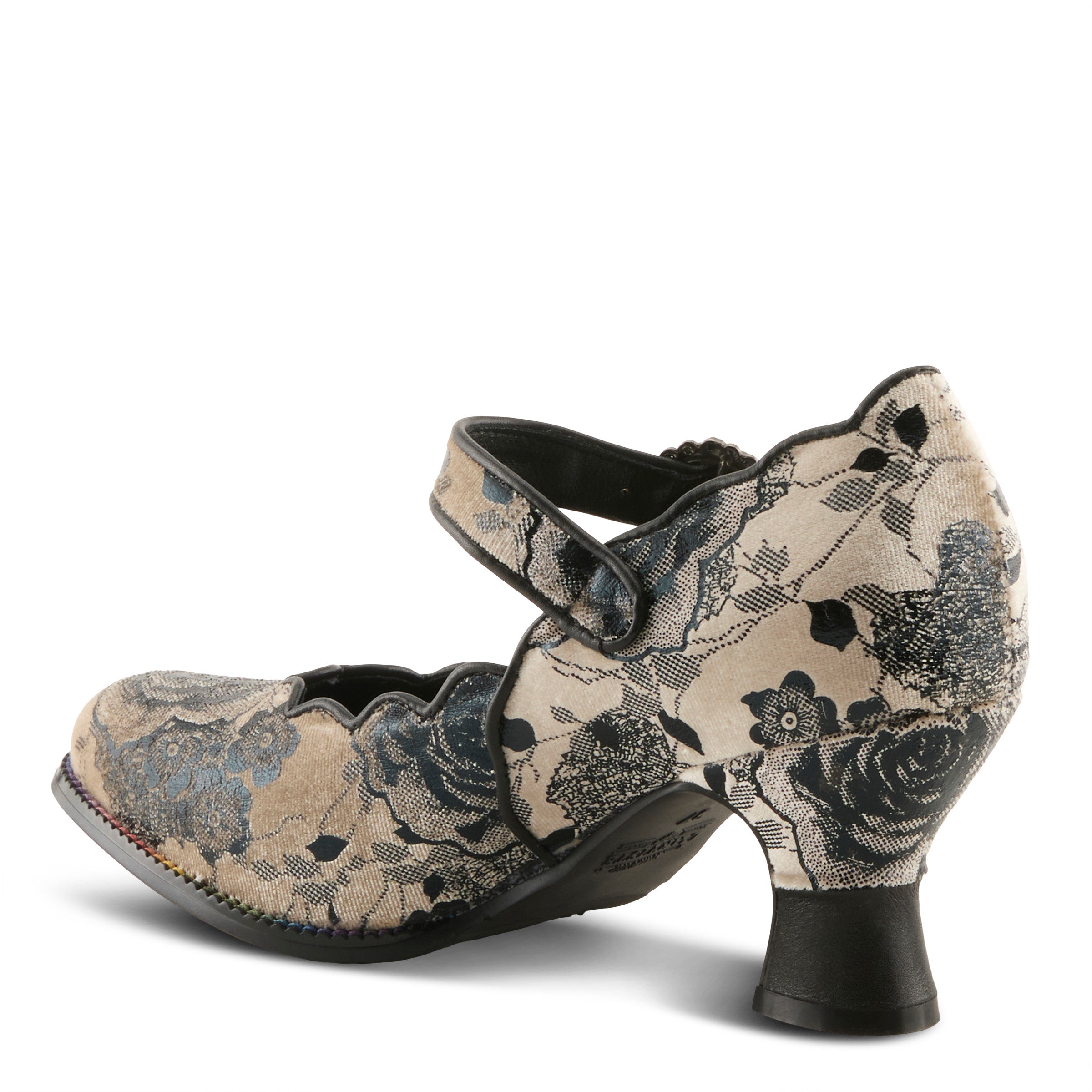 Indulge in vintage-inspired elegance with this stunning baroque-style Mary Jane. Crafted with a luxurious velvet and leather combo upper, this shoe features an artistic blend of colors, textures, and scalloped edges for a truly unique look. The ornate, antique-style buckle complements the adjustable hook-and-loop closure, offering both style and convenience. A modest, sculpted heel provides a graceful lift while ensuring comfort throughout the day. Perfect for adding a whimsical yet sophisticated touch to any outfit, this shoe is a wearable piece of art designed for the modern, trend-forward woman.