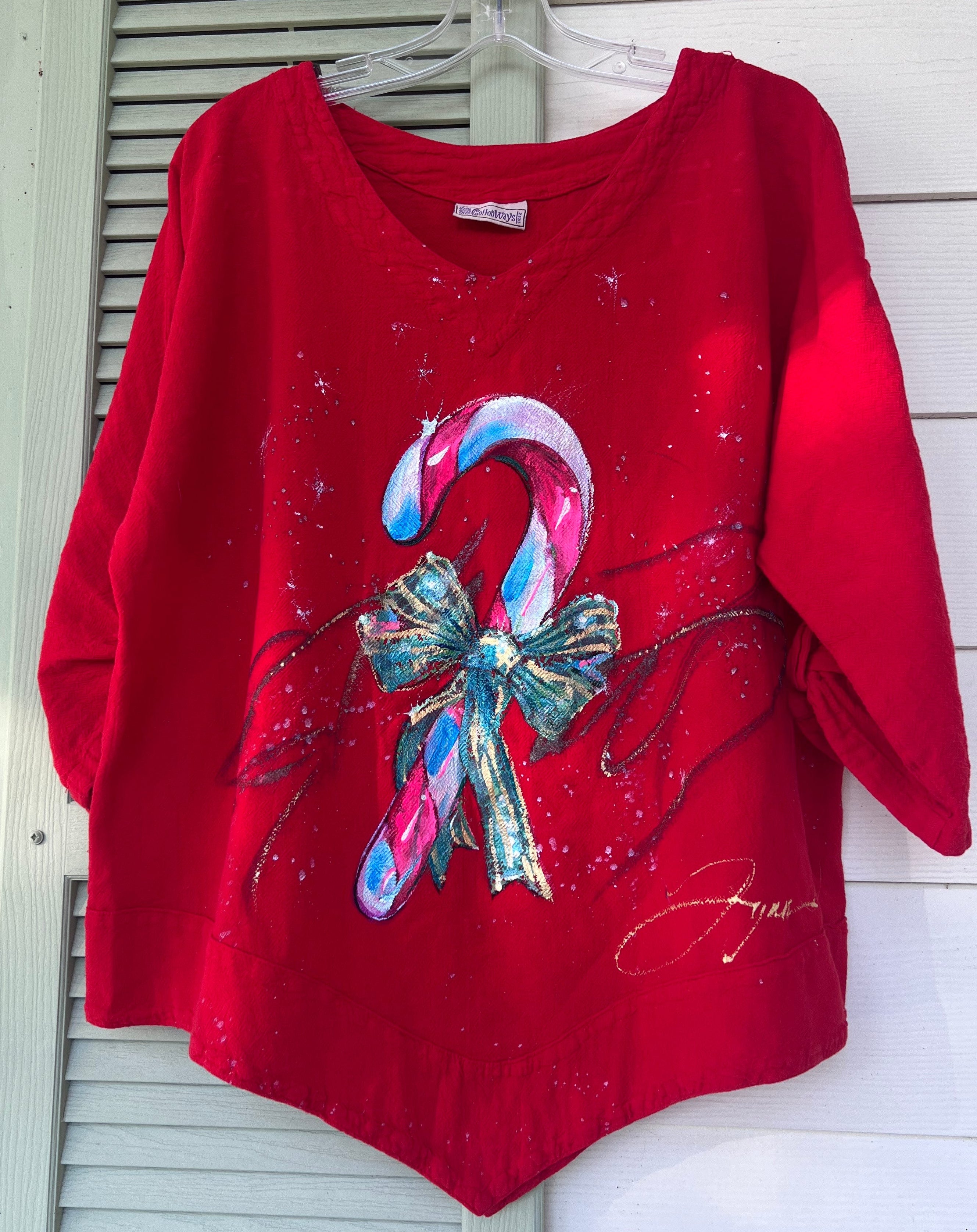 Choose from sizes 0 (XS/S), 1 (S/M), 2 (L/XL), 3 (2X/3X), or 4 (4X/5X) for your one of a kind hand painted design!