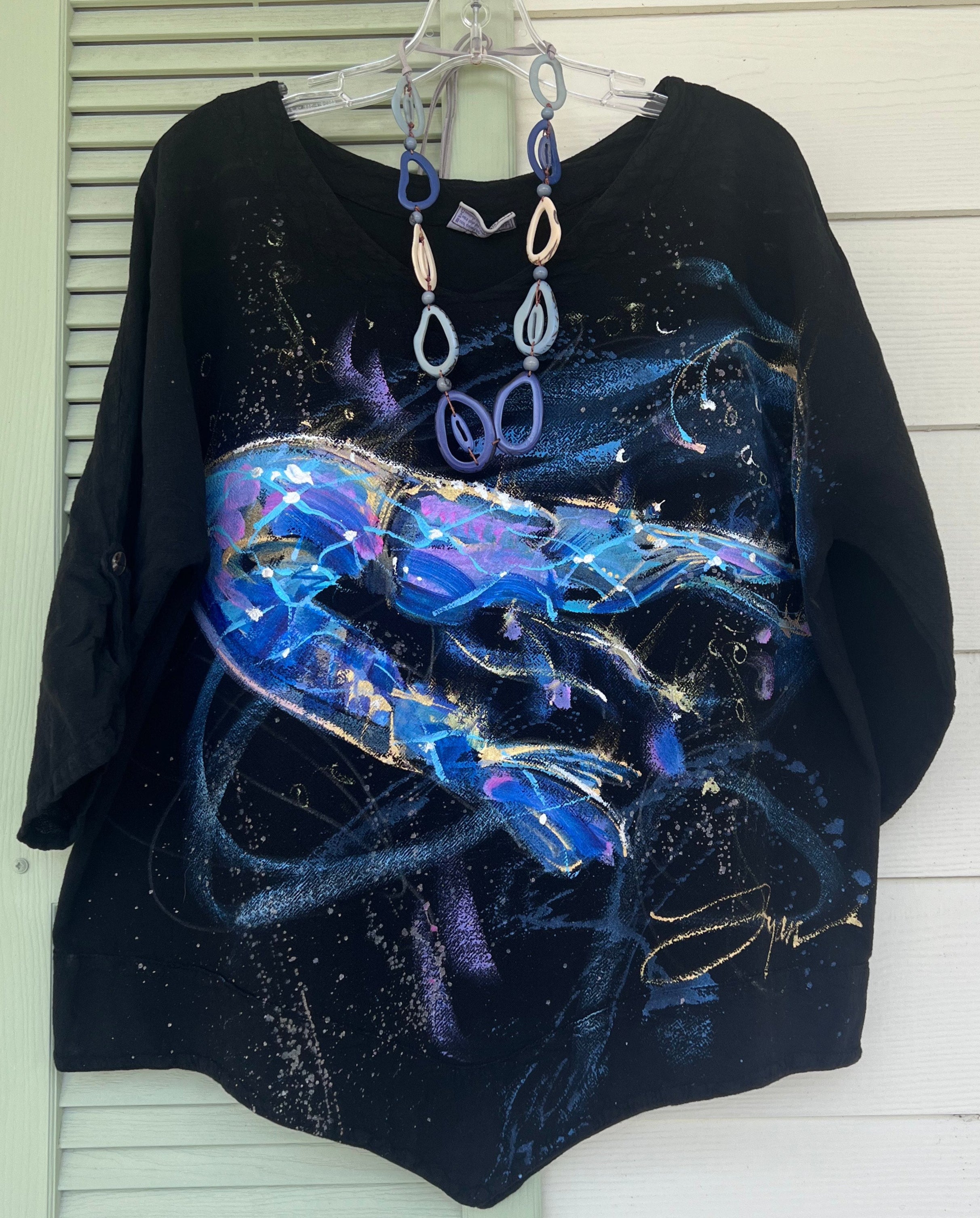 Choose from sizes 0 (XS/S), 1 (S/M), 2 (L/XL), 3 (2X/3X), or 4 (4X/5X) for your one of a kind hand painted design!