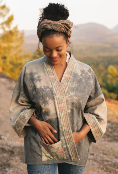Crafted from cozy printed cotton & spandex and lined with super soft poly-fleece, our Cottage Jackets combine the warmth and comfort of a cardigan with the style, versatility, and look of our Stardusters. They are washable, and include patch pockets. After many months of development, we're so excited to welcome this special new piece to our collection for cooler days!