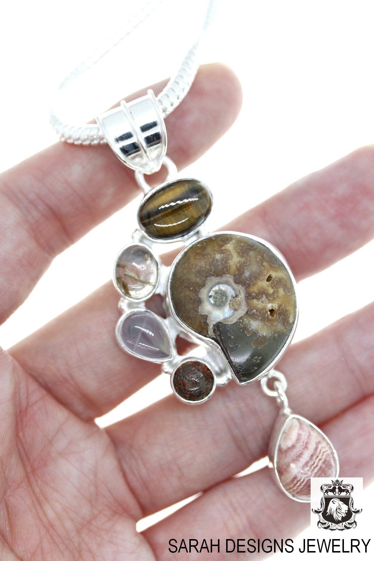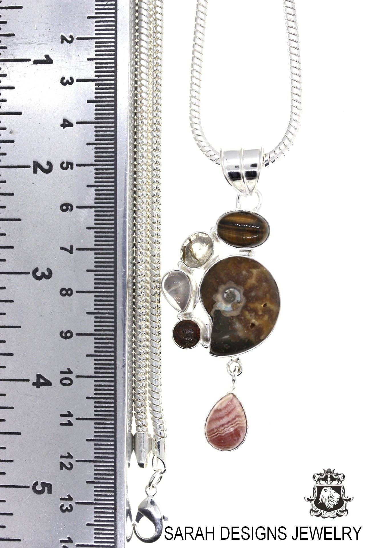 Ammonite Phodochrosite Pendant 4mm Snake Chain P1768