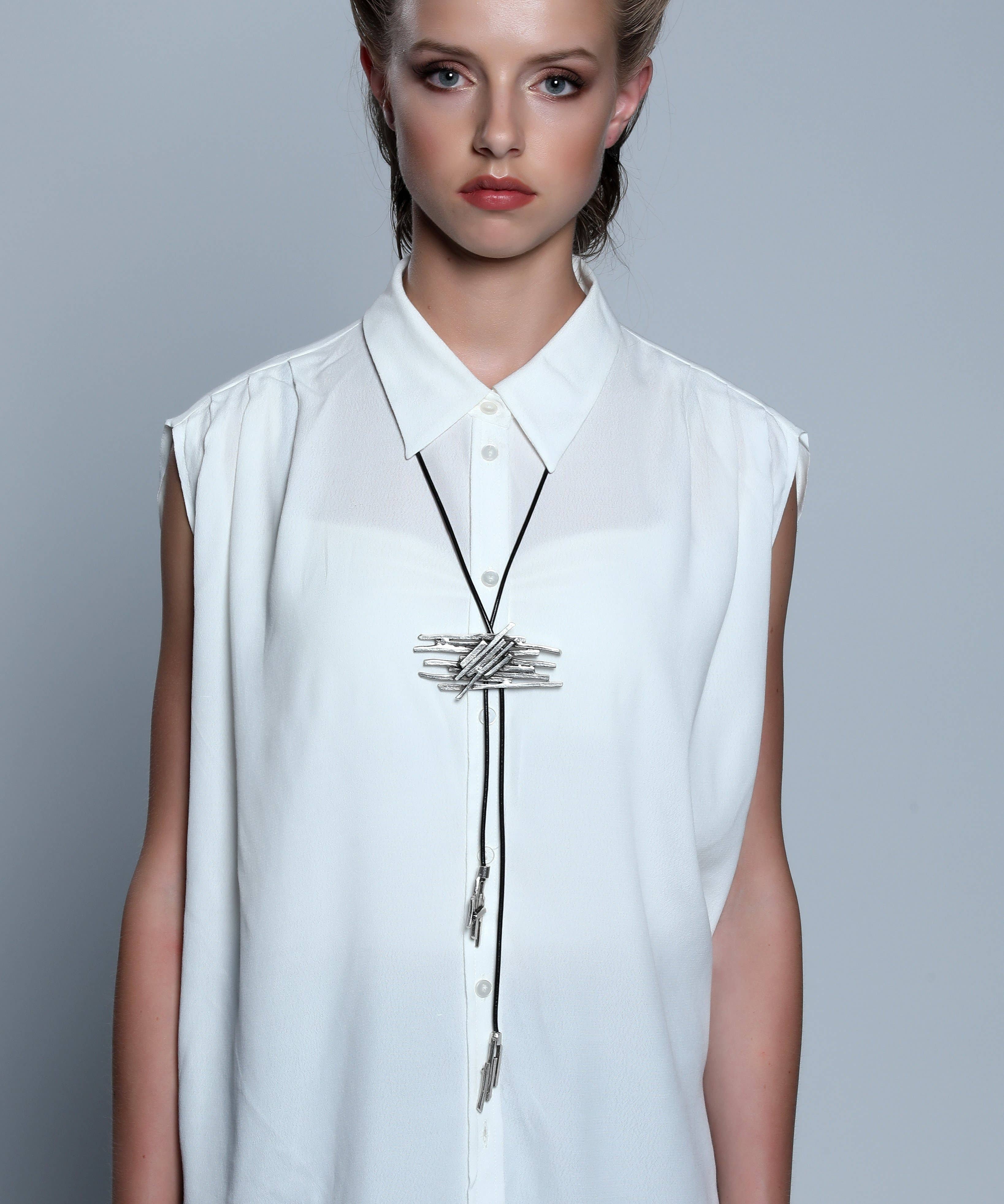 1081 Silver Plated Tree Branch Design Leather Necklace