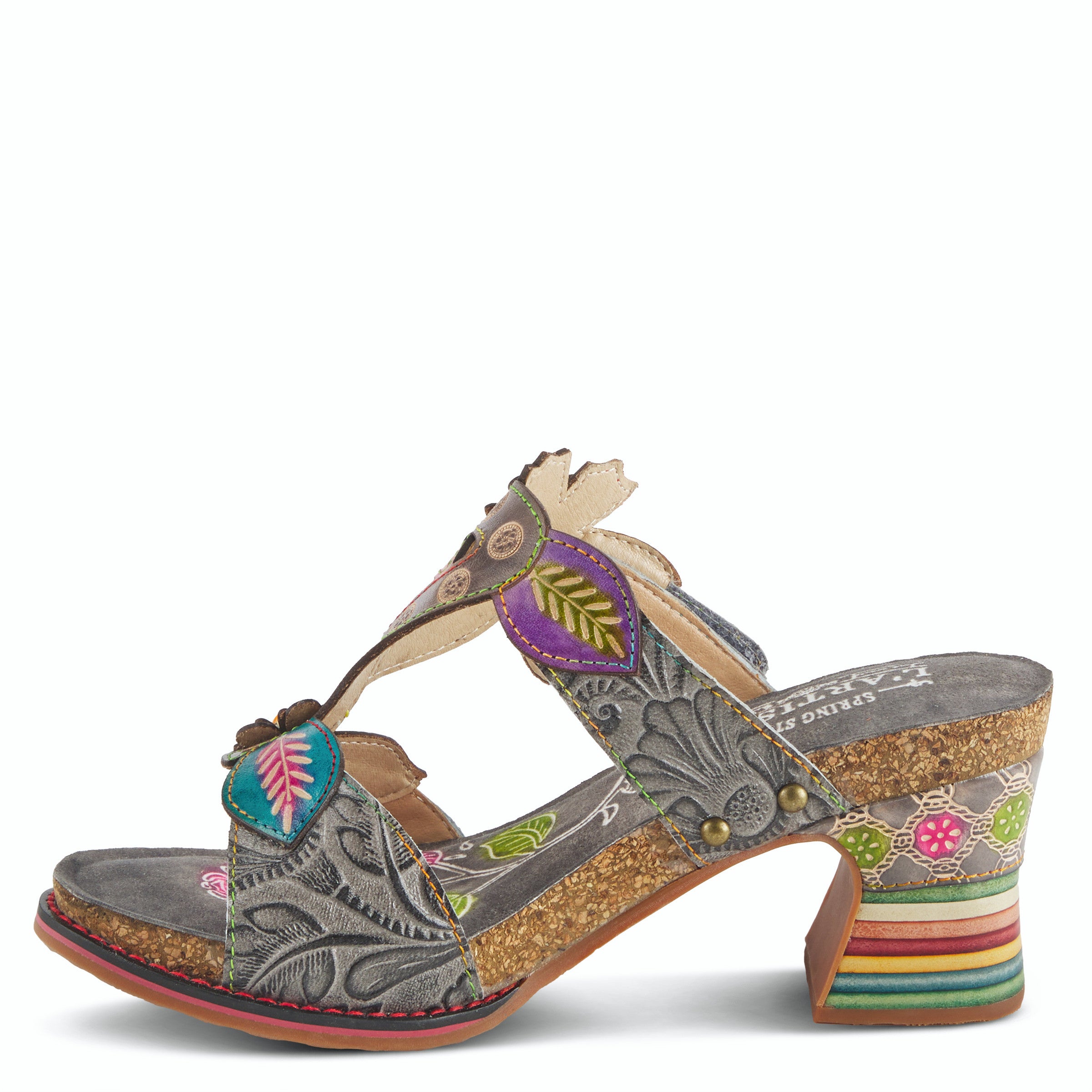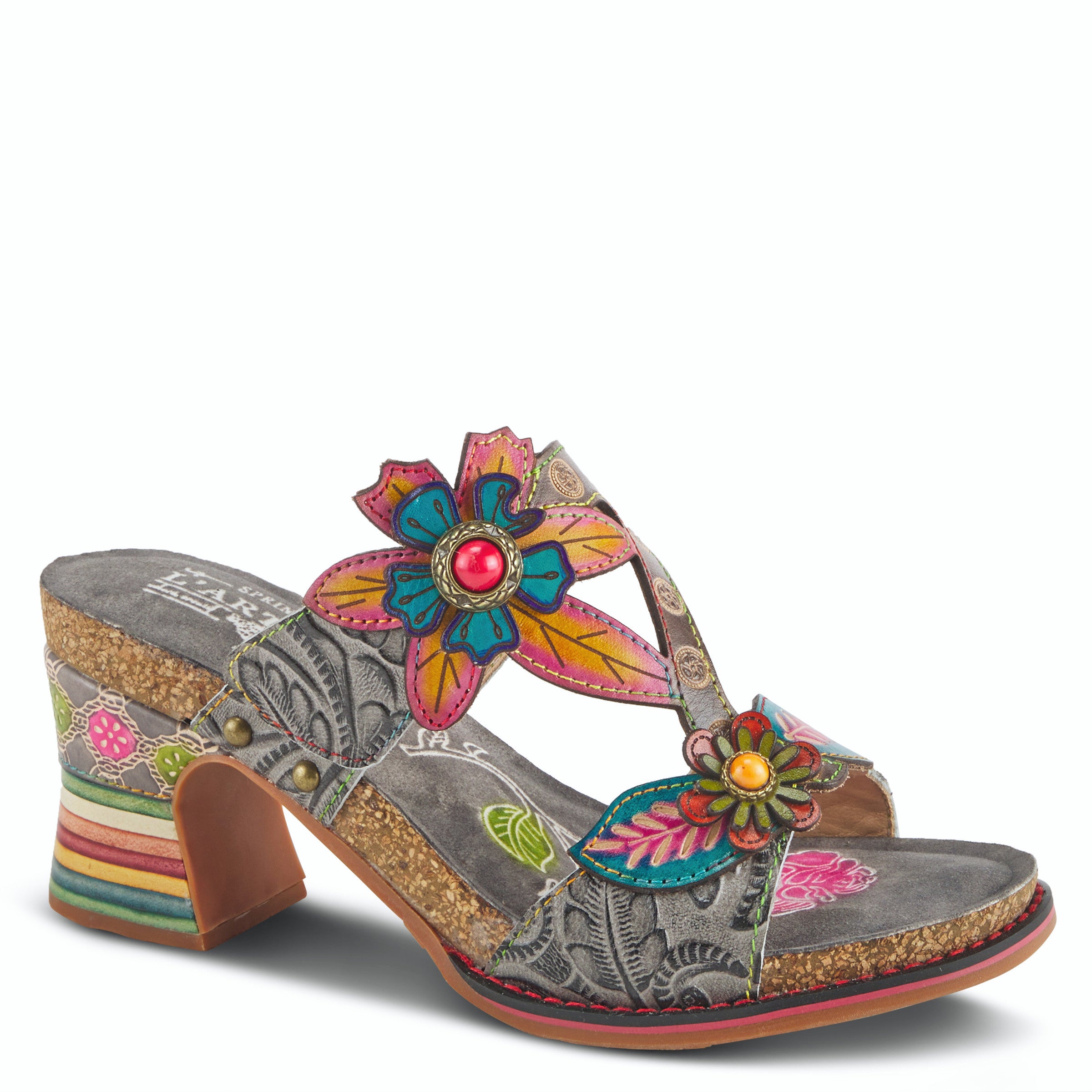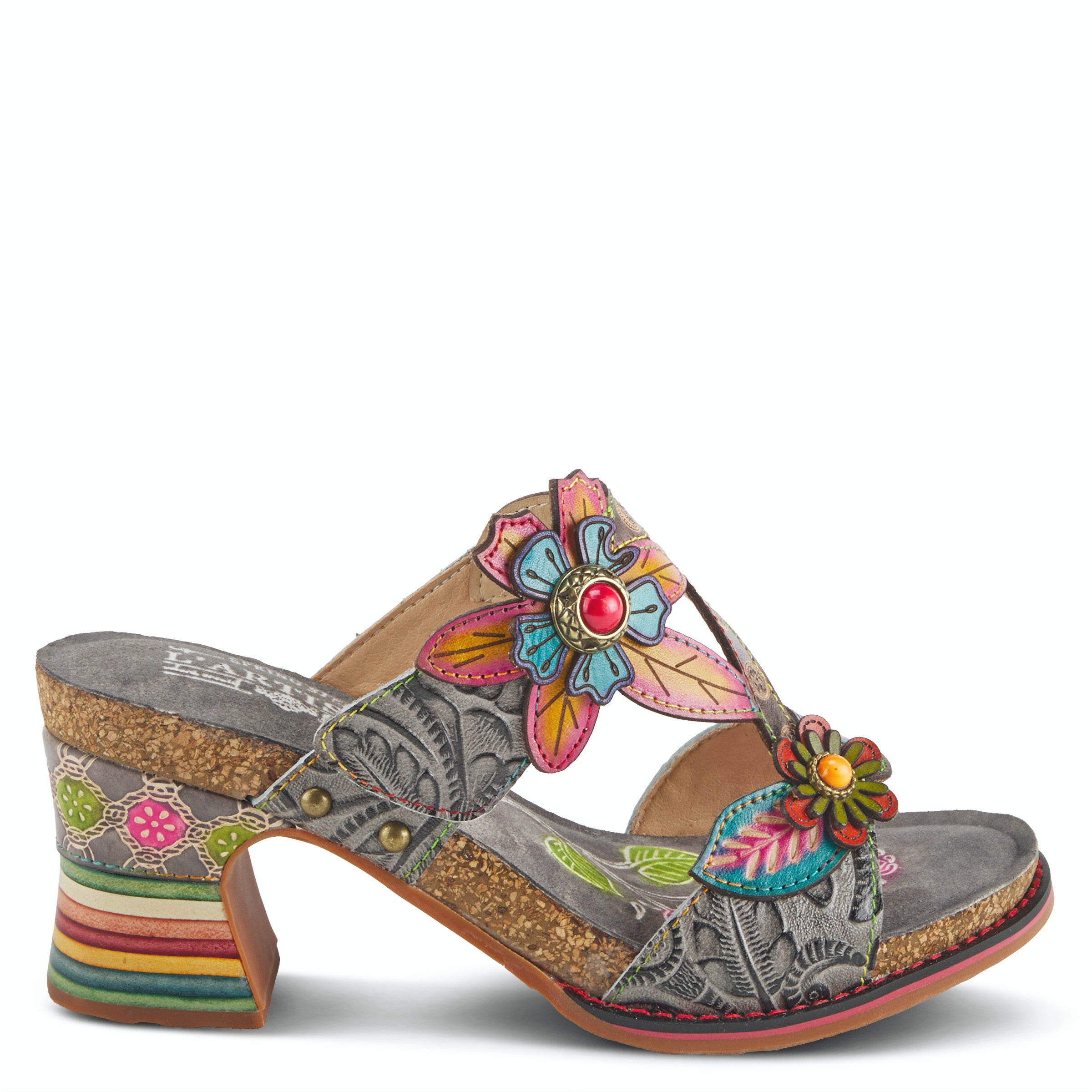 These shoes are pieces of art for your feet. This rainbow heel and unique color combinations really make this shoe stand out. Features asymmetrical middle strap, decorative metal buttons on the side and 3D flowers with ornate buttons.