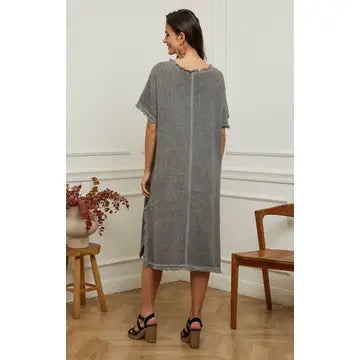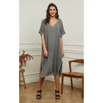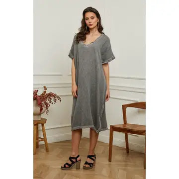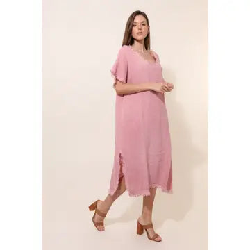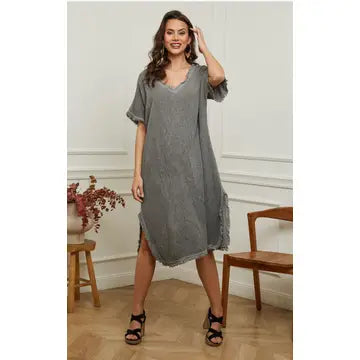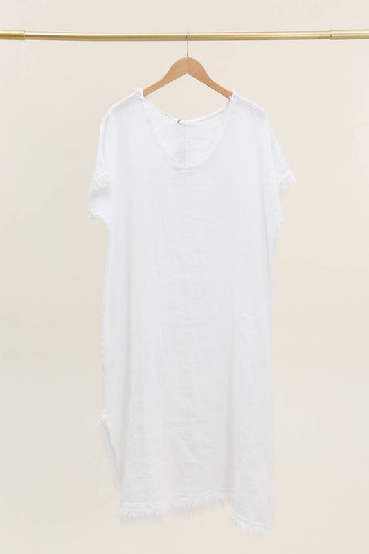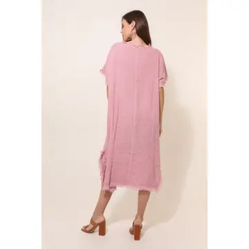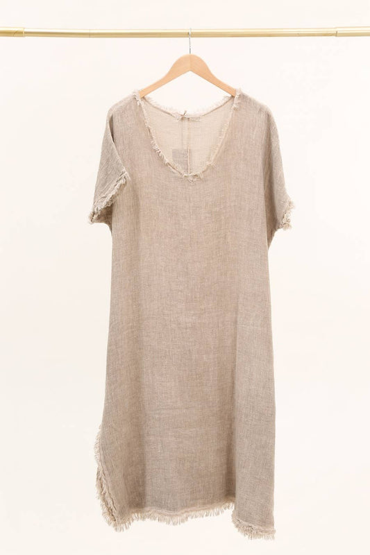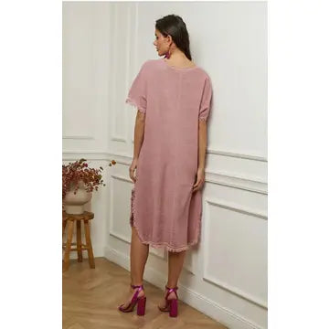 Endless comfort cotton and linen dress with fringe details.