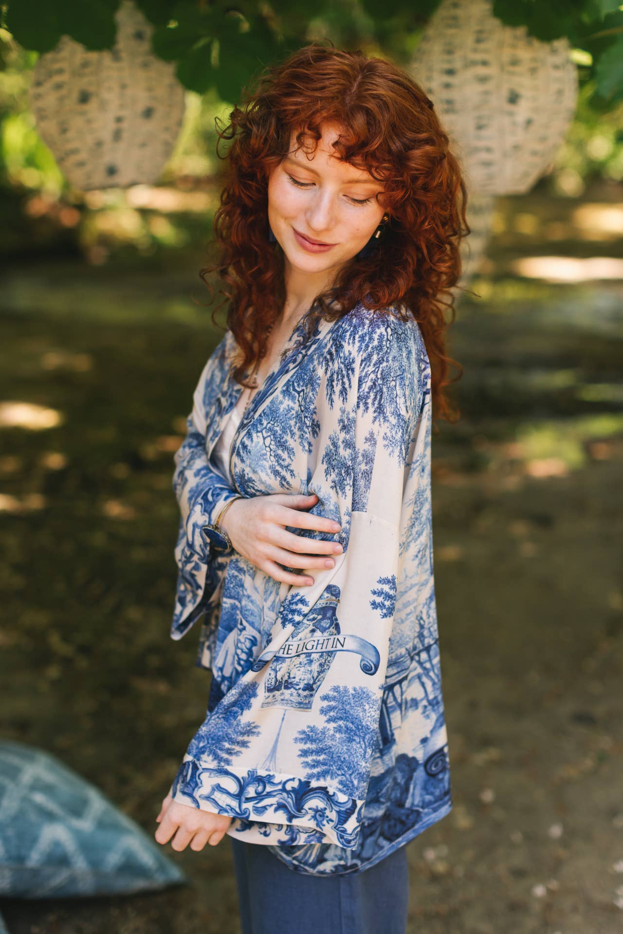 Let The Light In Pixie Duster Cropped Kimono w/ Delft Print
