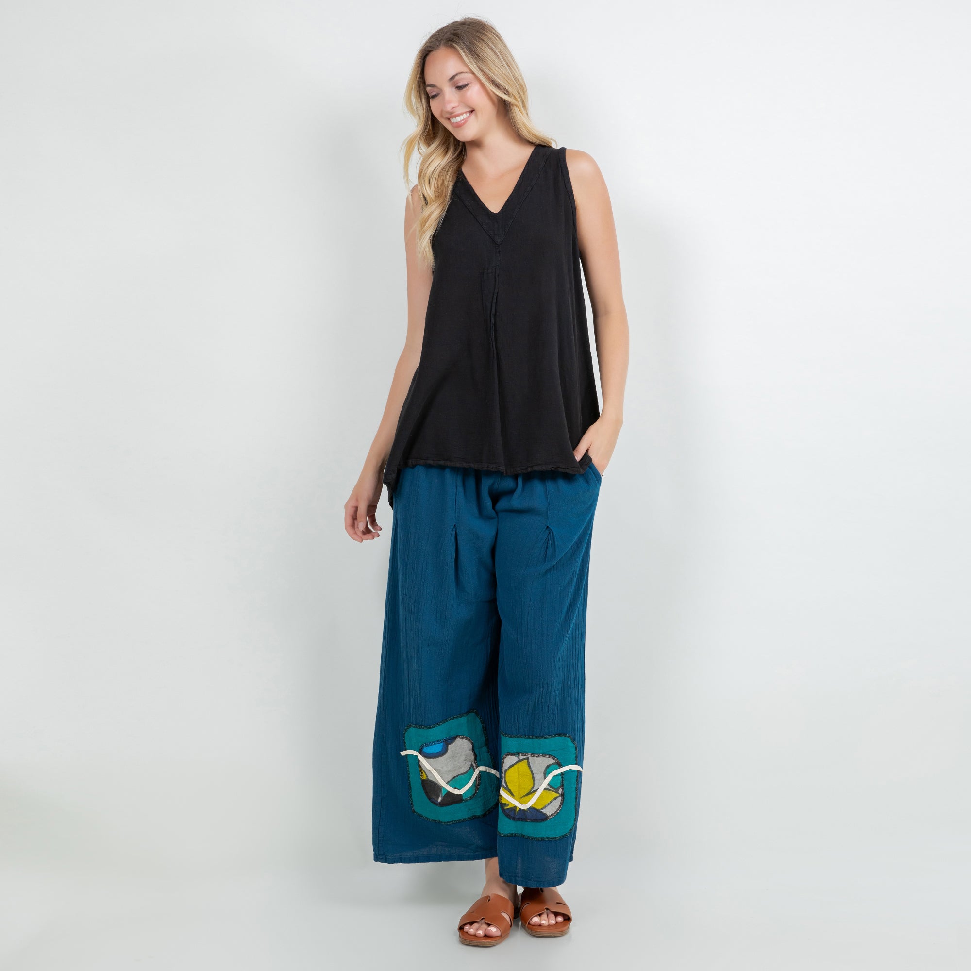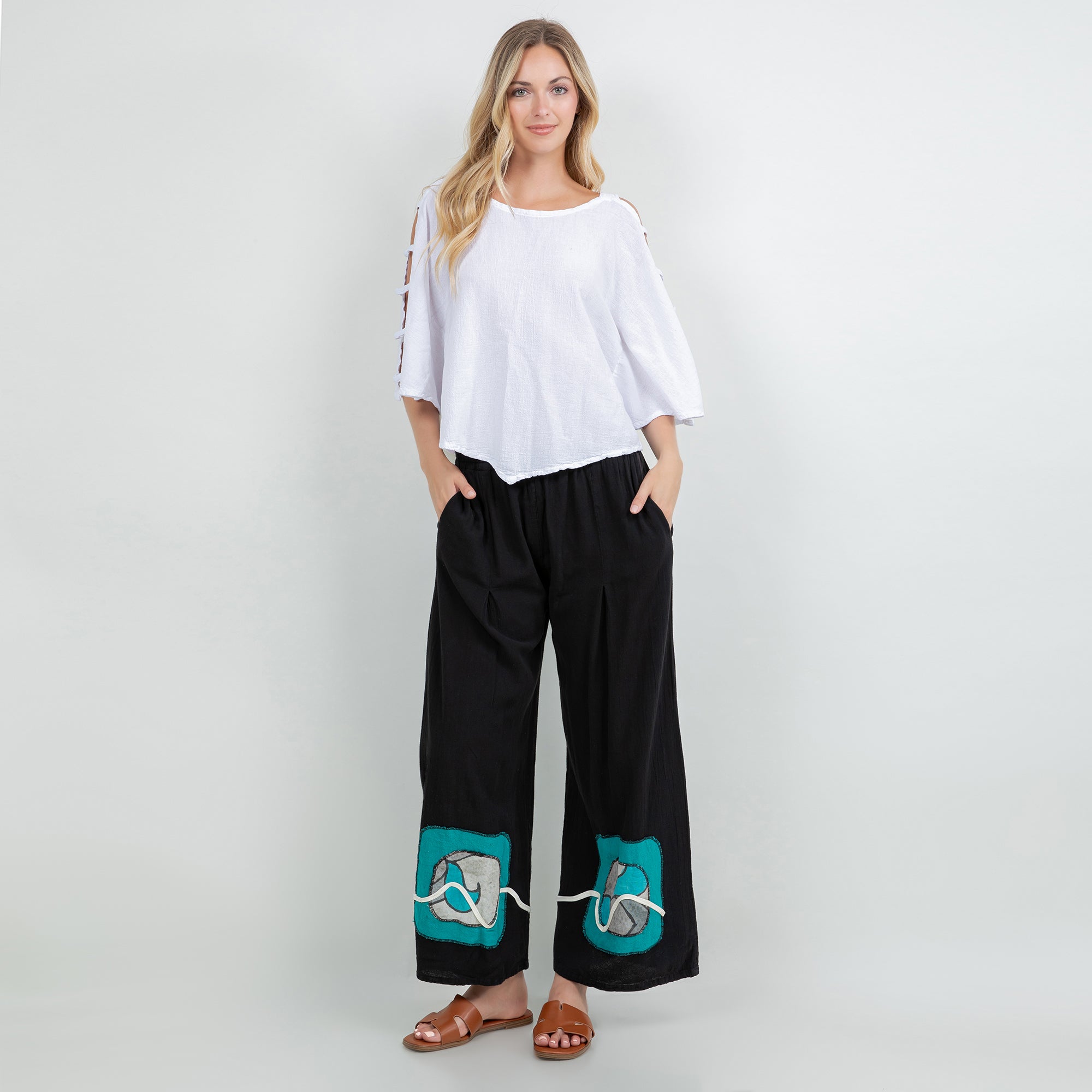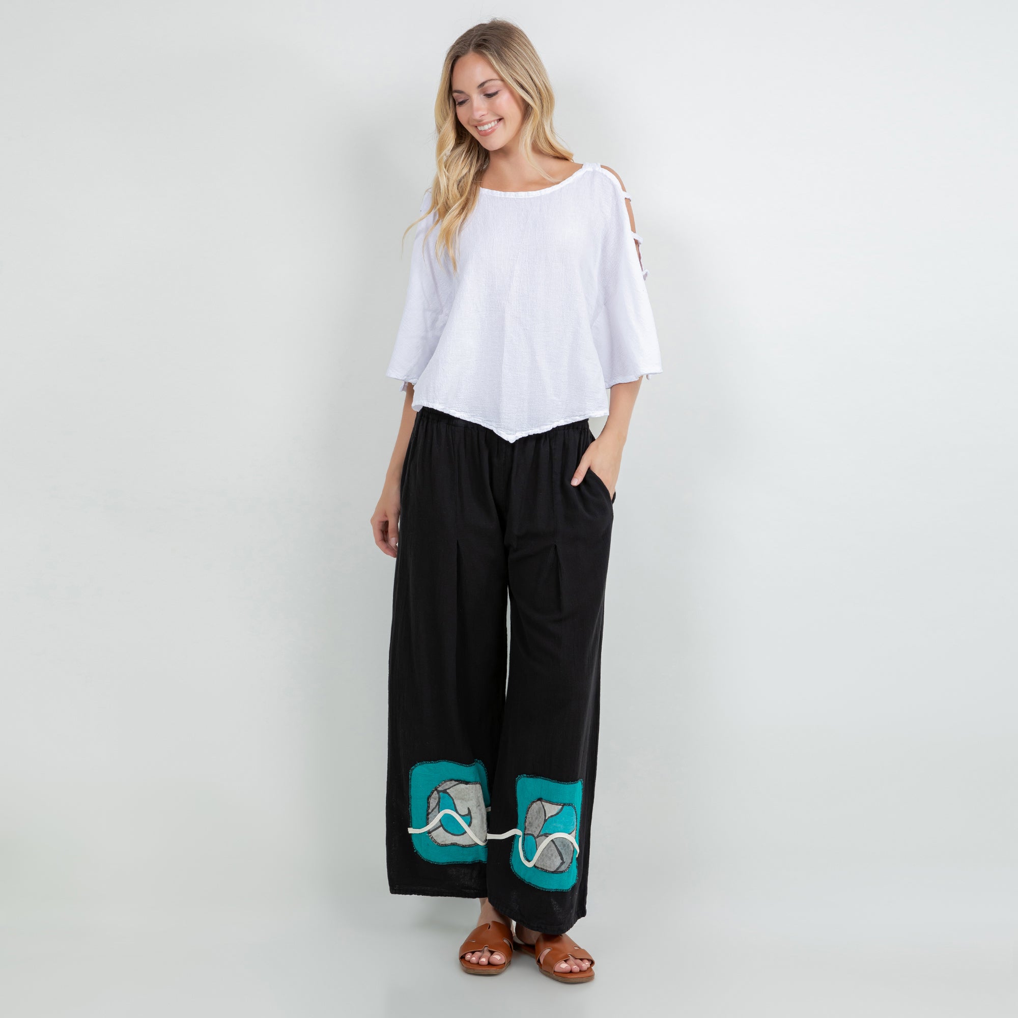 Chelle Artistic Wide Leg Pant - Handpainted Accents