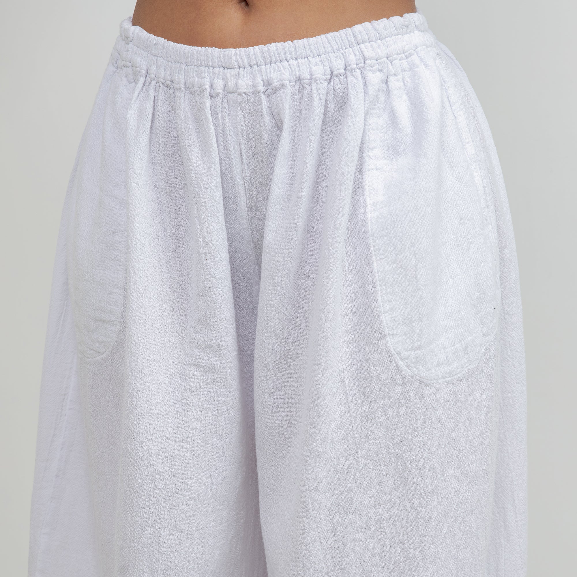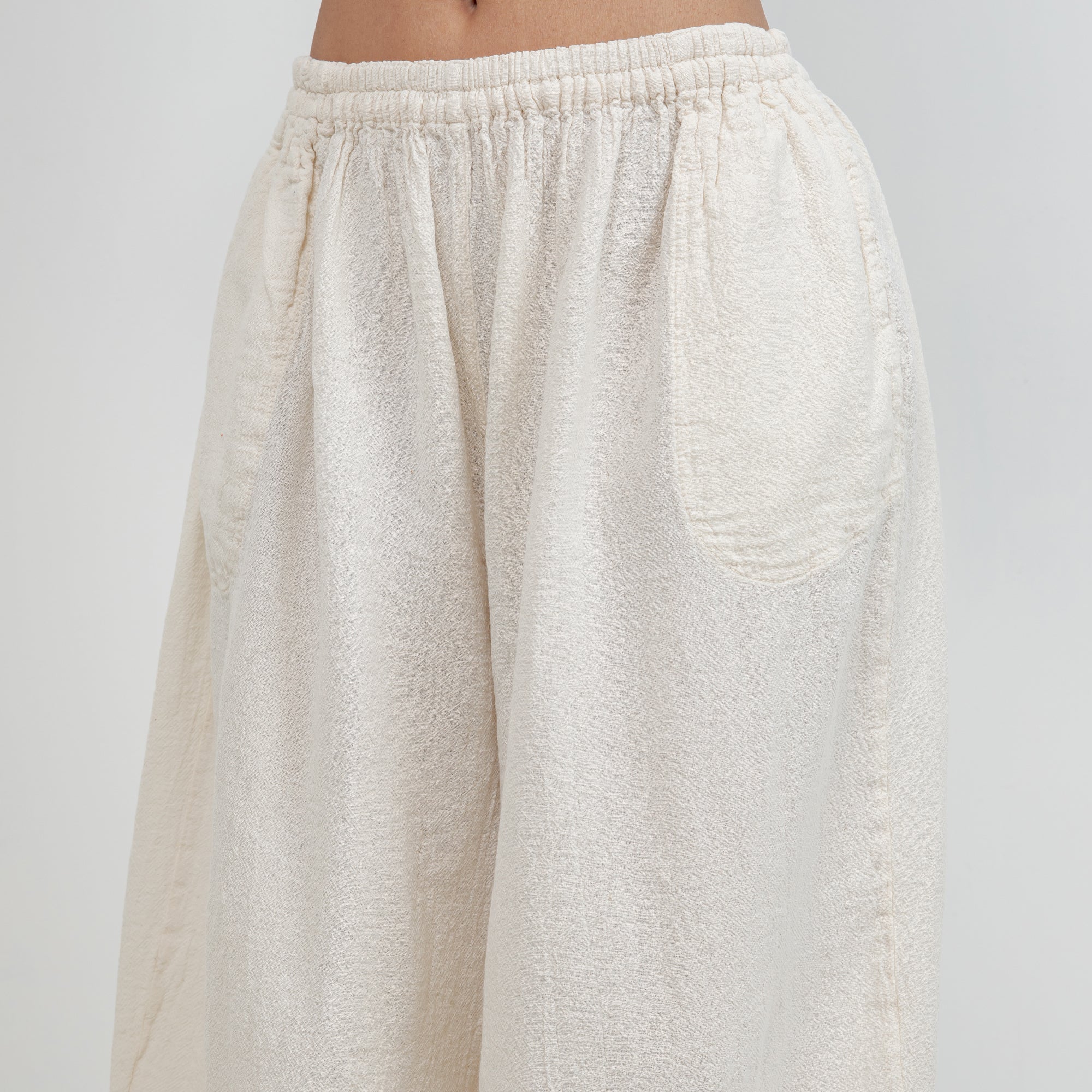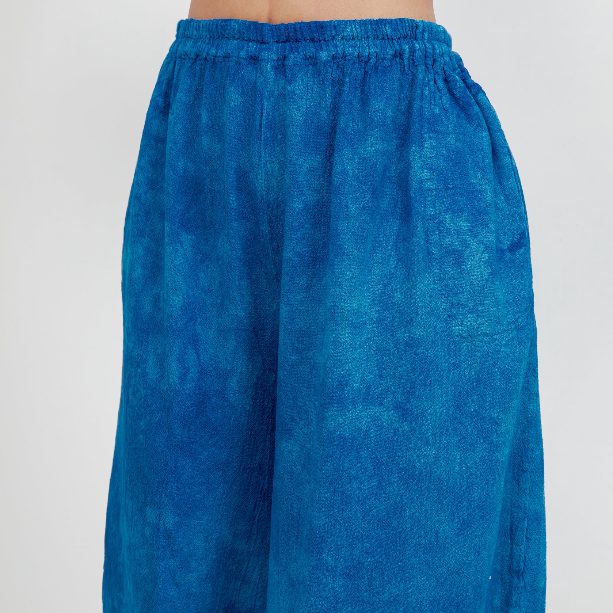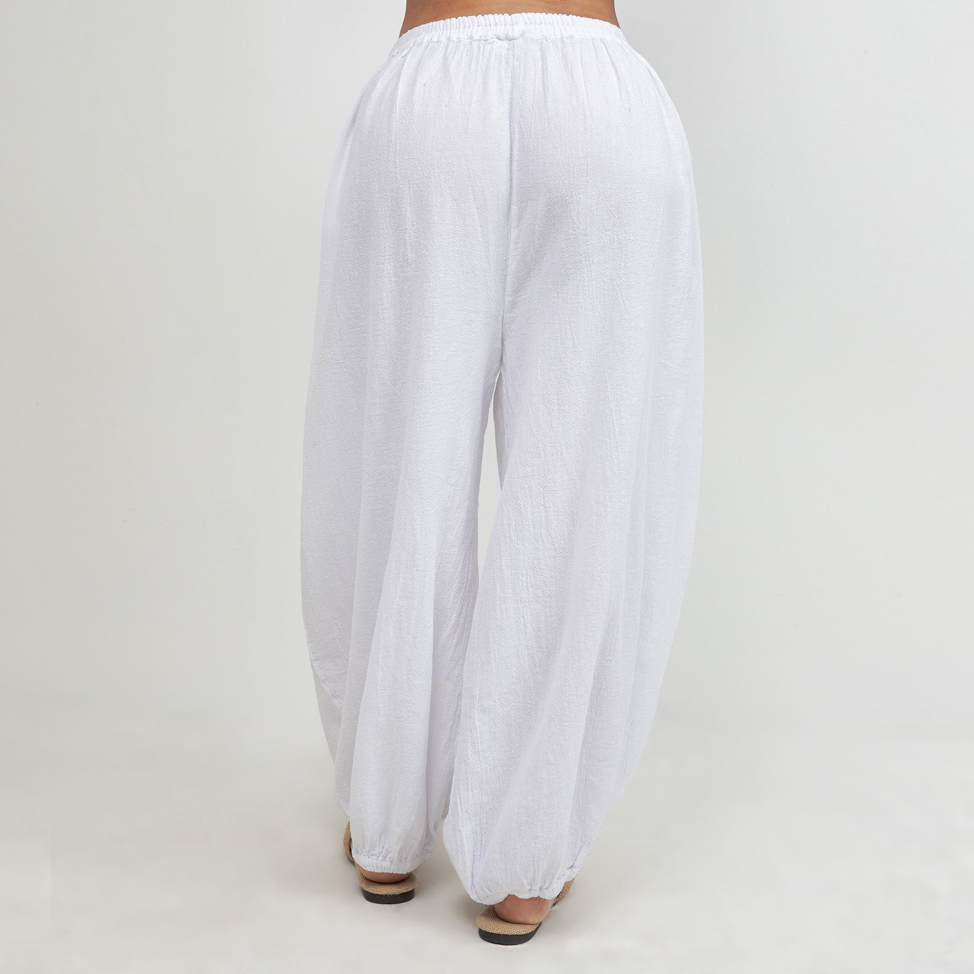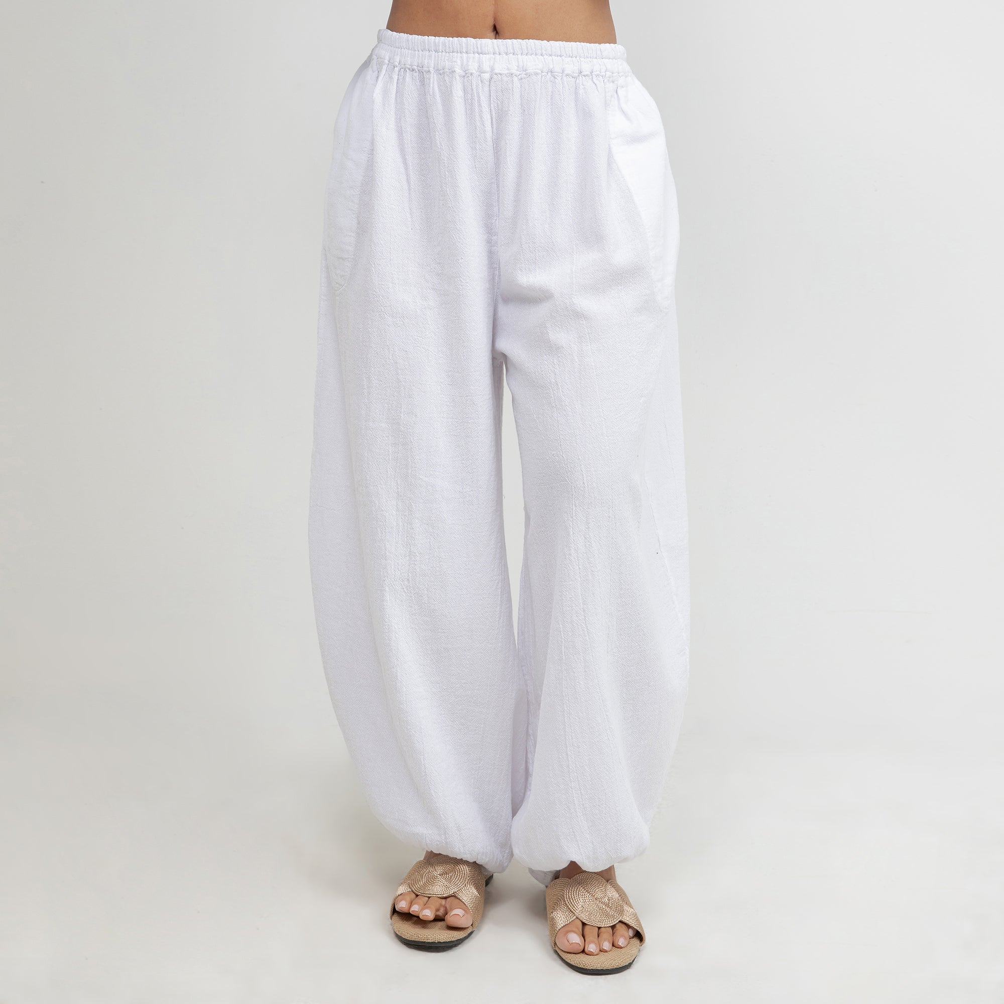 Maybrie is a one size fits most pant with an elastic waist and a fun elastic detail at the bottom giving it a harem pant feel.