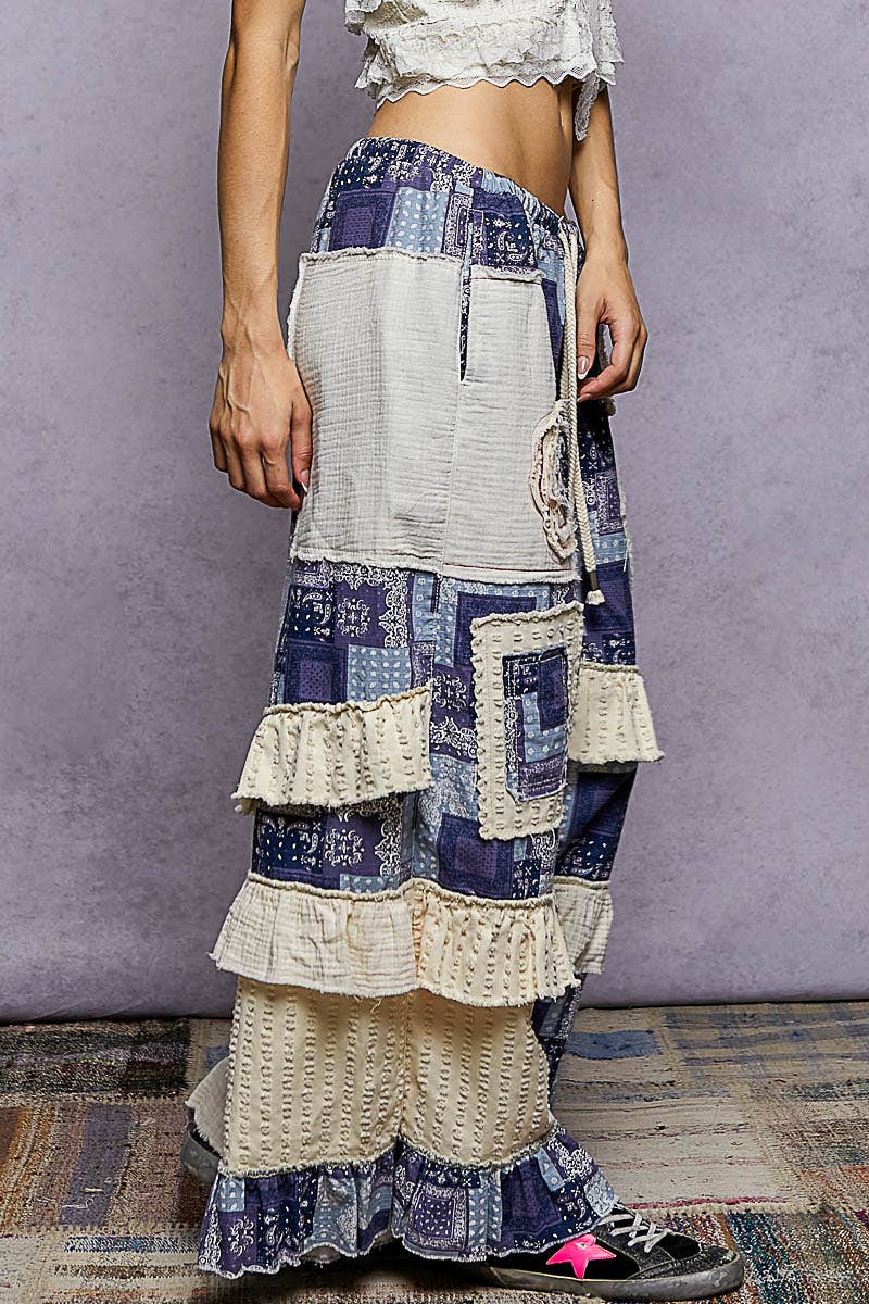 Step up your style with these statement-making pants, designed in a relaxed fit for effortless comfort. The wide-leg silhouette brings modern ease, while the printed woven fabric adds a bold, eye-catching touch. Thoughtfully detailed with textured twill contrast and a soft ruffle accent, these pants strike the perfect balance between playful and polished. Ideal for dressing up or down, they’re a standout addition to any outfit.