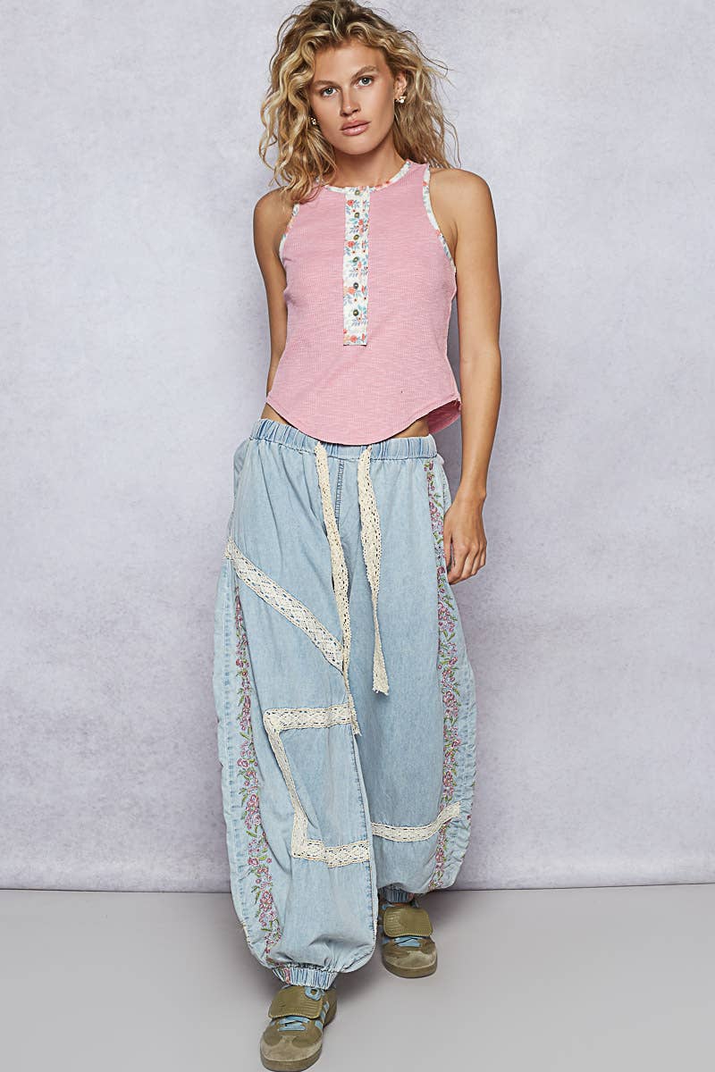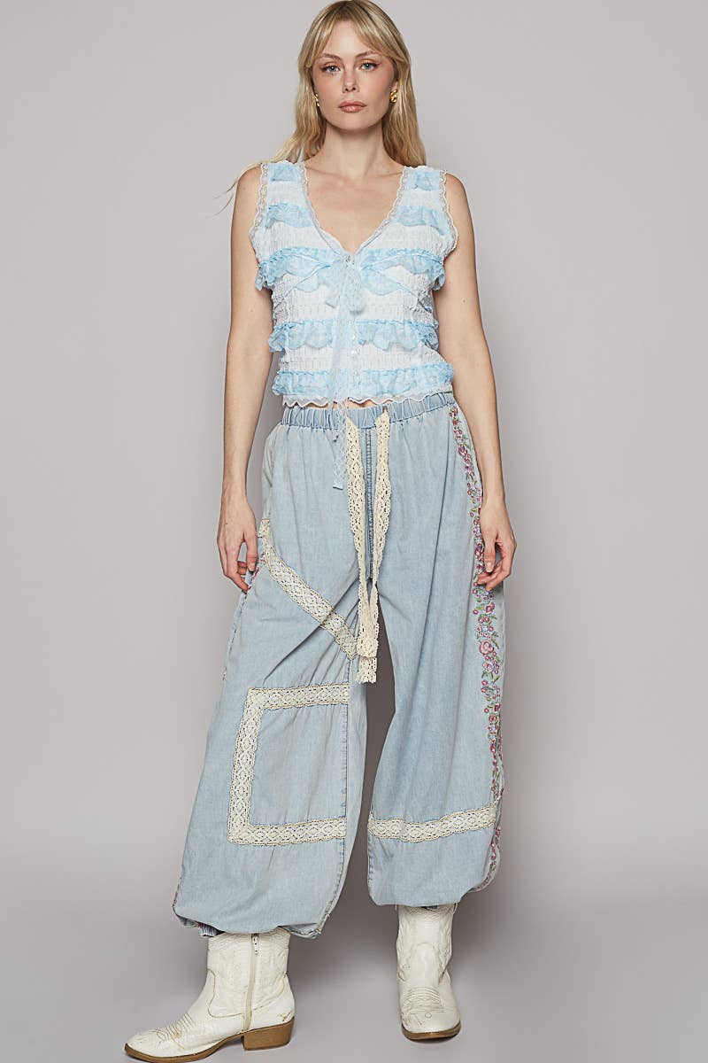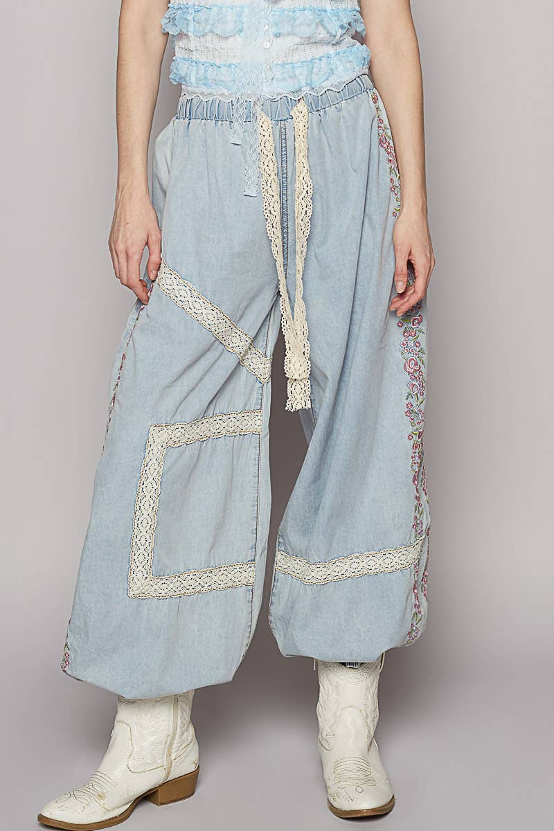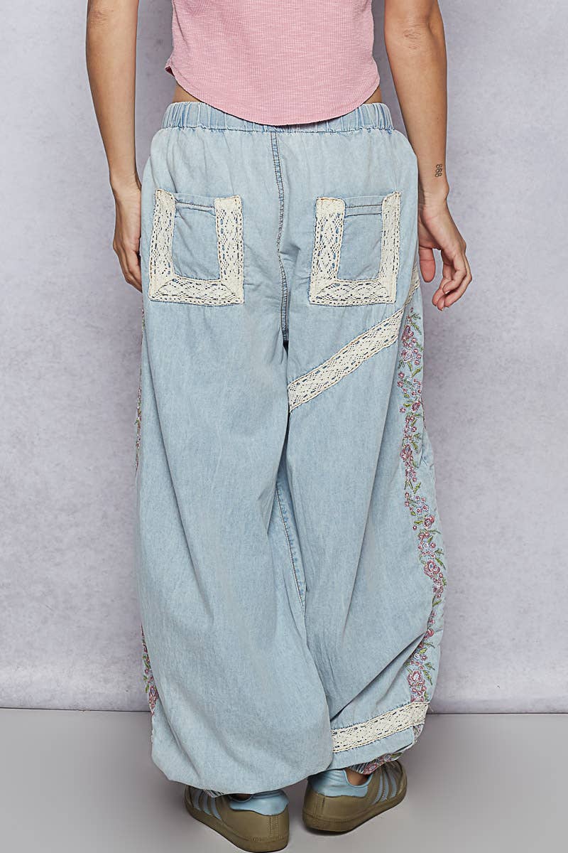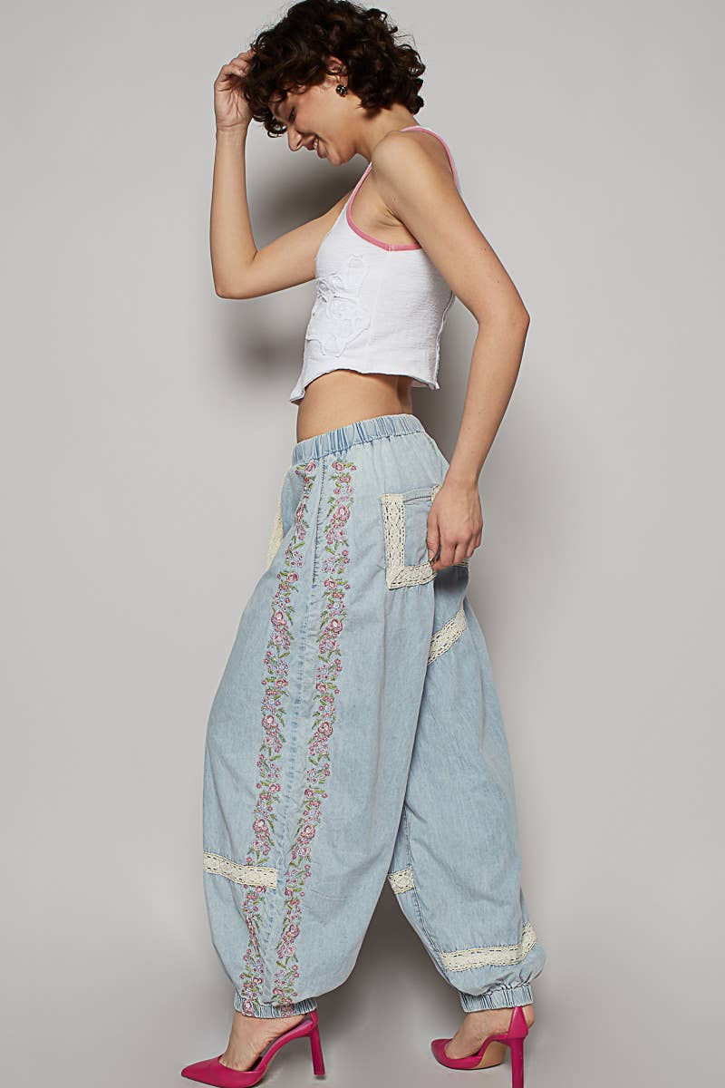 Vintage Washed Embroidery Trim Pant UWP80