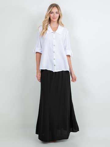 The Alice Skirt features a side triangular detail that adds fun and texture, enhancing its flowy 100% cotton gauze design and comfort. It would look great paired Cora or Nancy Top.