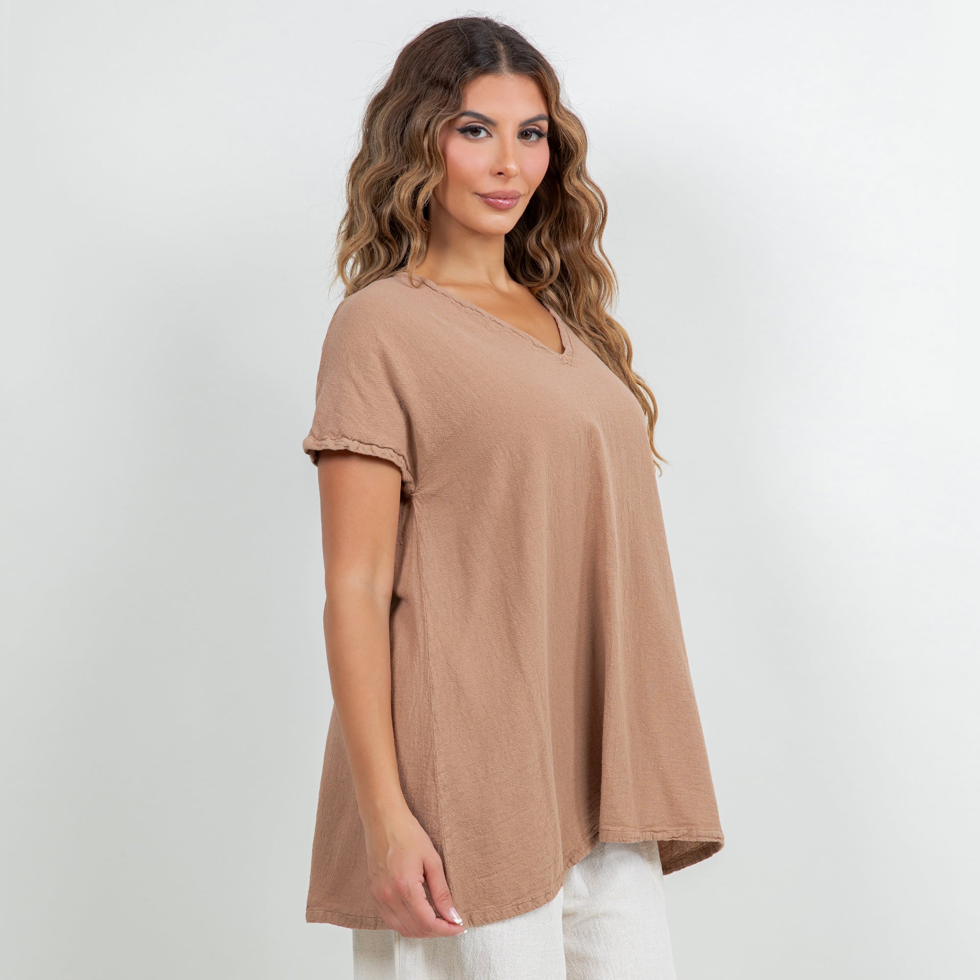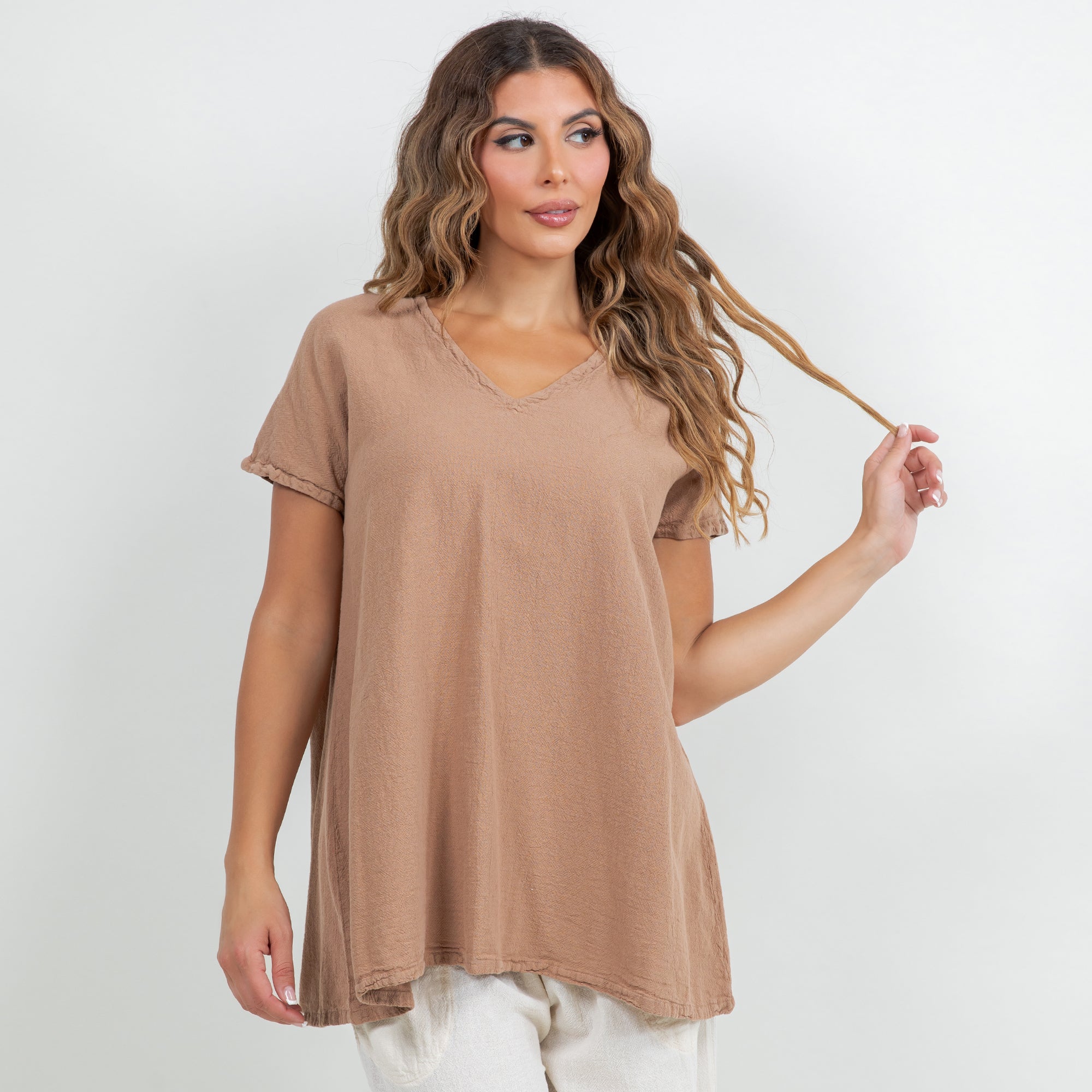 Simple elegance. Seamless throughout the body of this garment, with drop cap sleeves and a great a-line comfort fit.