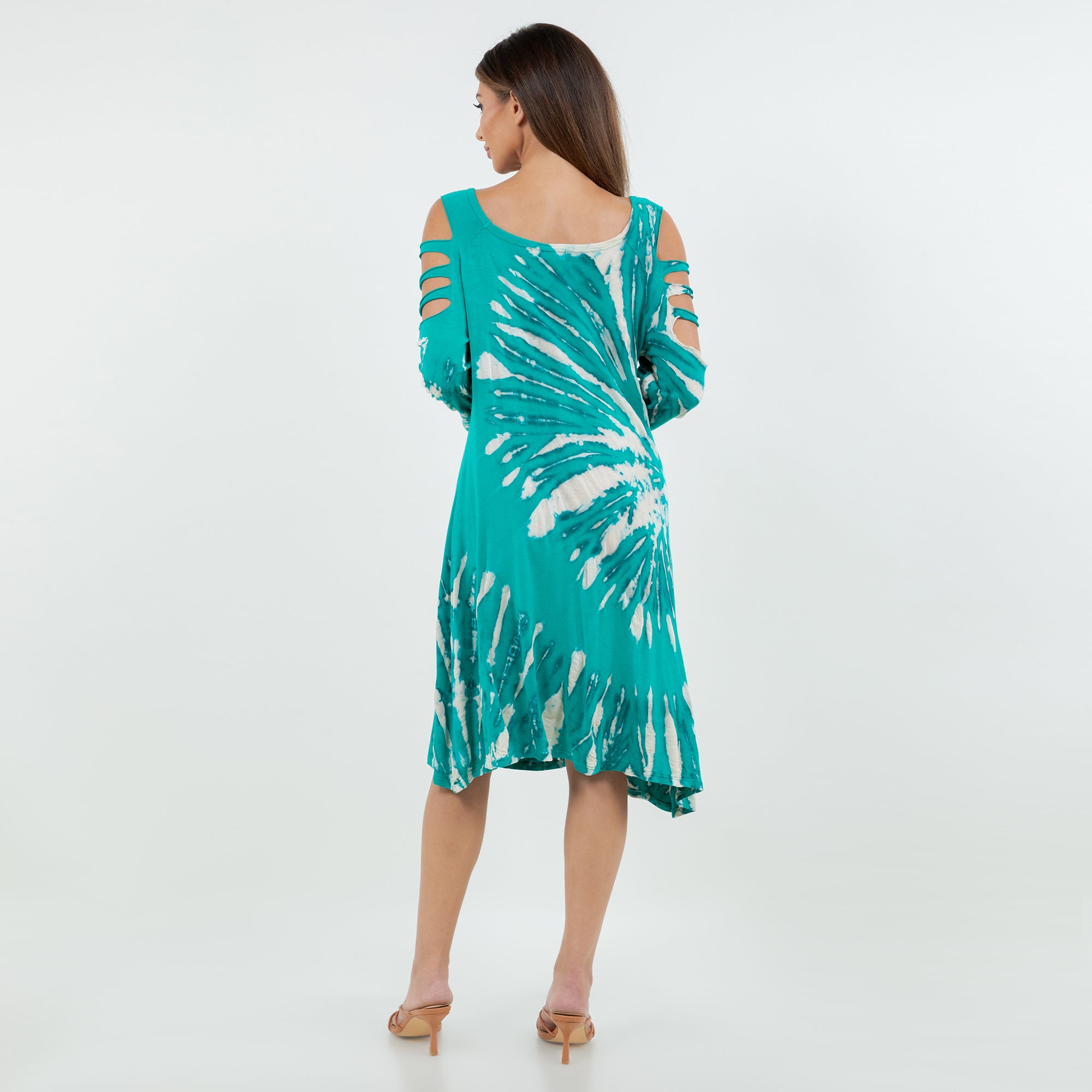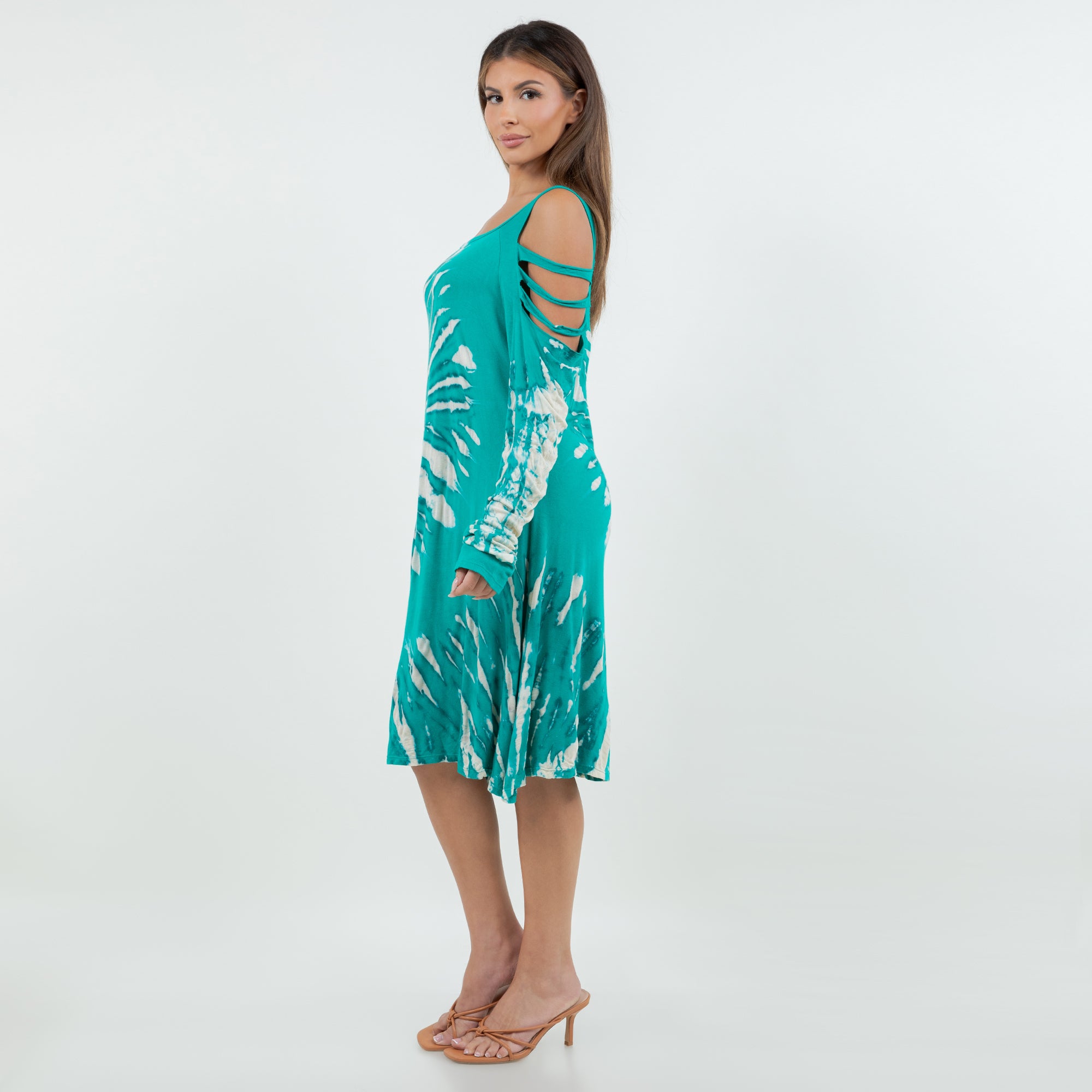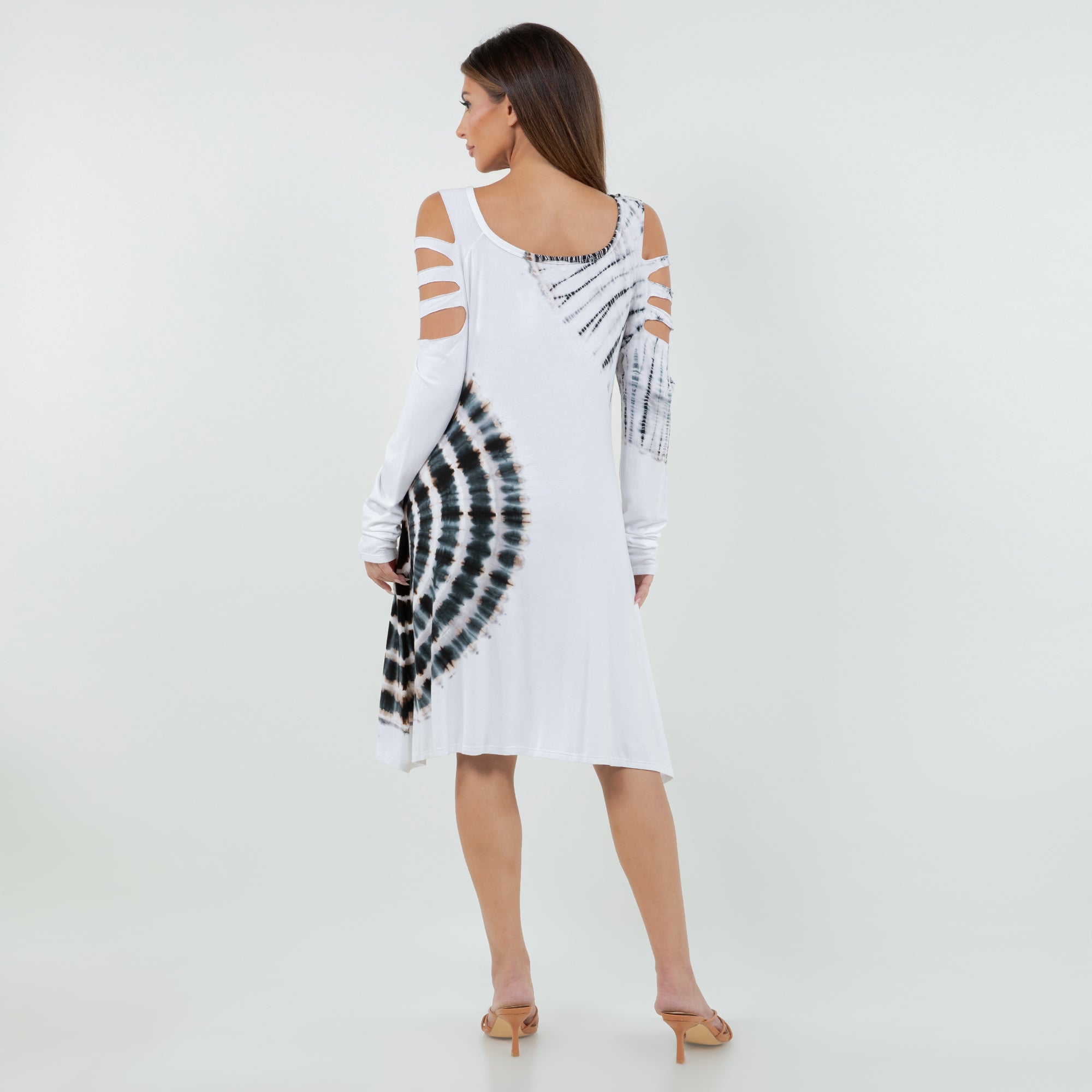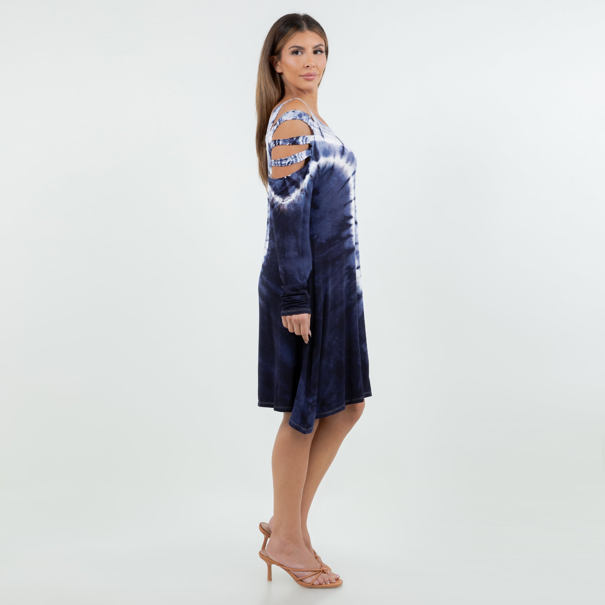 Soft Split Shoulder Starcrest Print Dress