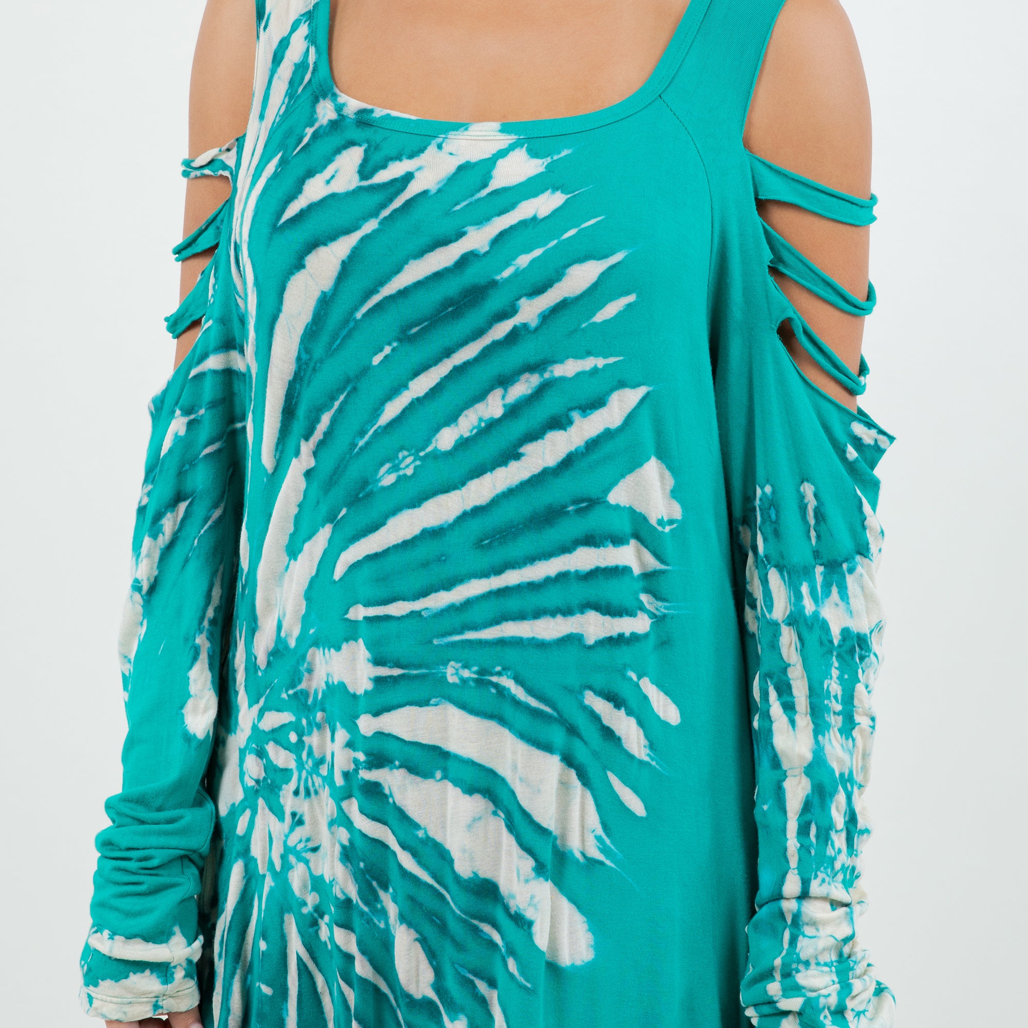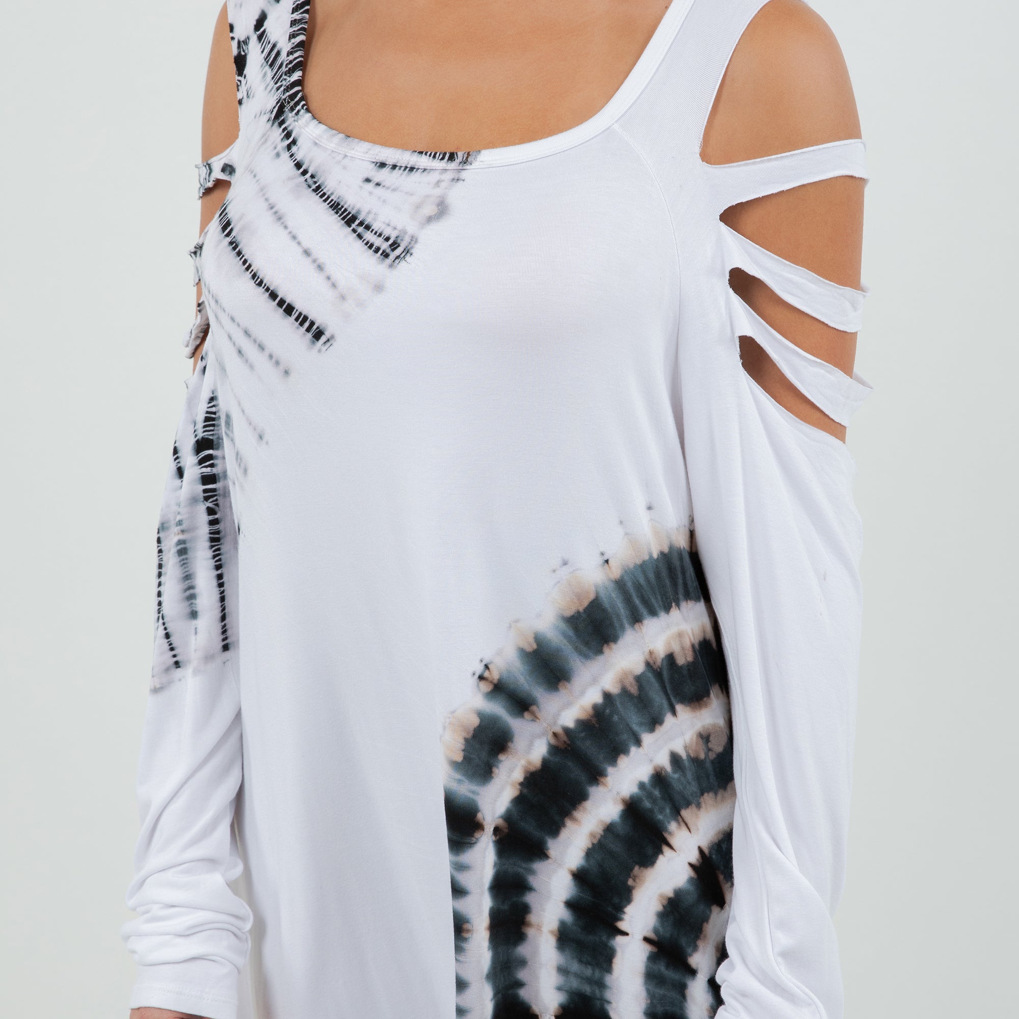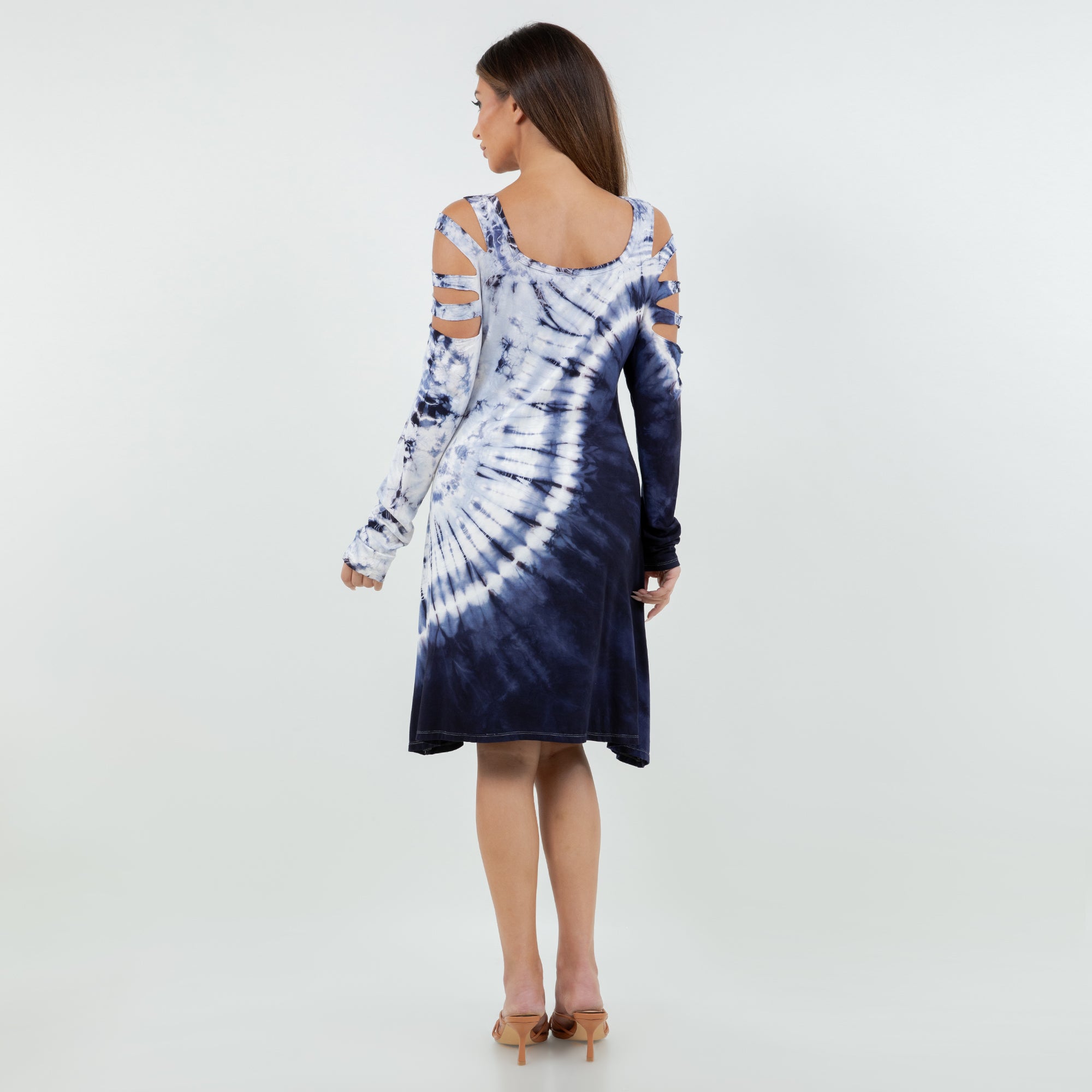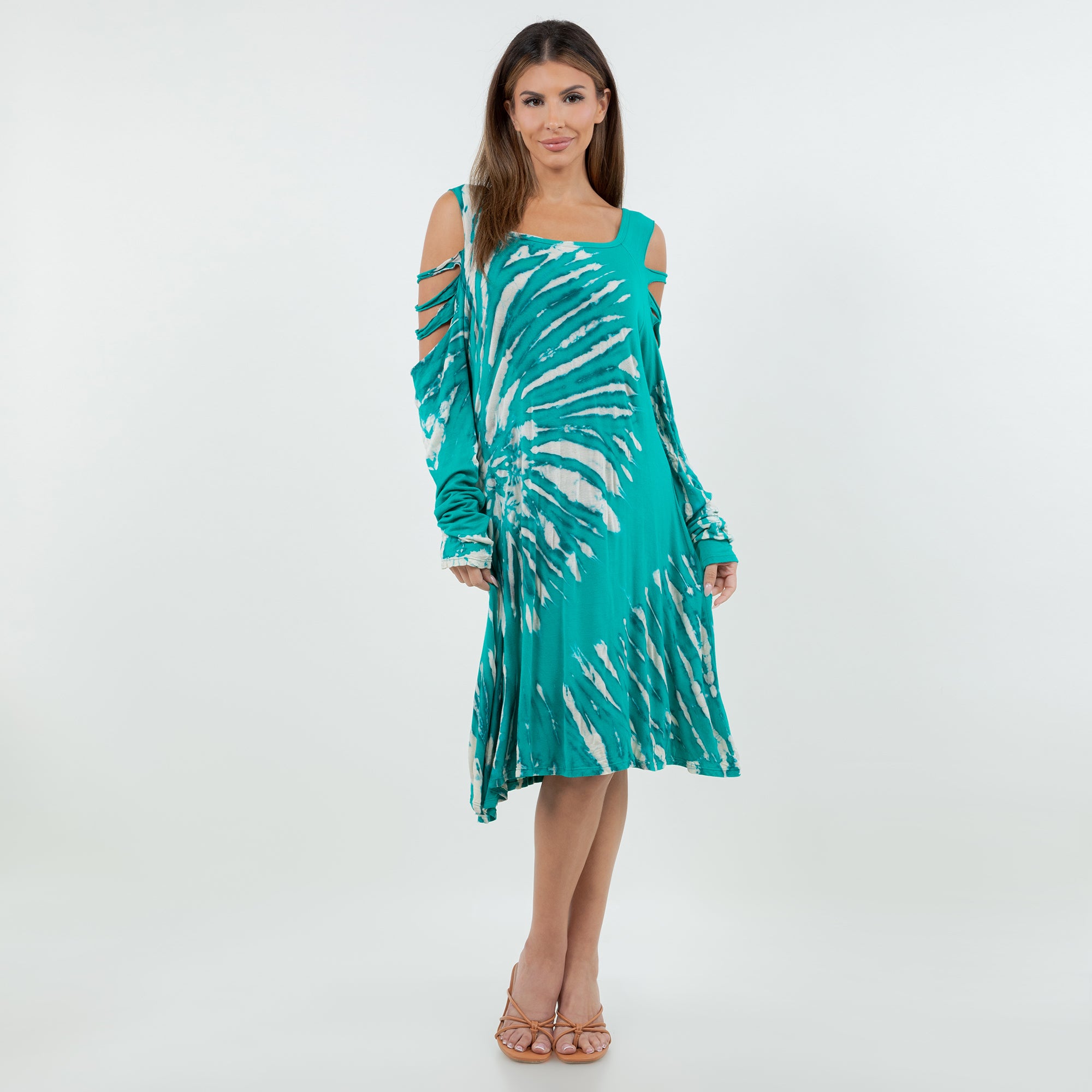 Soft Split Shoulder Starcrest Print Dress