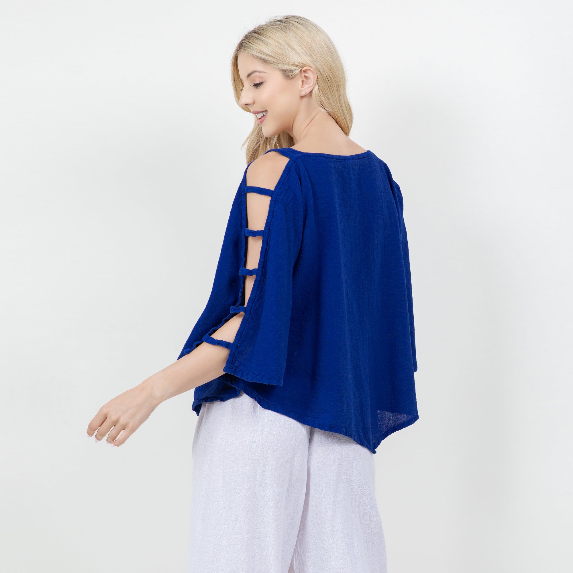Viki Sale Detailed Cut-Out 3/4 Sleeve Top Sale