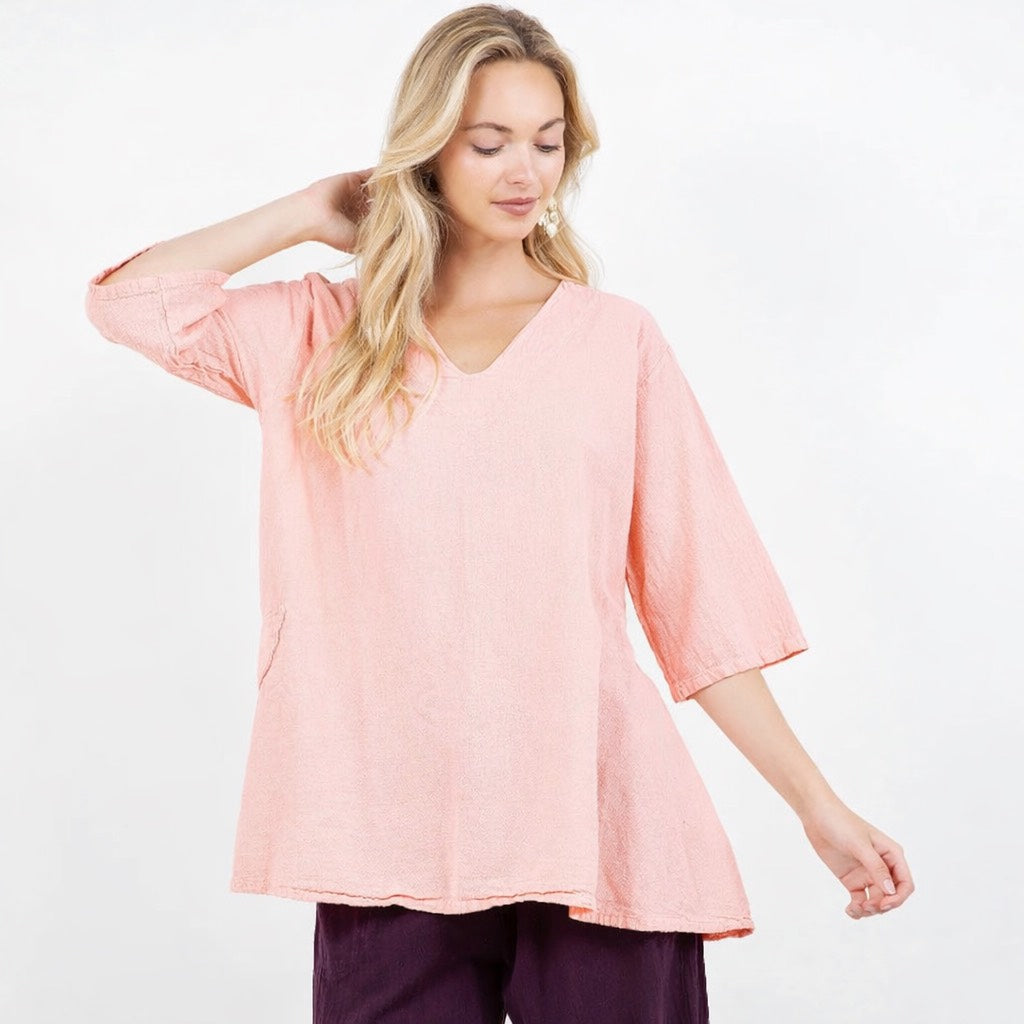 Christine is a one size top with a lovely v-neck, flowy 3/4 sleeve and a fun pocket detail in the front.