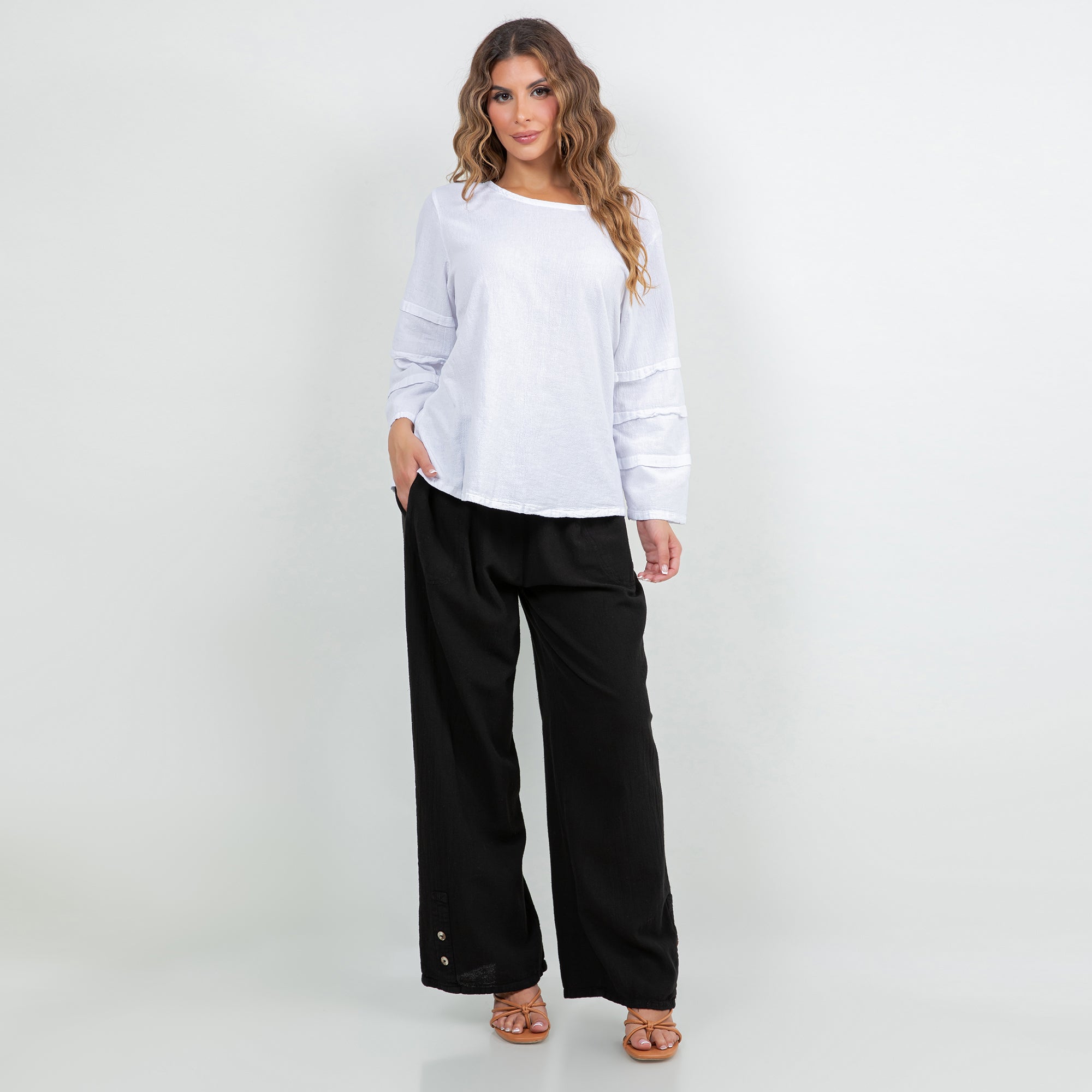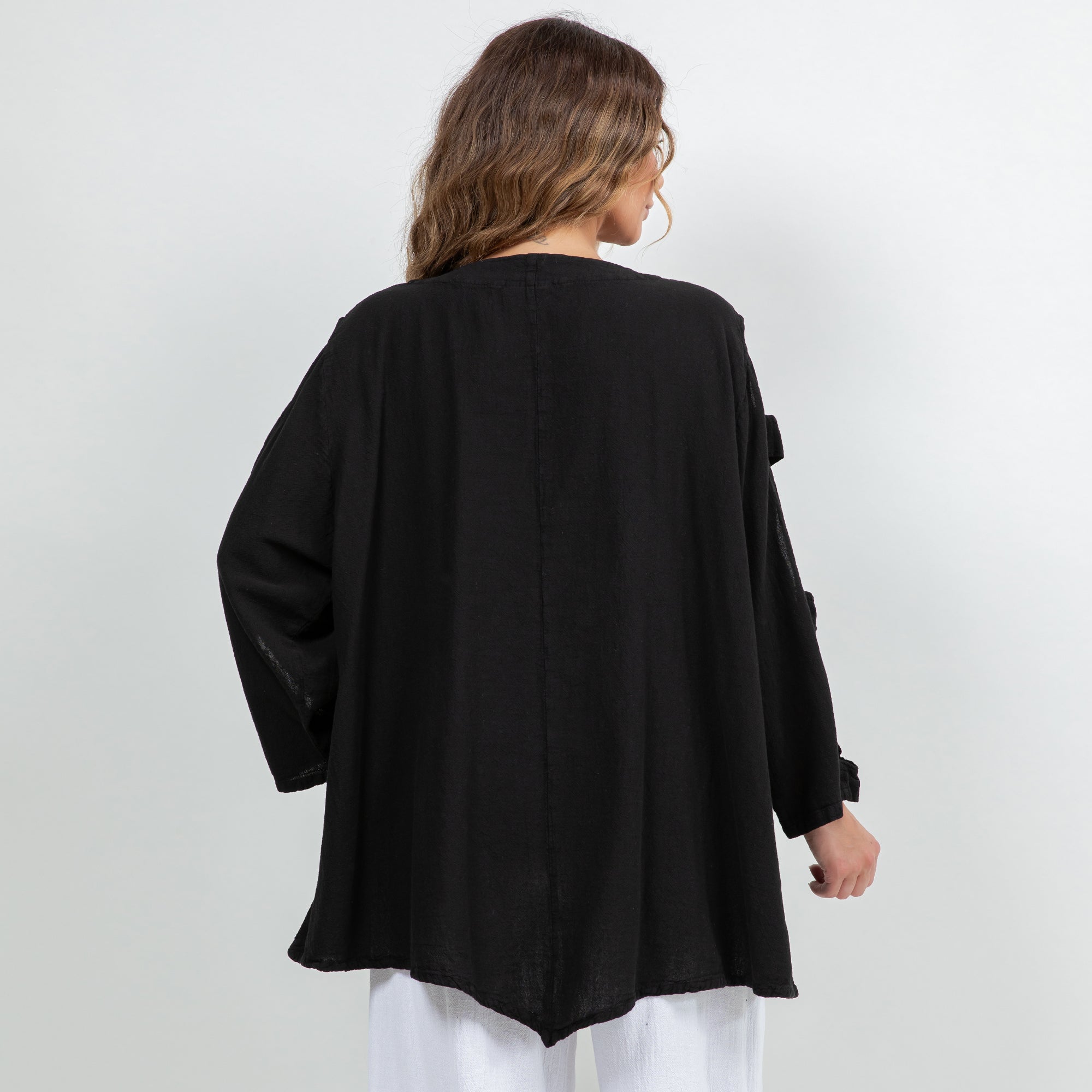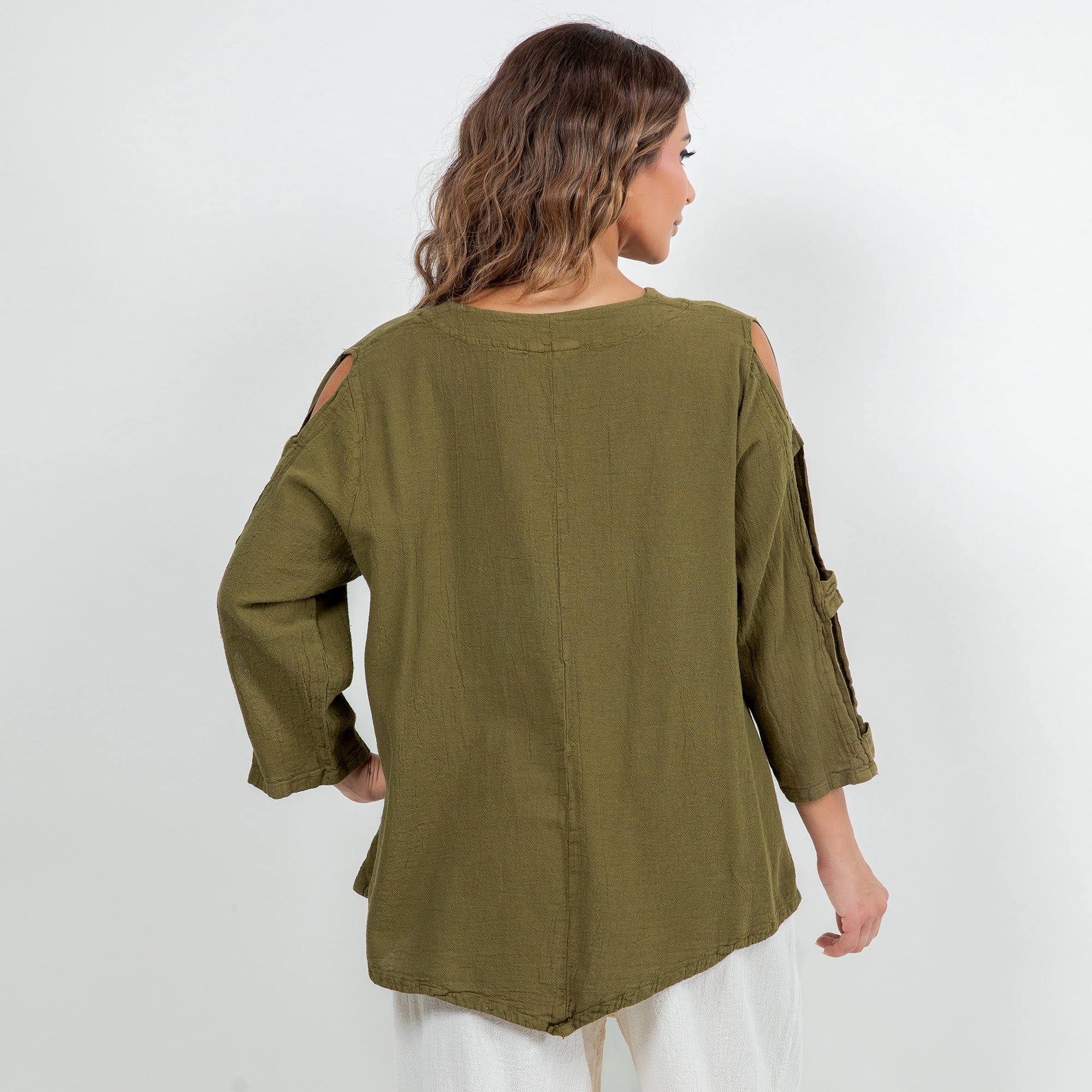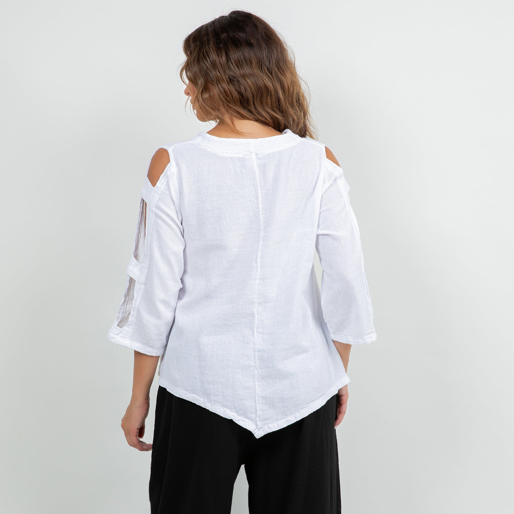 Melanie is a fabulous v point top, with a fun singular pocket, and lattice style sleeves.