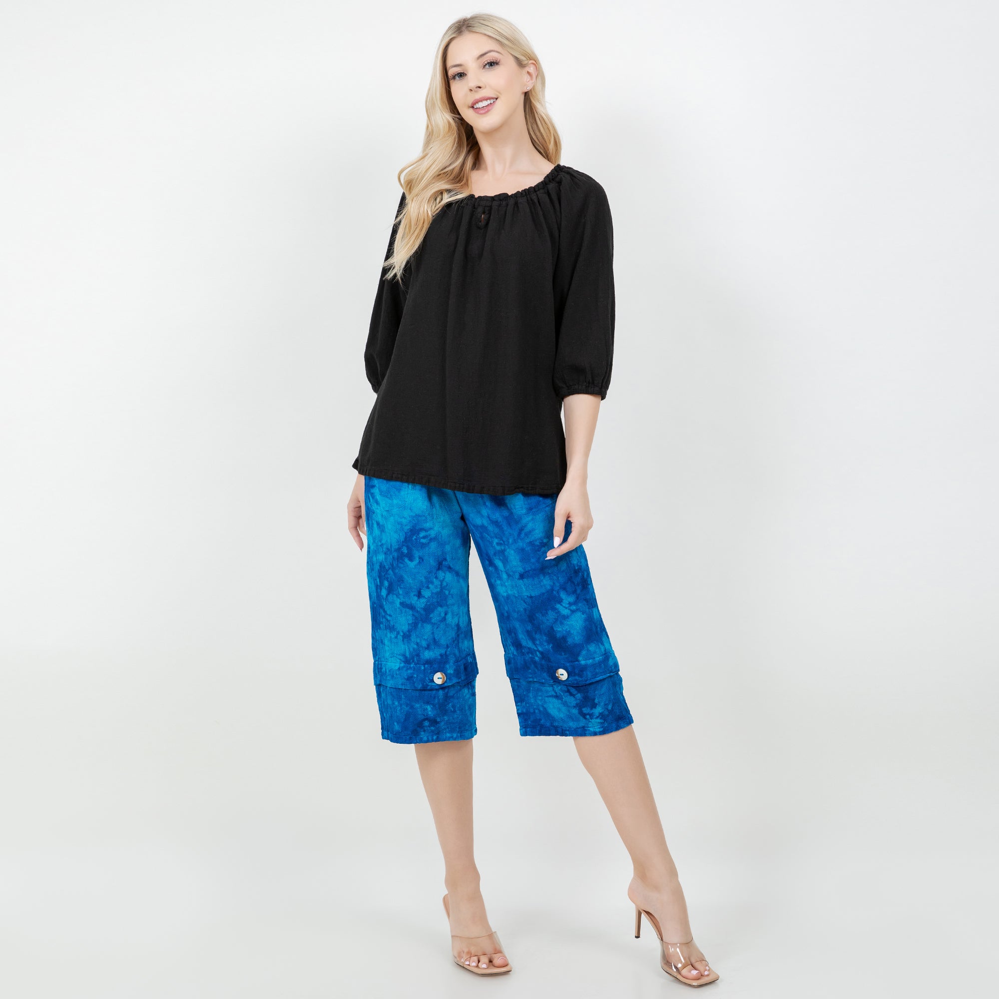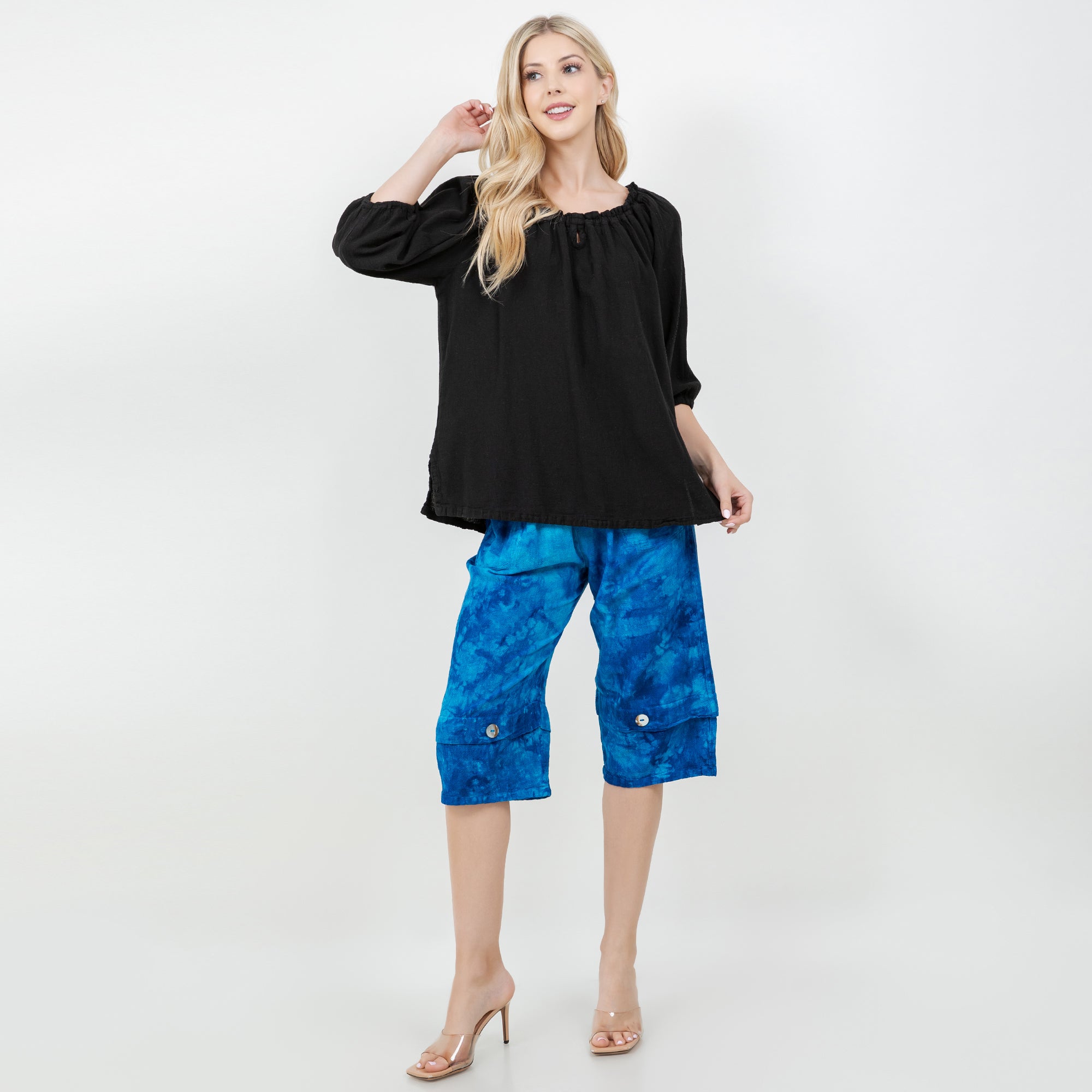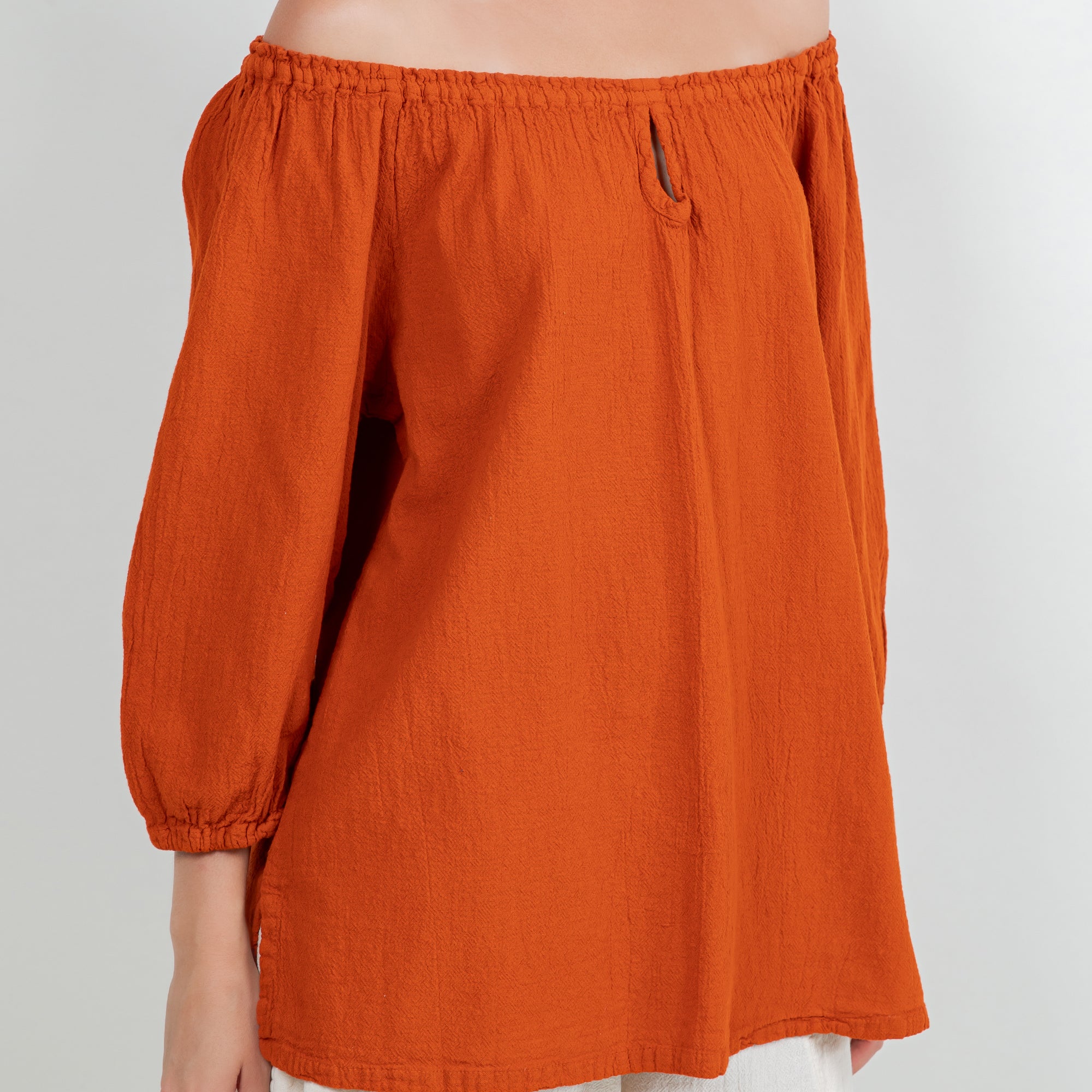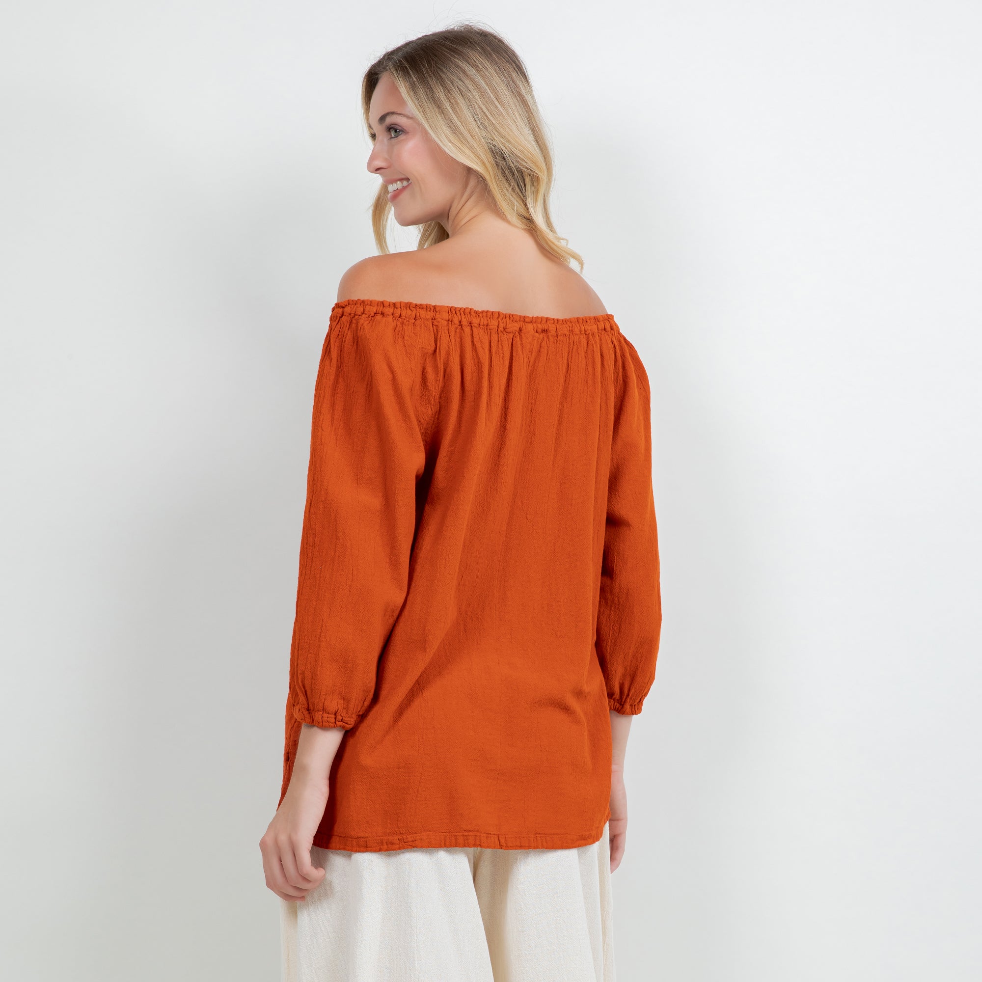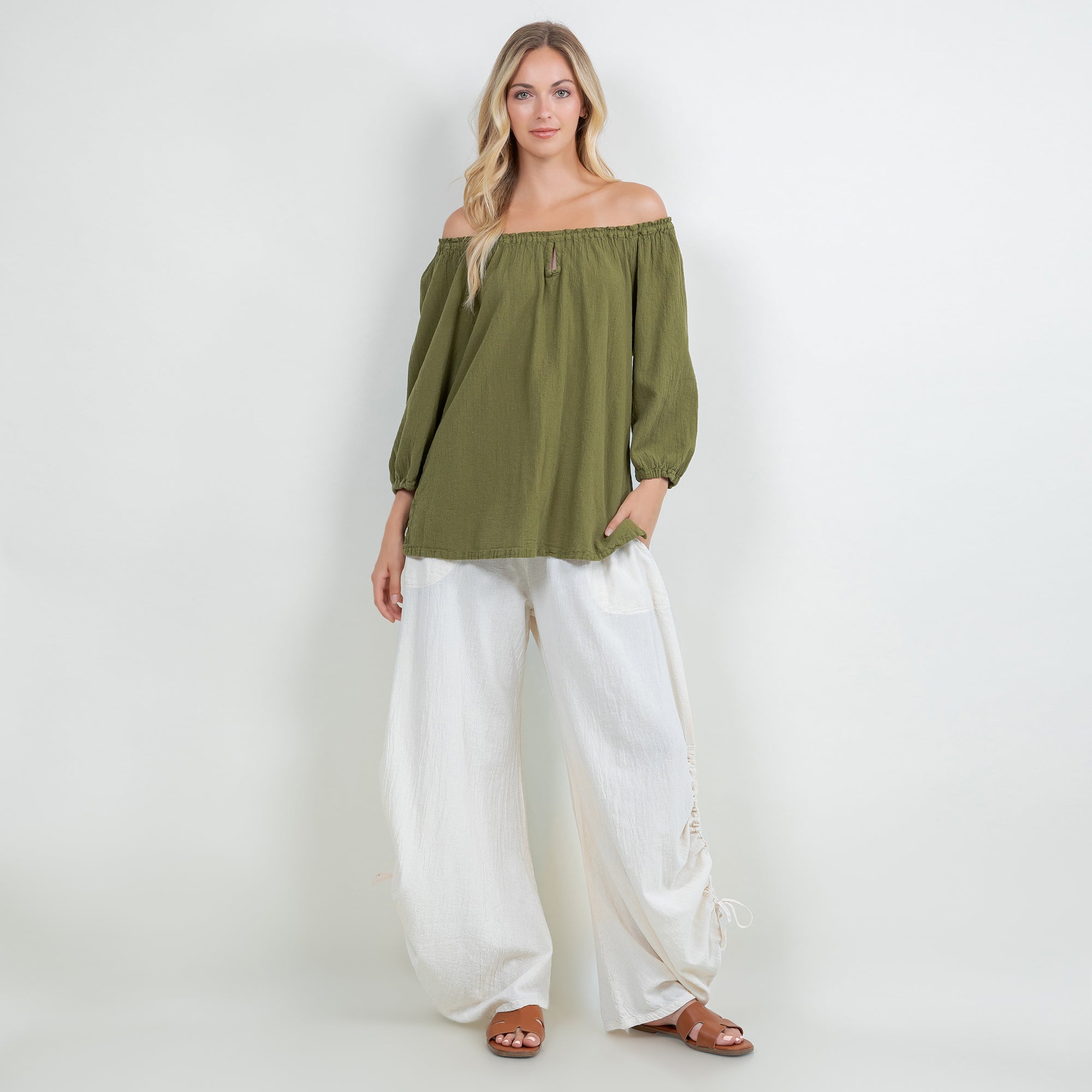 The Presley Top flatters everyone! A beautiful off the shoulder top. With 3/4 adjustable length elastic sleeves, and a teardrop cutout at the top!