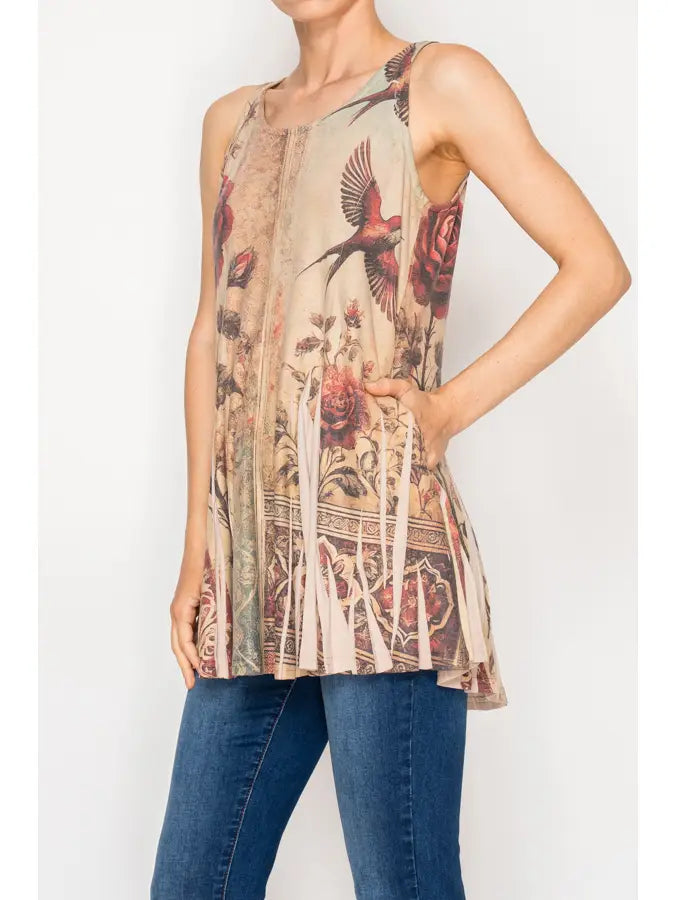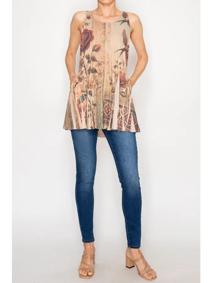 This sleeveless top is not just stylish, but also practical with its added pockets. As part of our women's apparel line, it draws inspiration from lace and crochet. Enjoy this blend of style and functionality, perfect for any occasion.