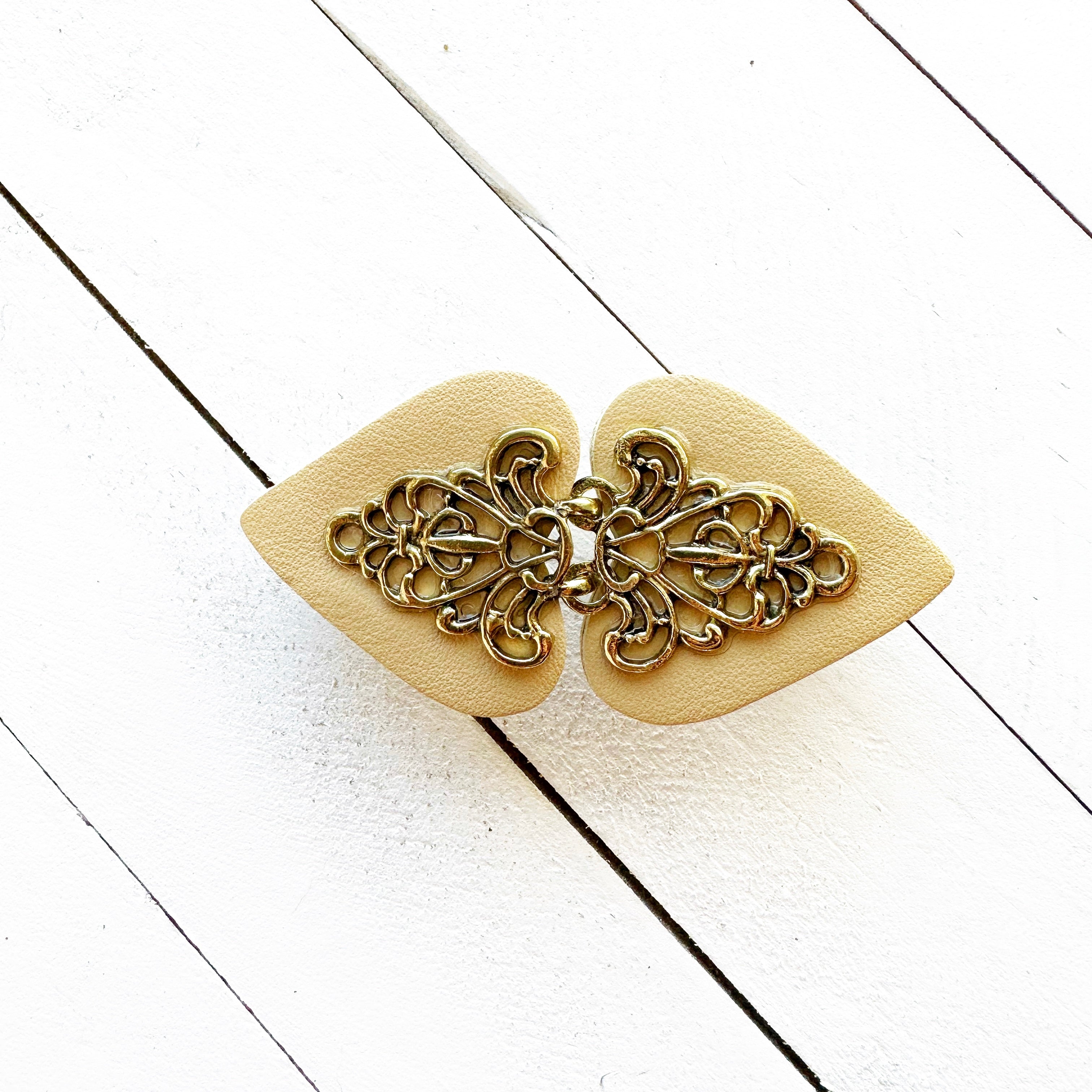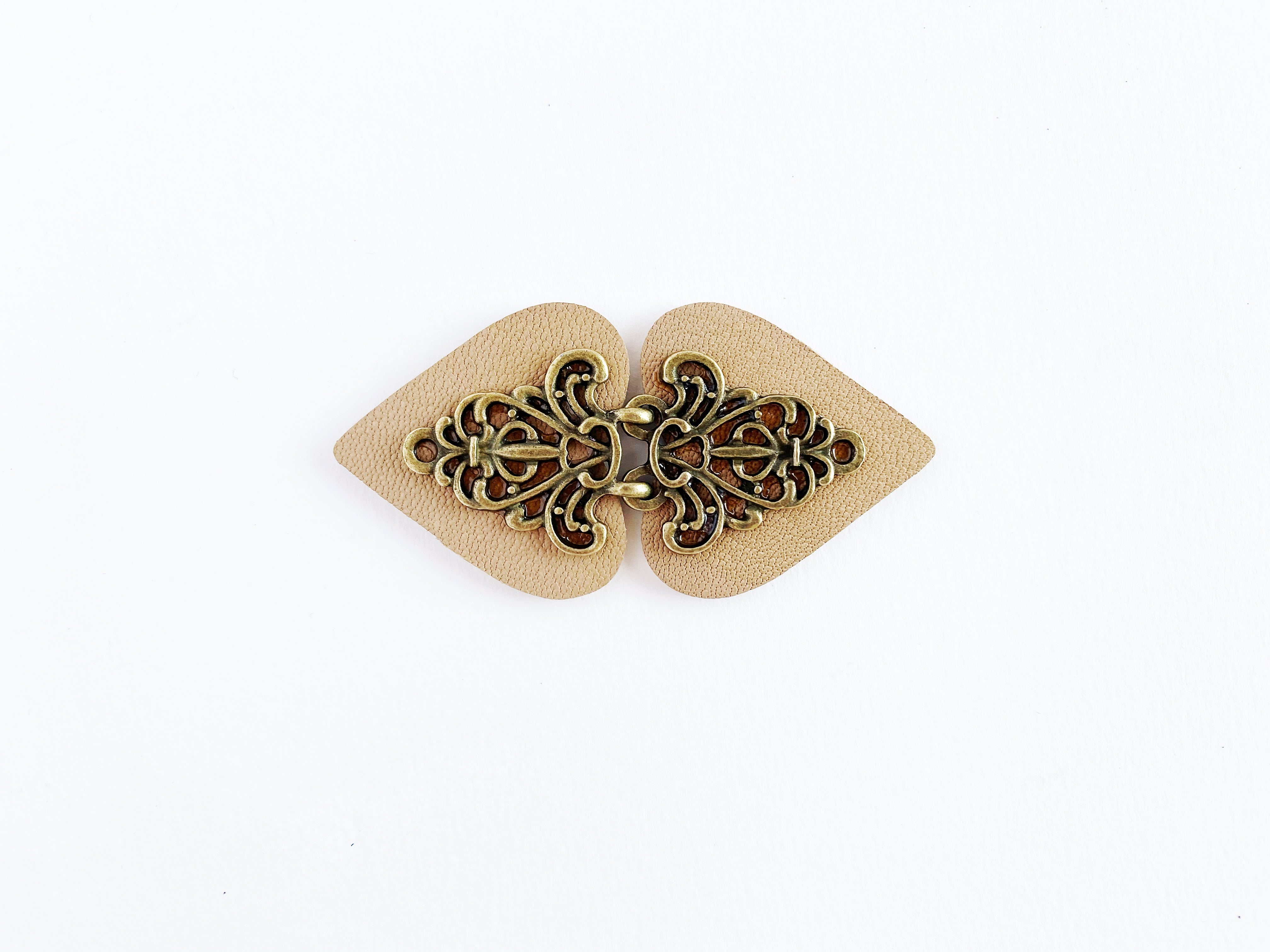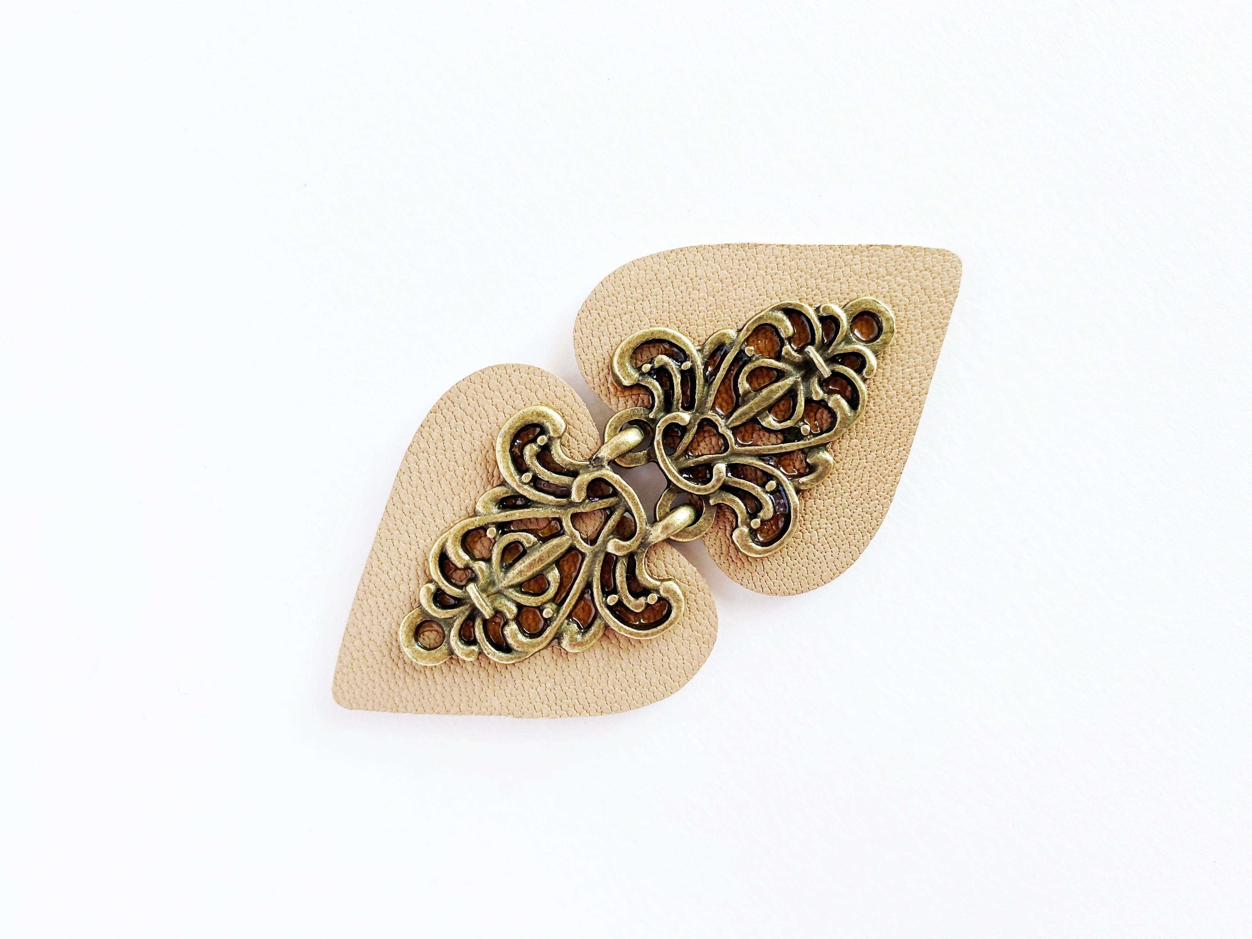 "Andante" is one of our bestsellers, an understated antique bronze metal swirl pattern, on beige, double spade-shaped Ultra Premium leather backing to create a subtle diamond-like appearance.