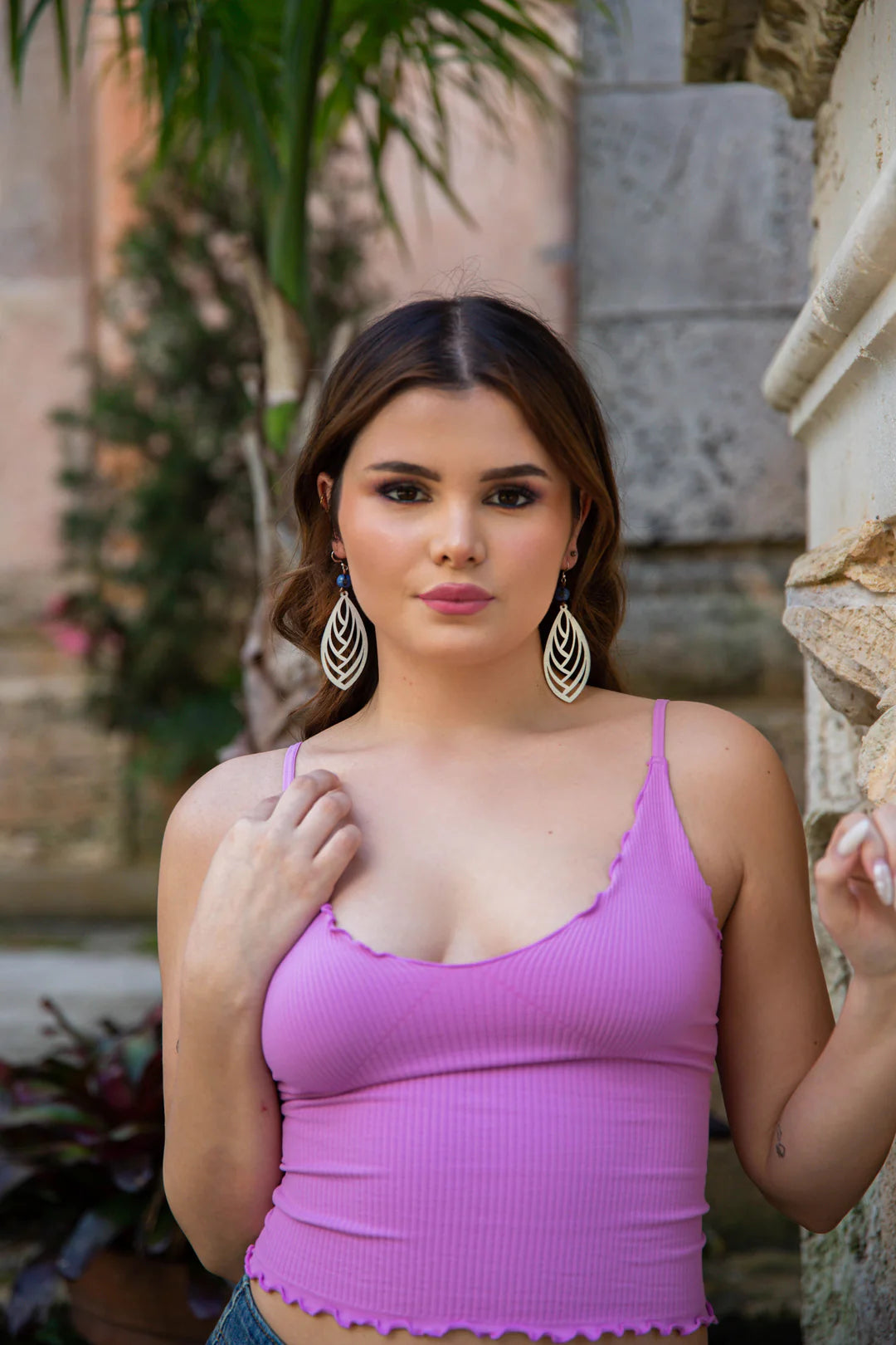 Artisan-made beautiful statement earrings inspired by Ecuador's stunning landscapes. Handmade with recycled wood in a leaf-like design and topped with acai berries.