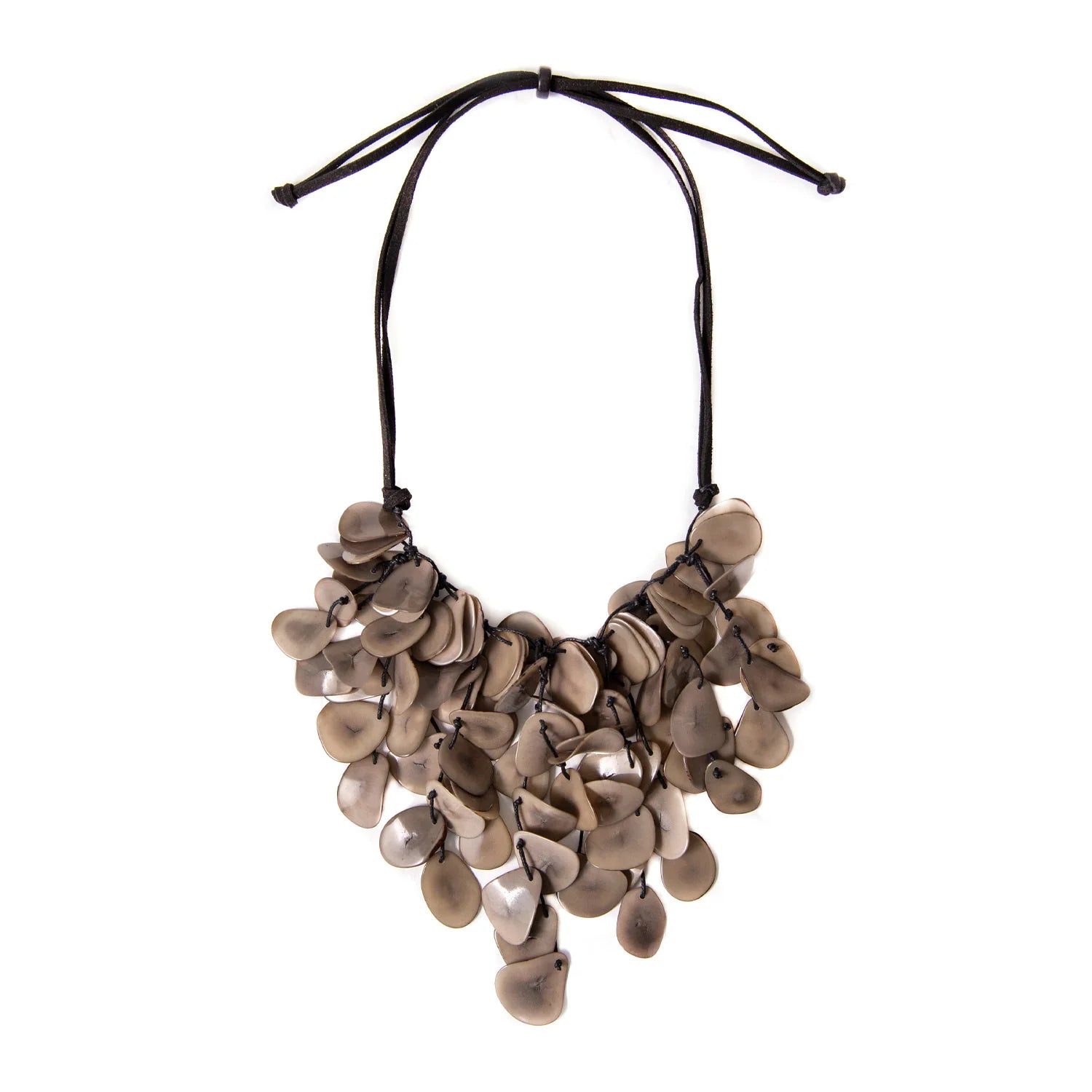 A gorgeous waterfall of tagua slices come together to create this nature-inspired statement necklace in an array of radiant hues.