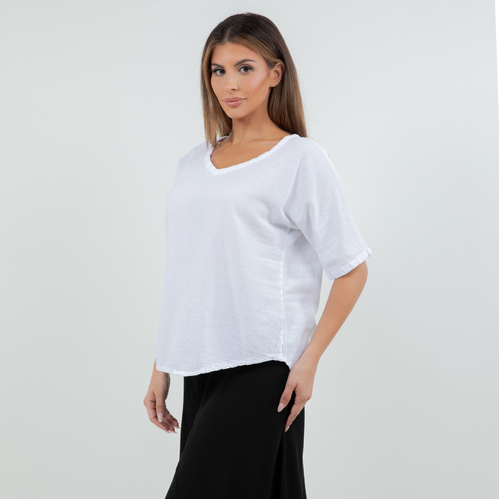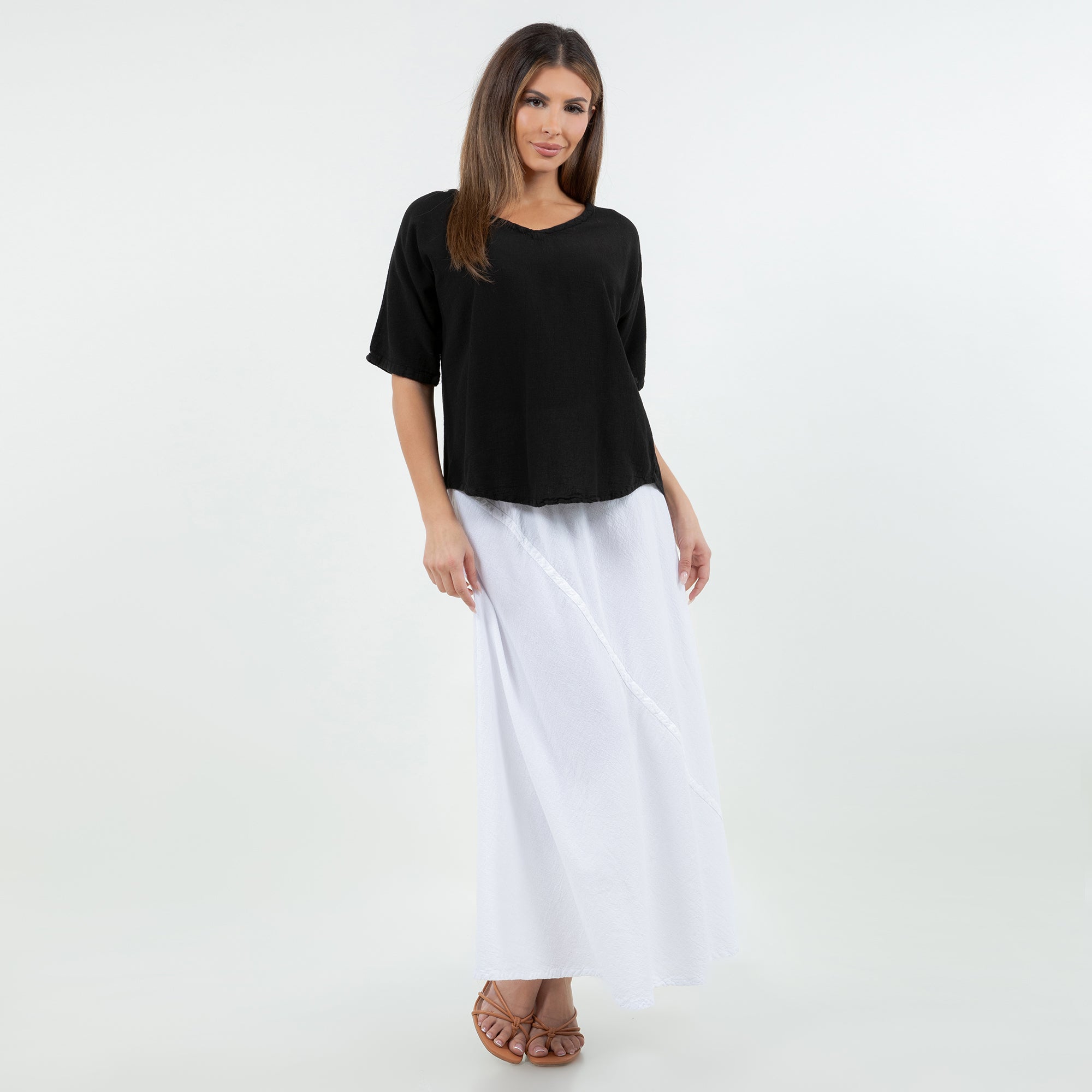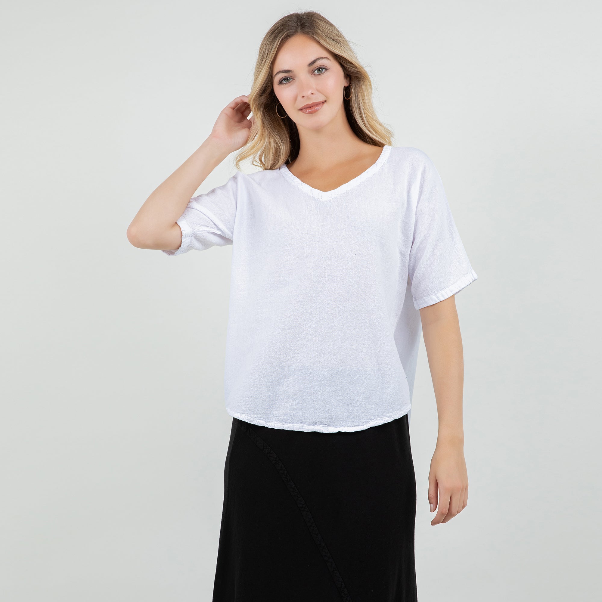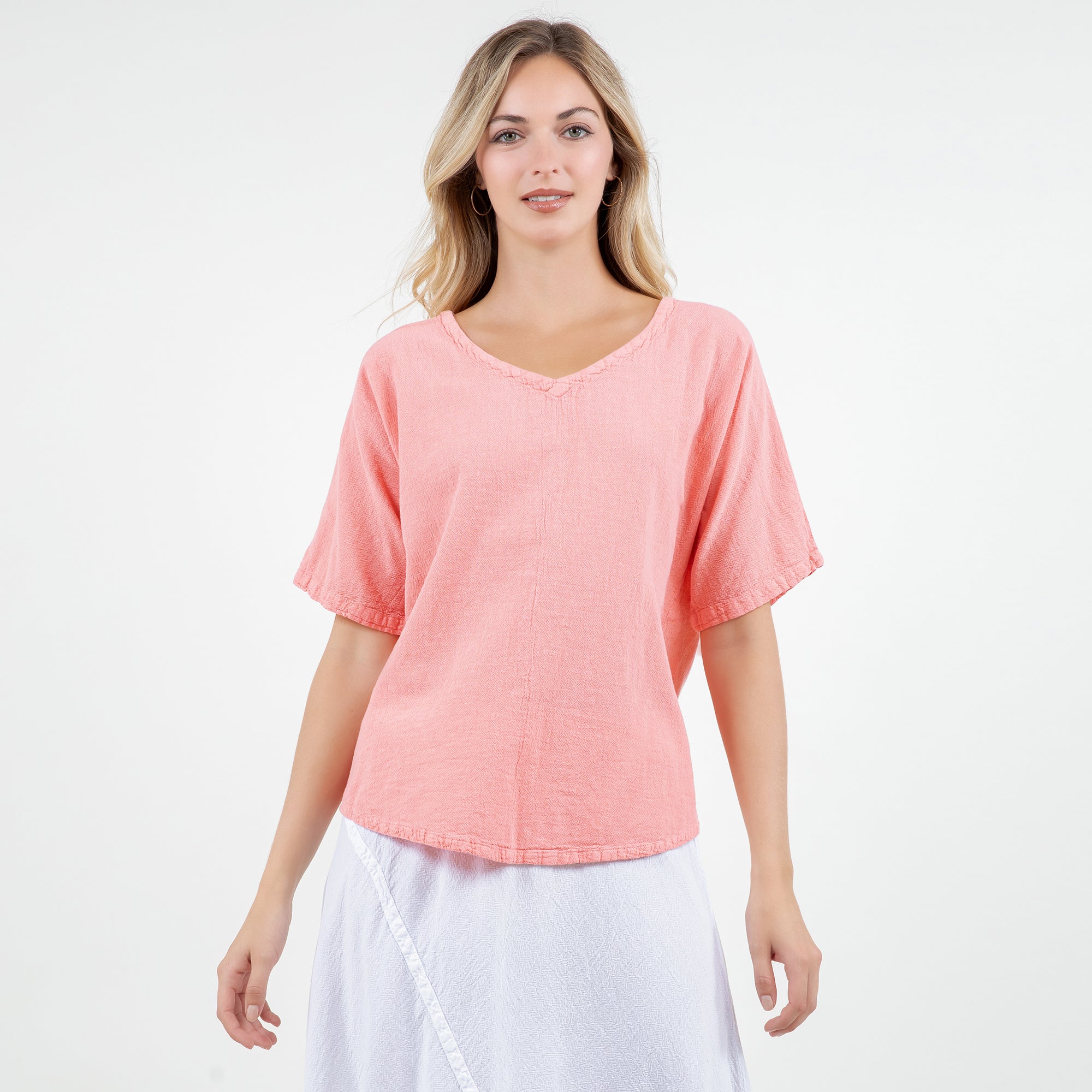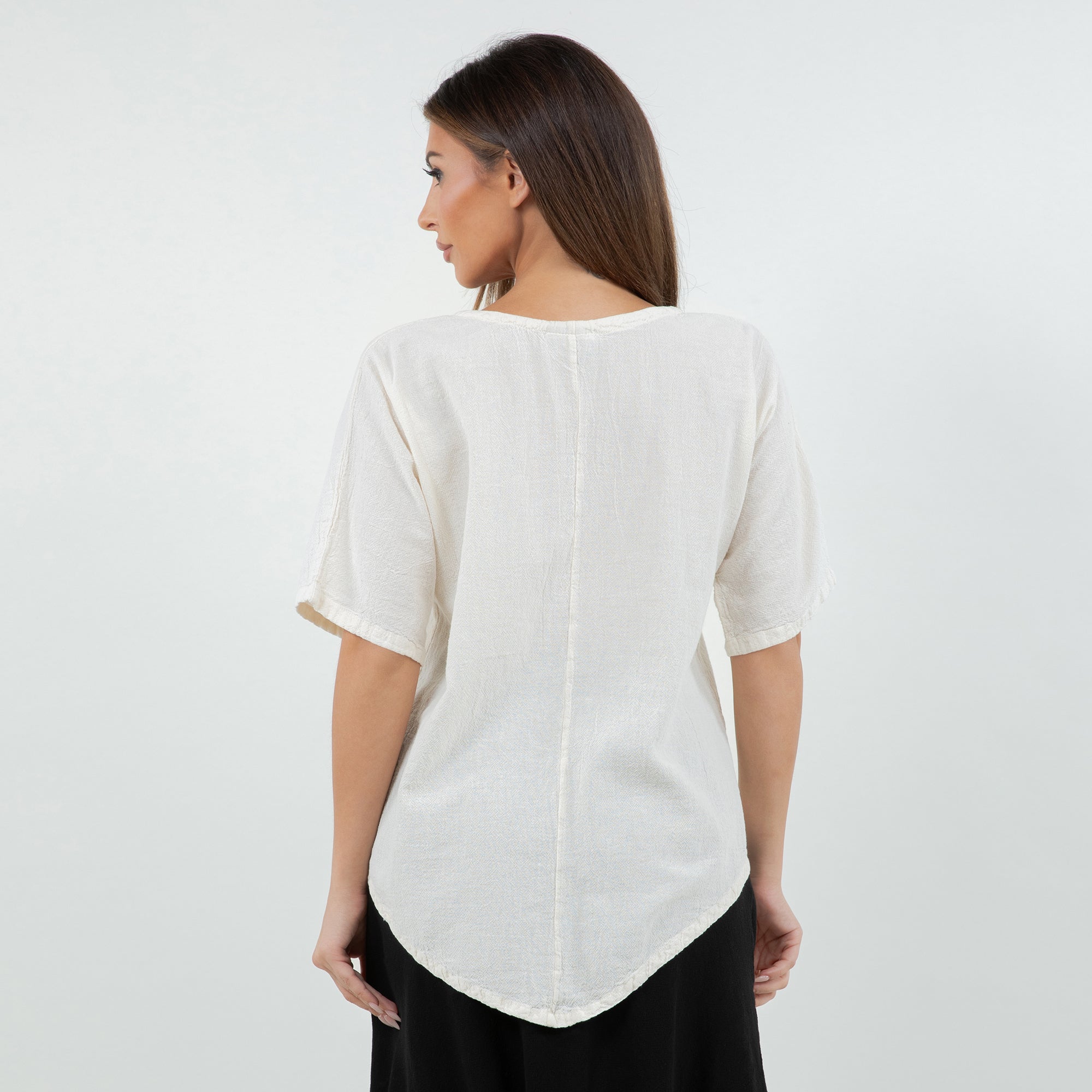 Featuring a mid-length sleeve and scoop bottom with matching neckline, the Mary is a classic style top that shines with any outfit!