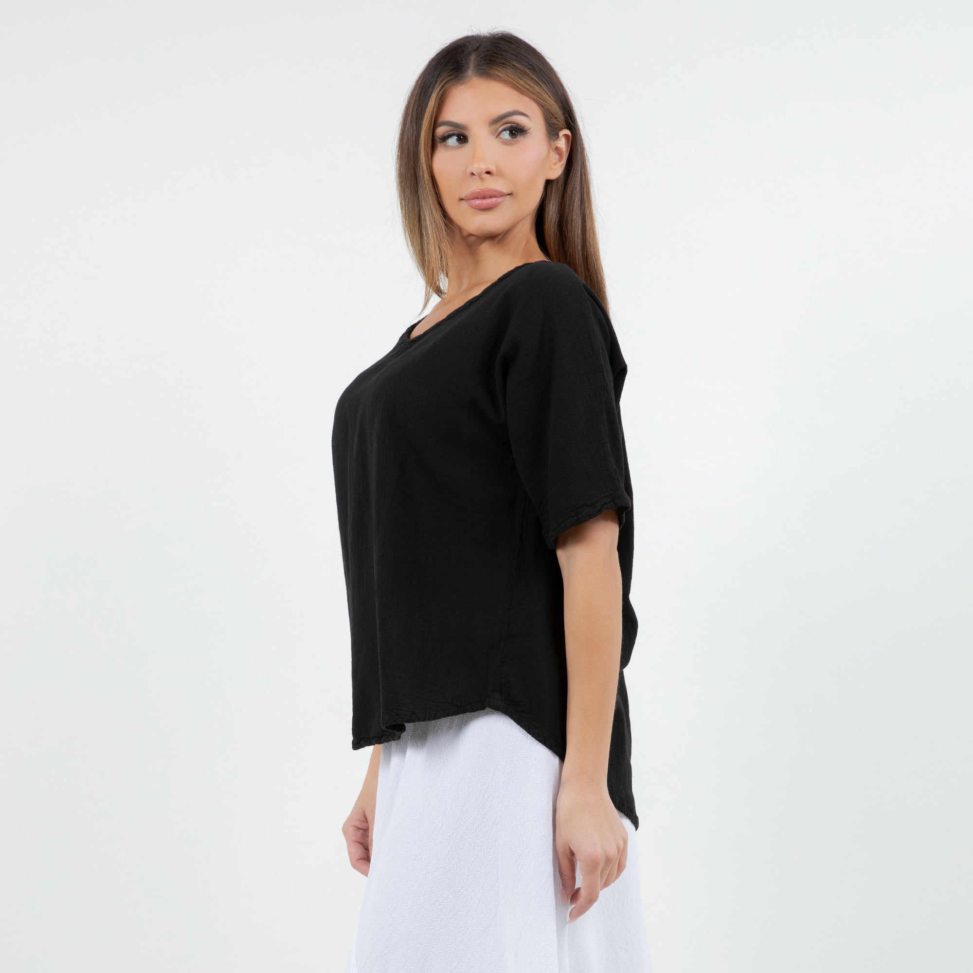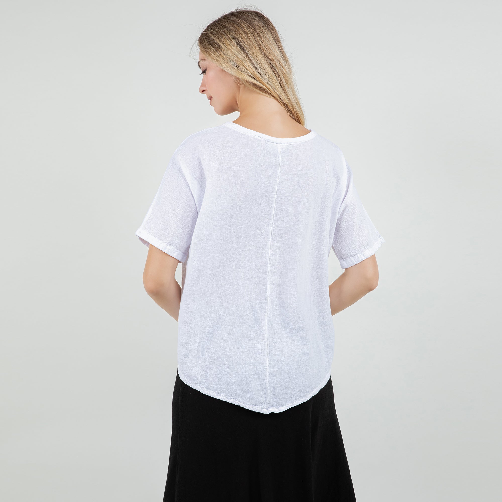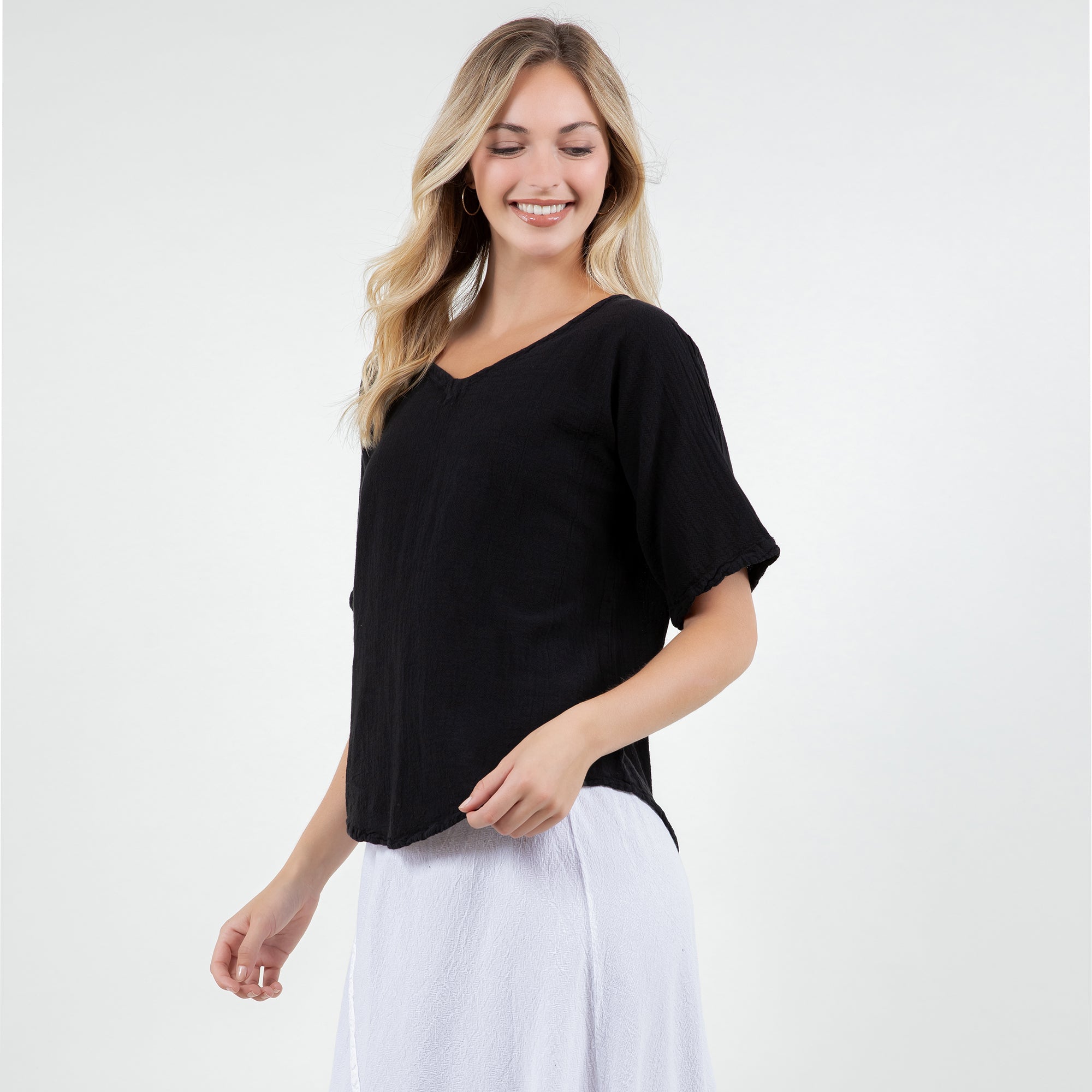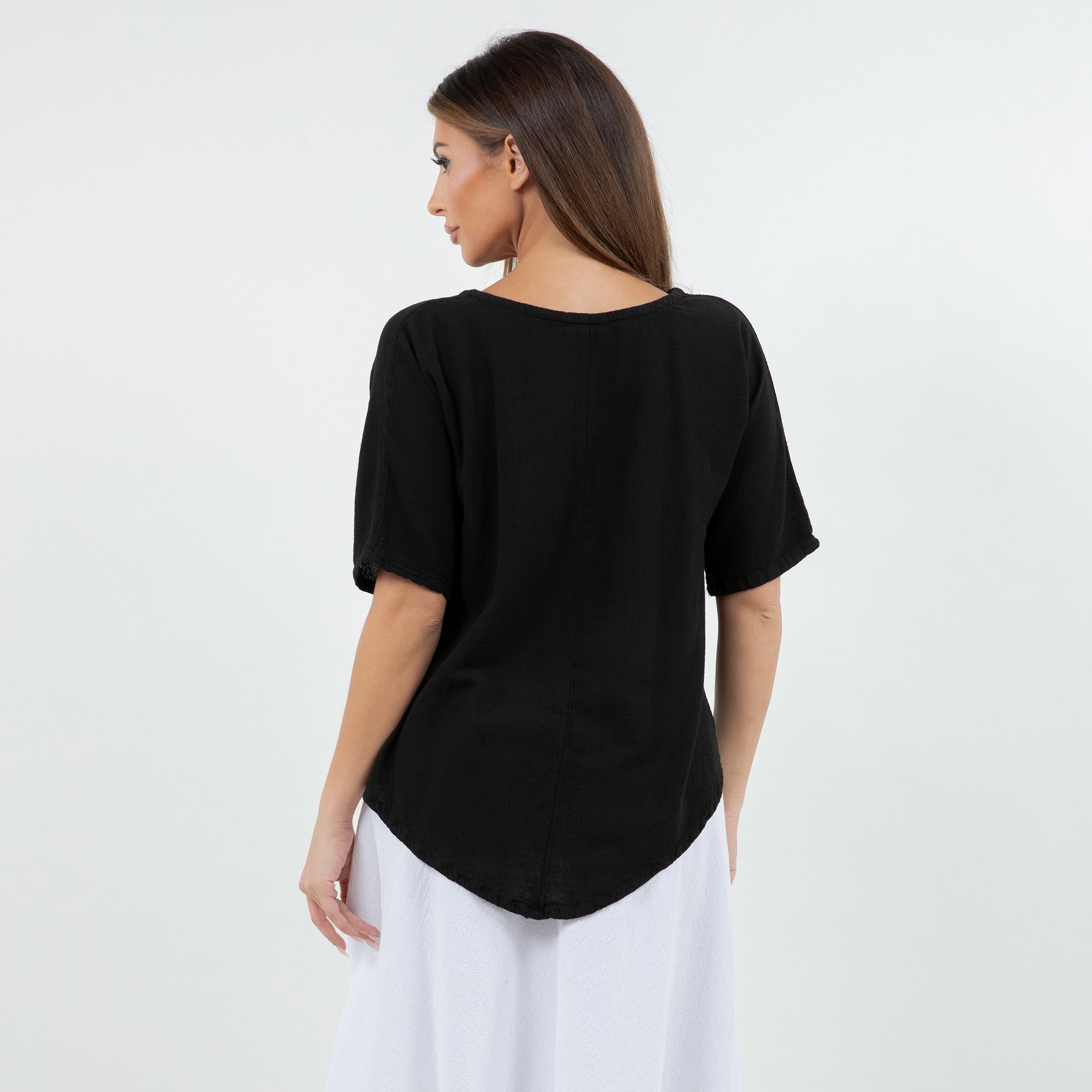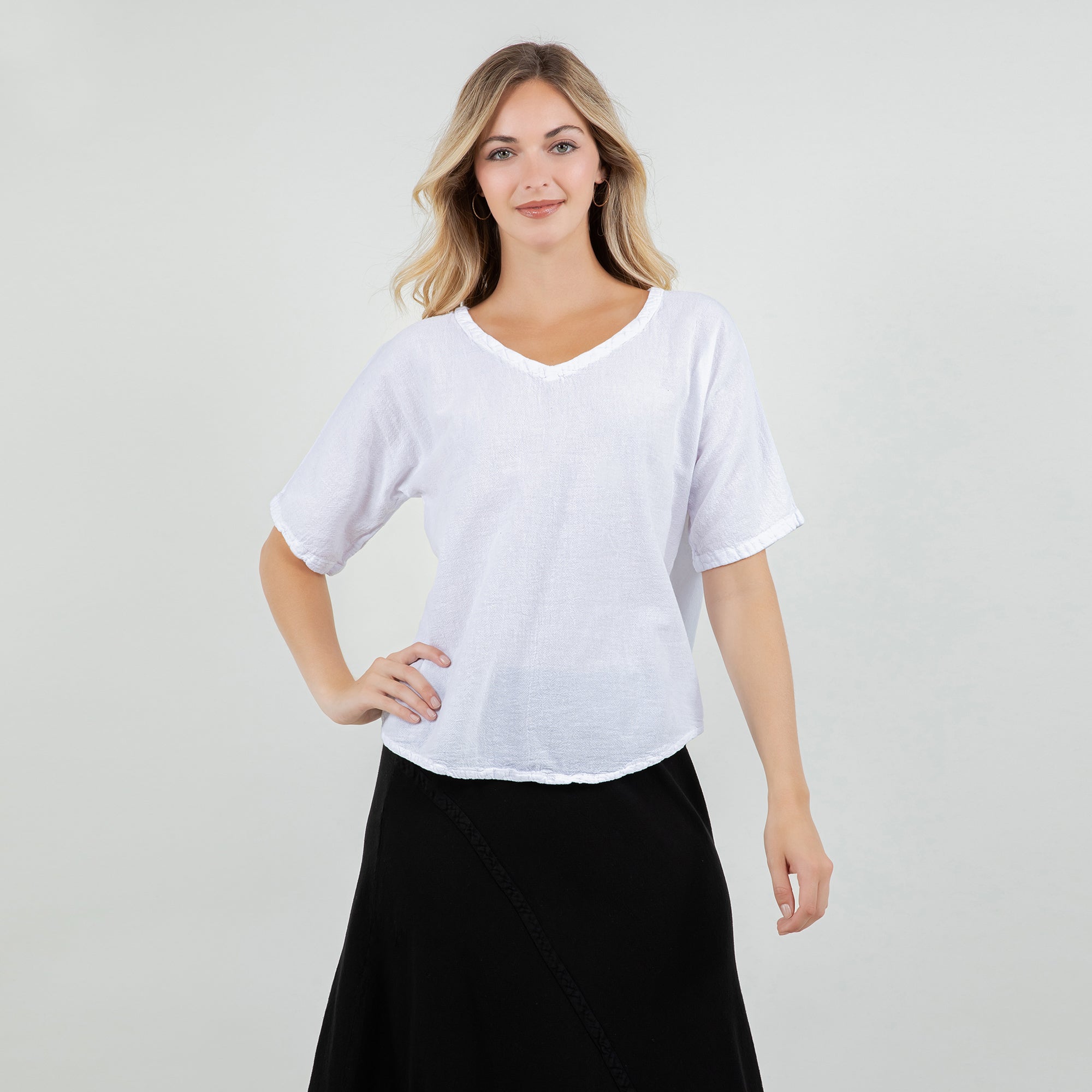 Featuring a mid-length sleeve and scoop bottom with matching neckline, the Mary is a classic style top that shines with any outfit!