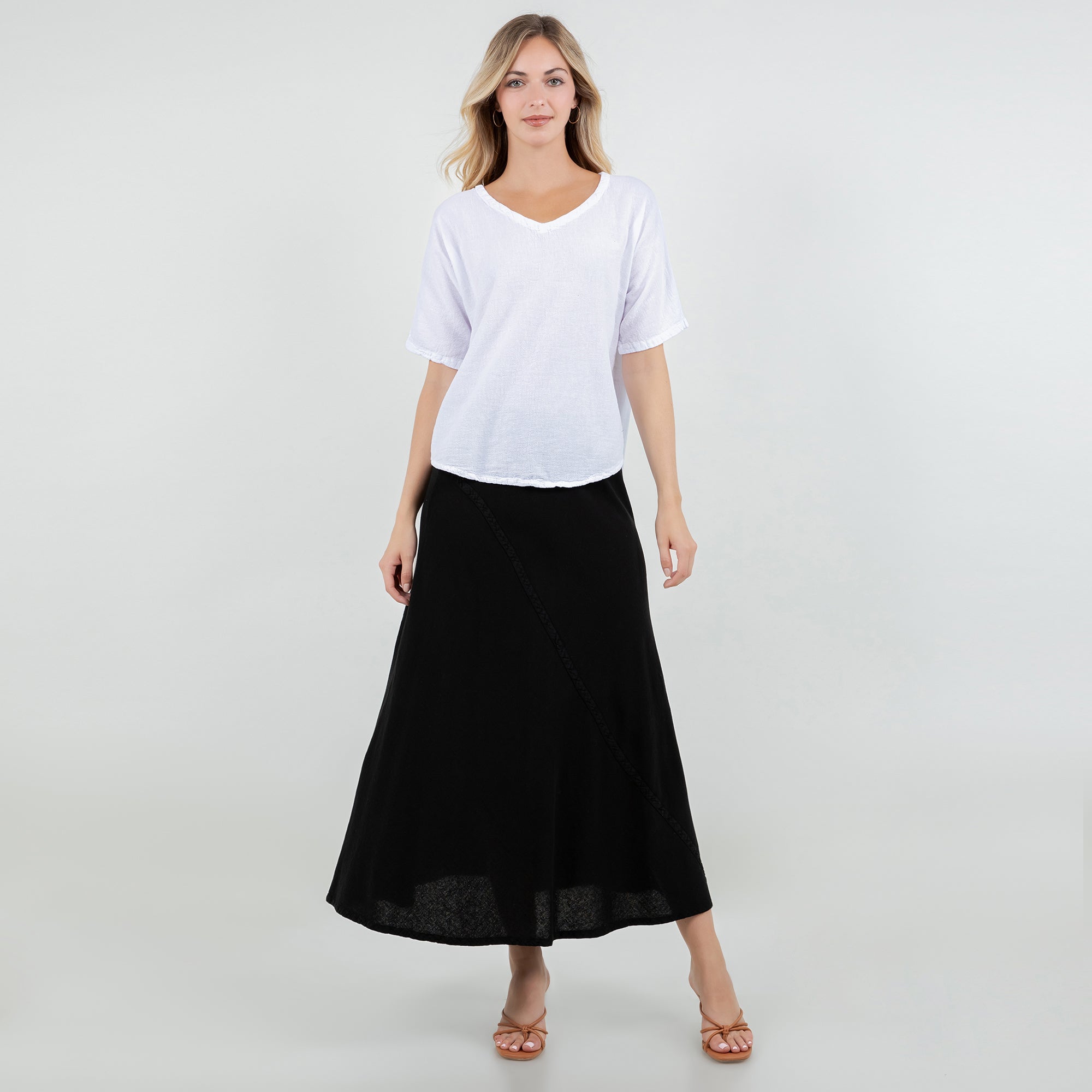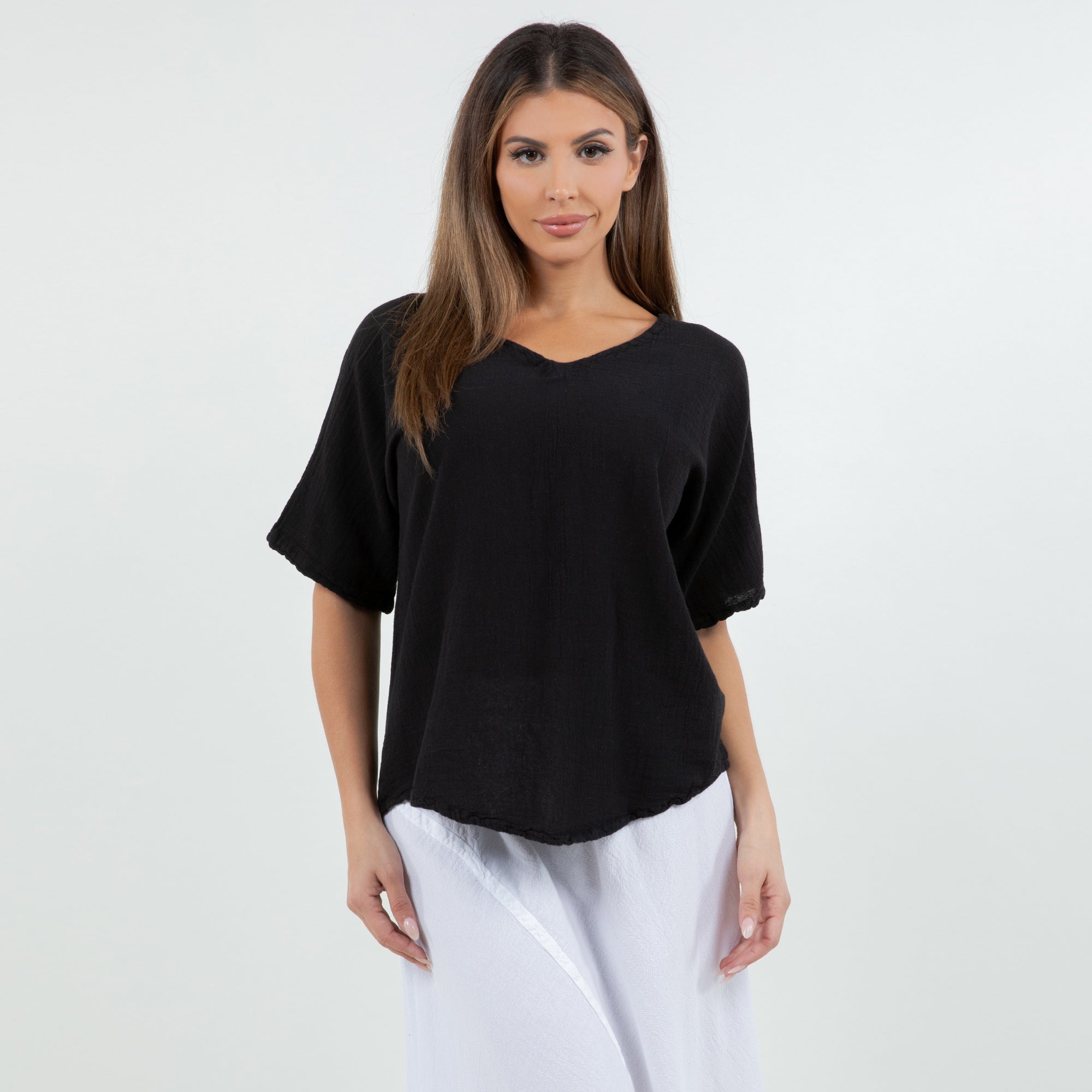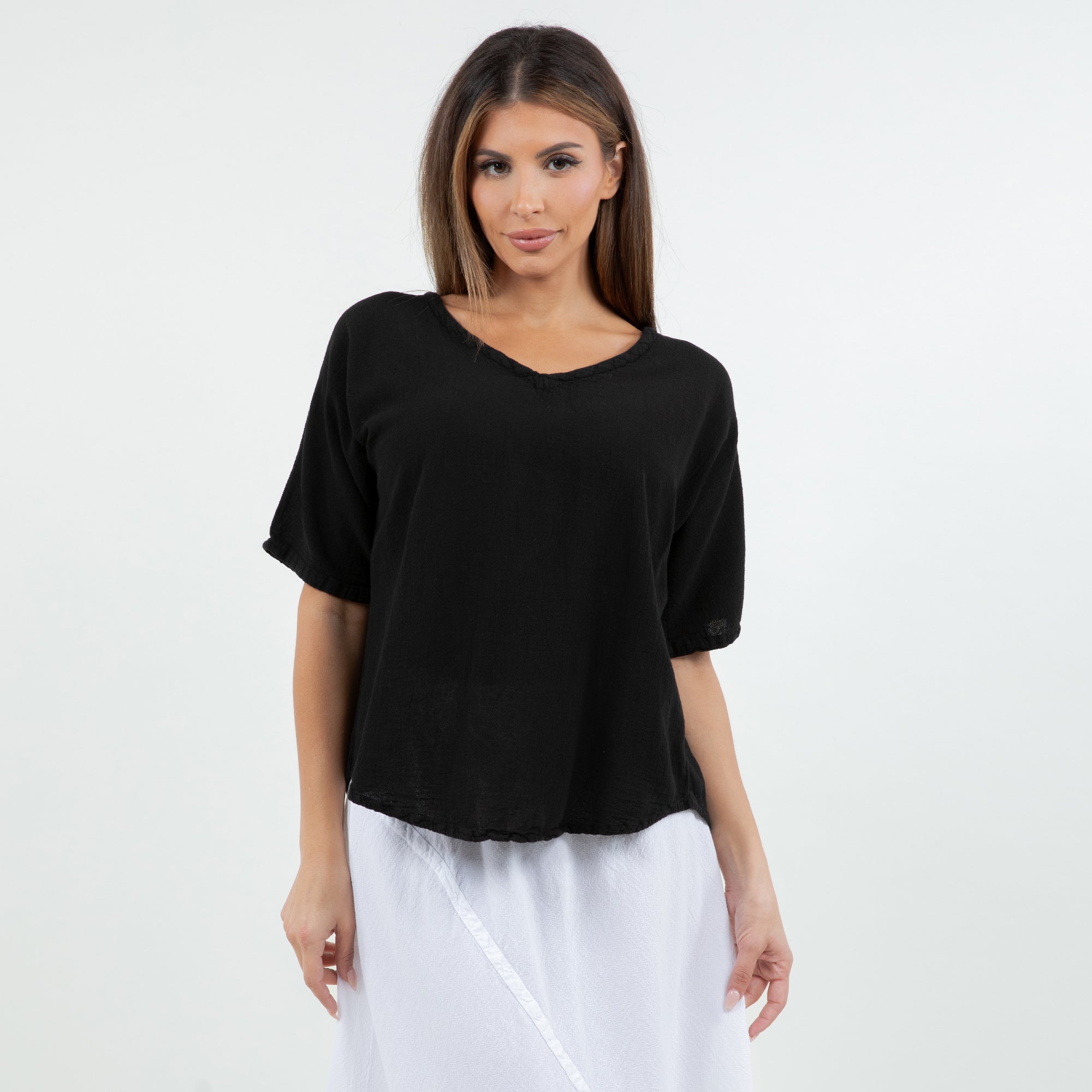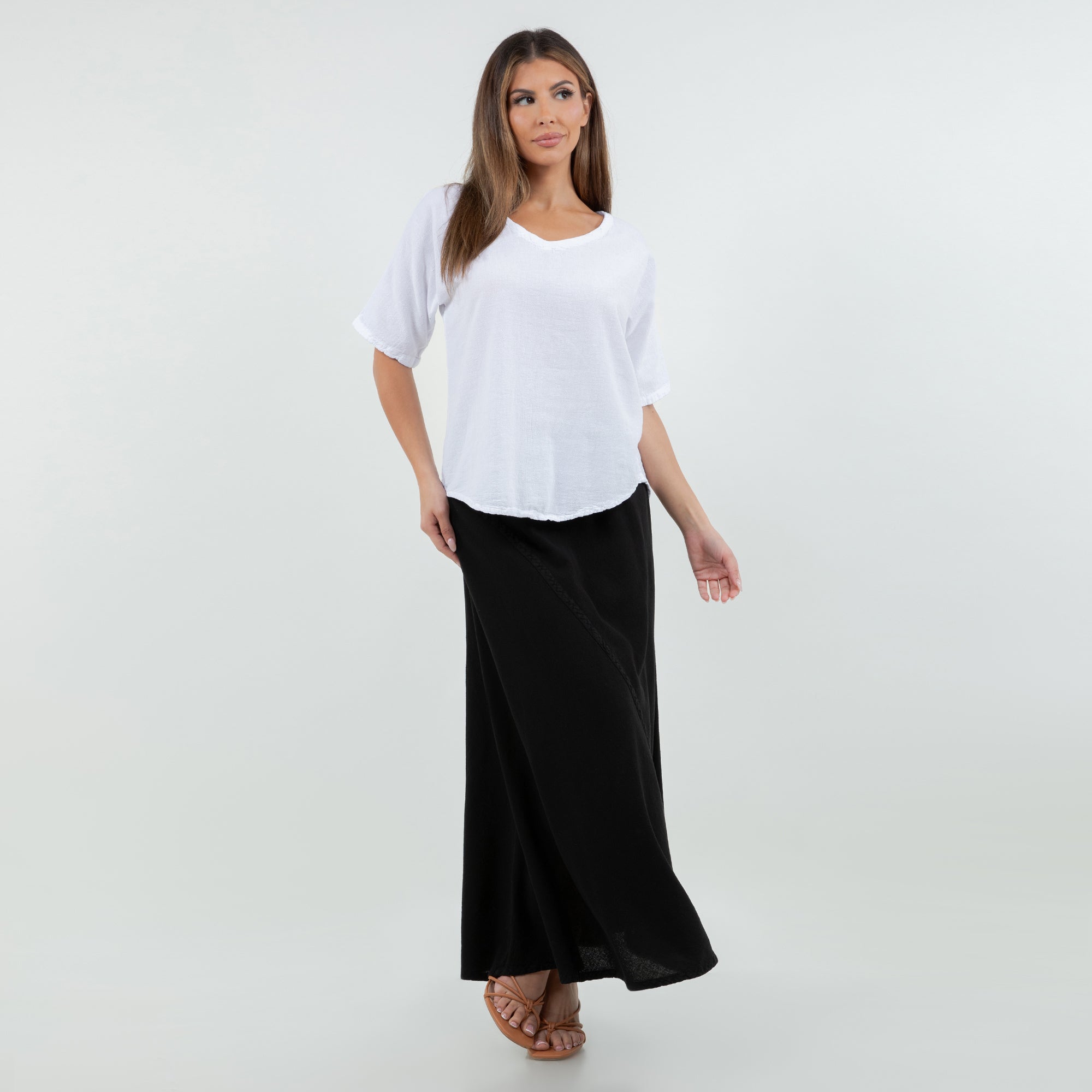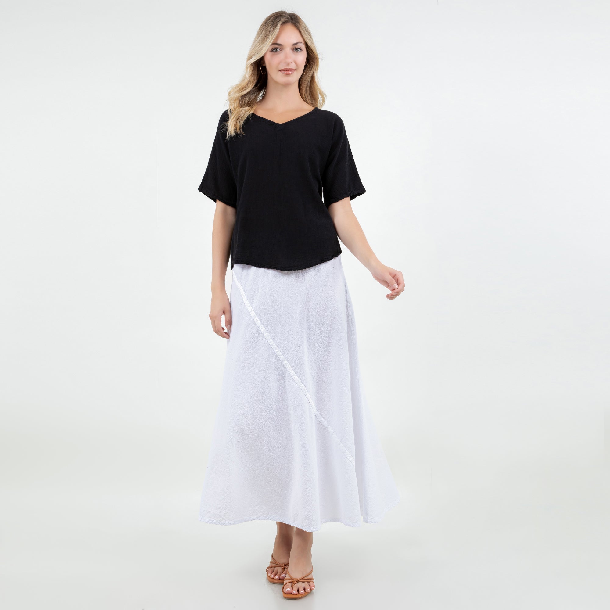 Featuring a mid-length sleeve and scoop bottom with matching neckline, the Mary is a classic style top that shines with any outfit!
