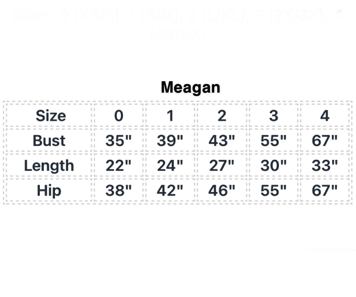 Sizes: 0 (XS/S), 1 (S/M), 2 (L/XL), 3 (2X/3X), 4 (4X/5X)
