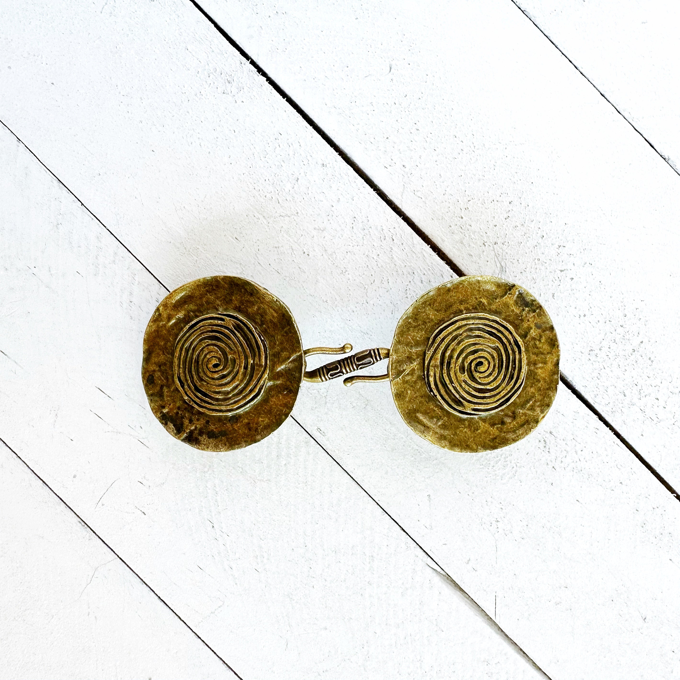Made with heavyweight bronze and featuring a central spiral pattern attached by a single S-hook with detailed etched design, these medallions are the perfect embellishment or finishing touch to complete your historical-themed costume, or just add a *hint* of medieval magic to your outfit!