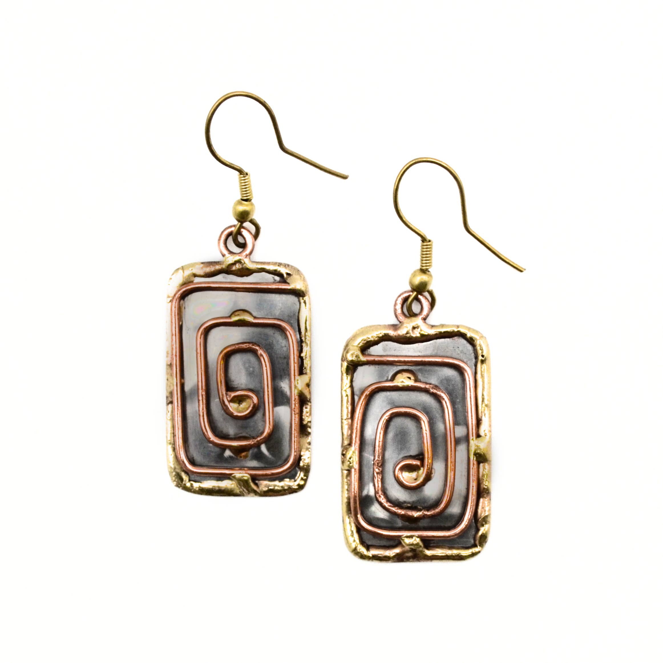 Handcrafted by artisans, made of stainless steel with brass and copper. Ear wires are lead and cadmium free.