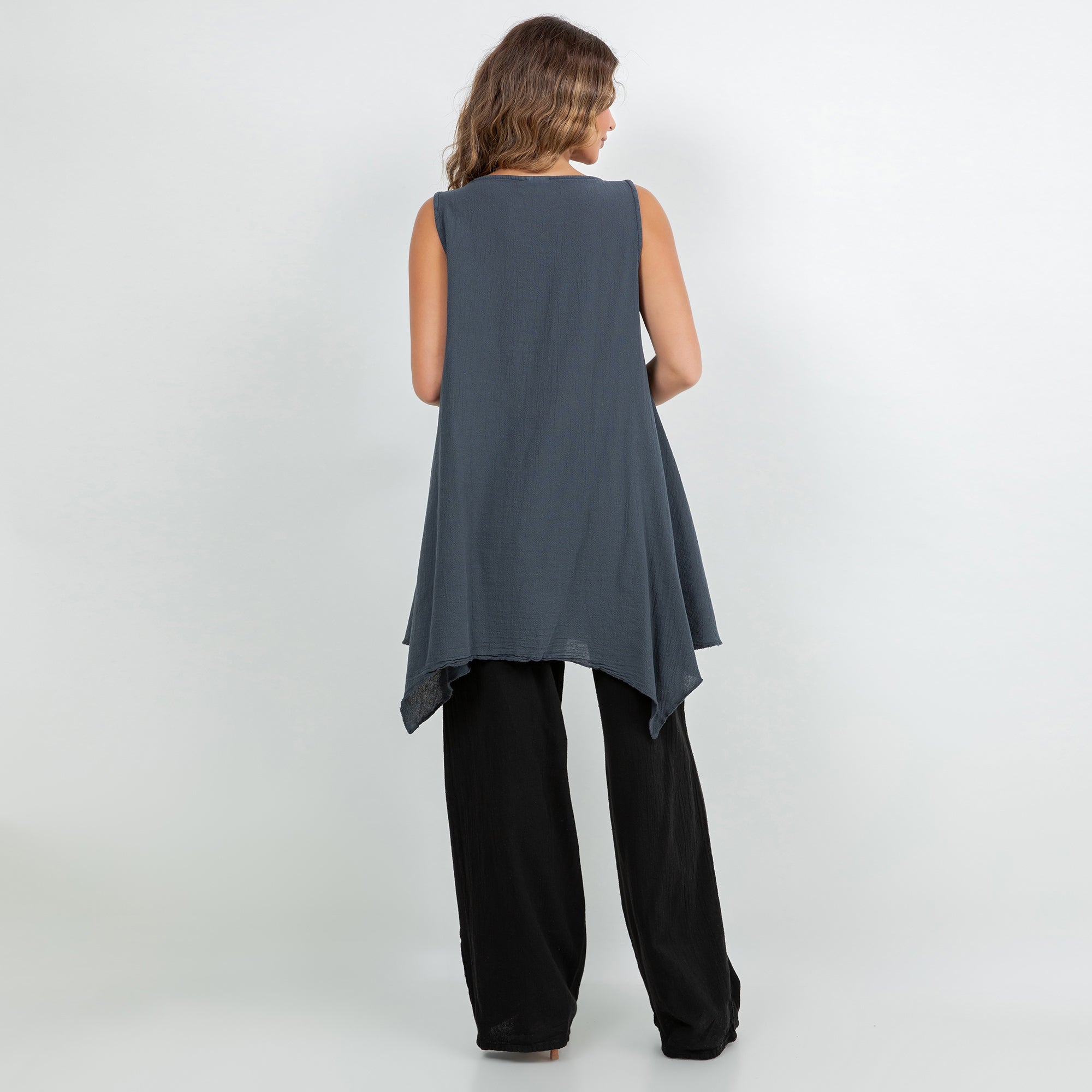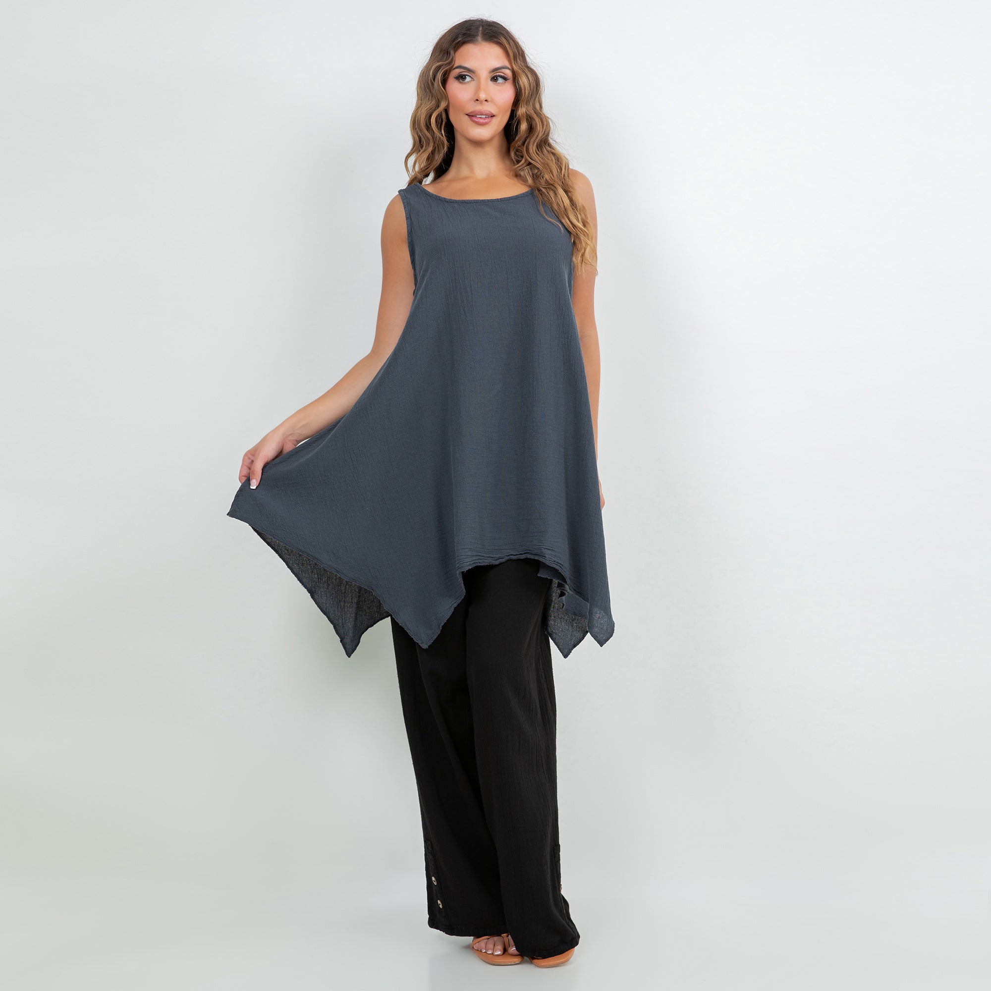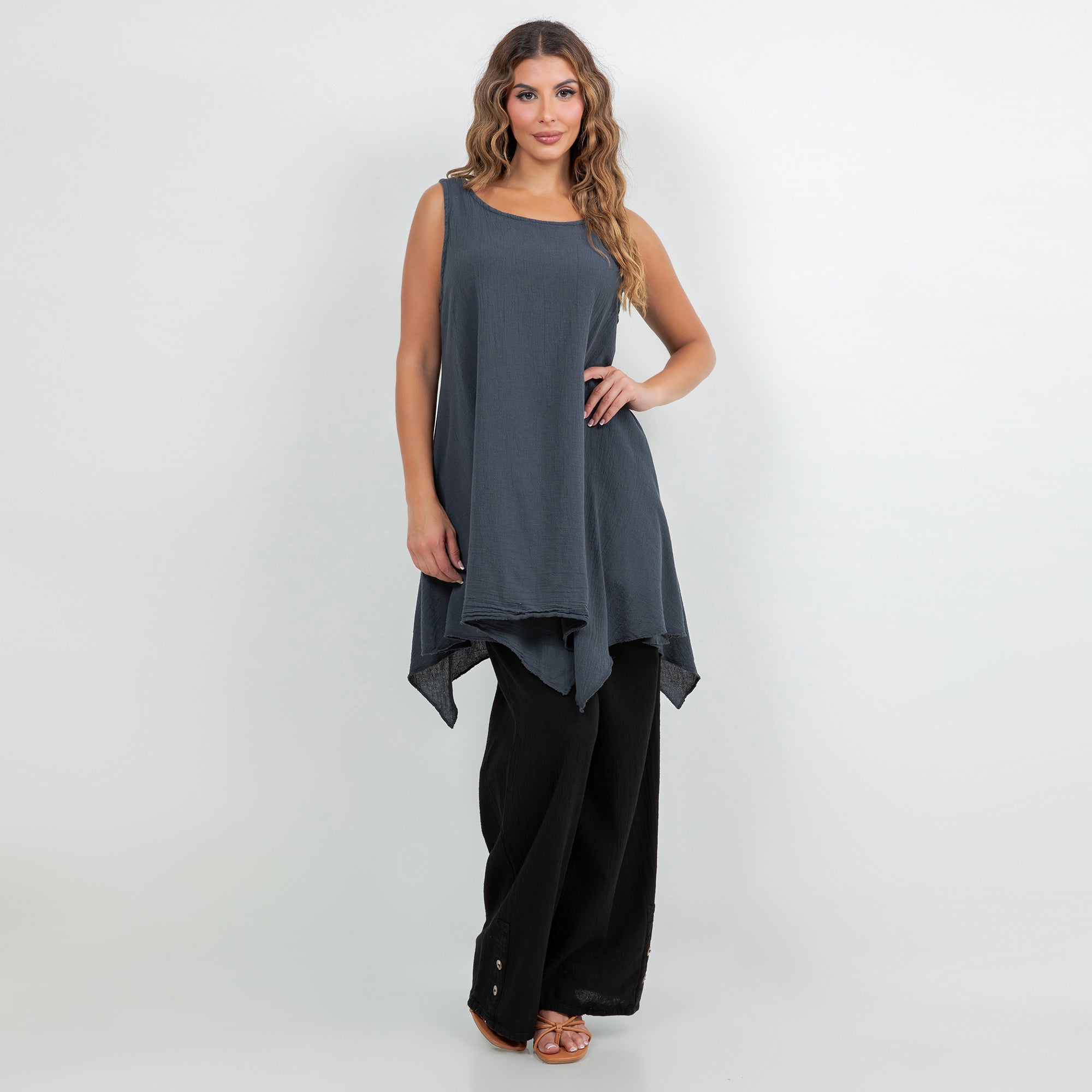 The sleeveless Natalie tunic is a fabulous full cut tunic top that looks amazing on everyone from Petites to Plus. Paired with a Becky, you are *Chef's kiss* Good to go!!