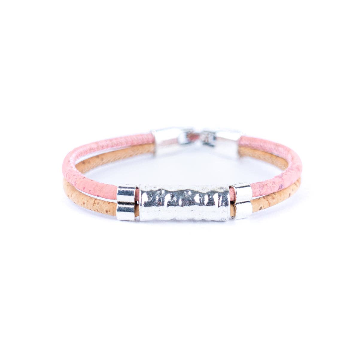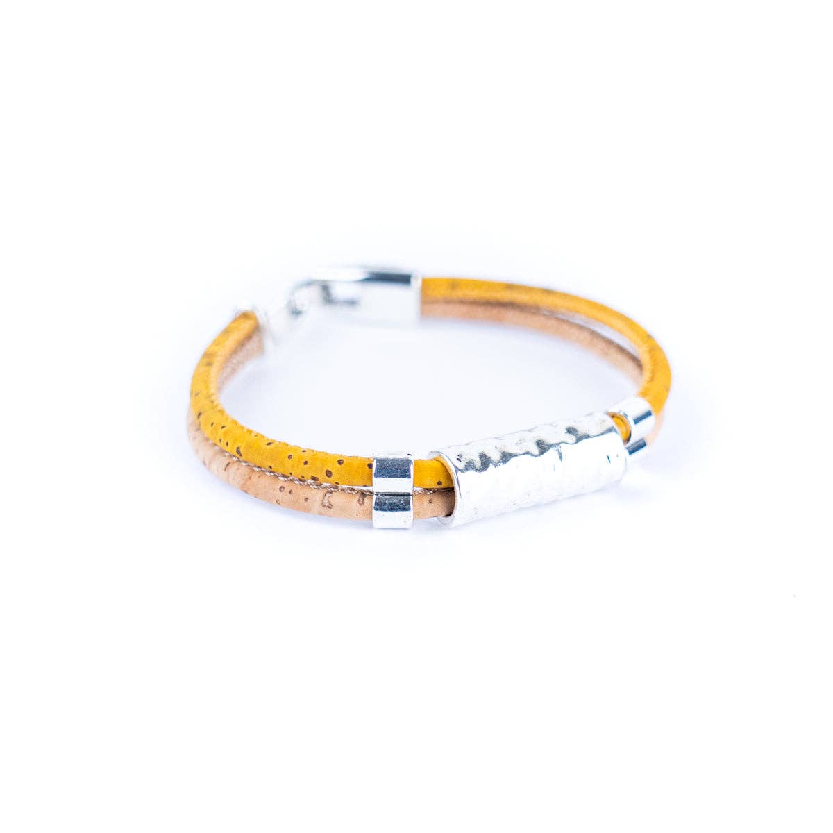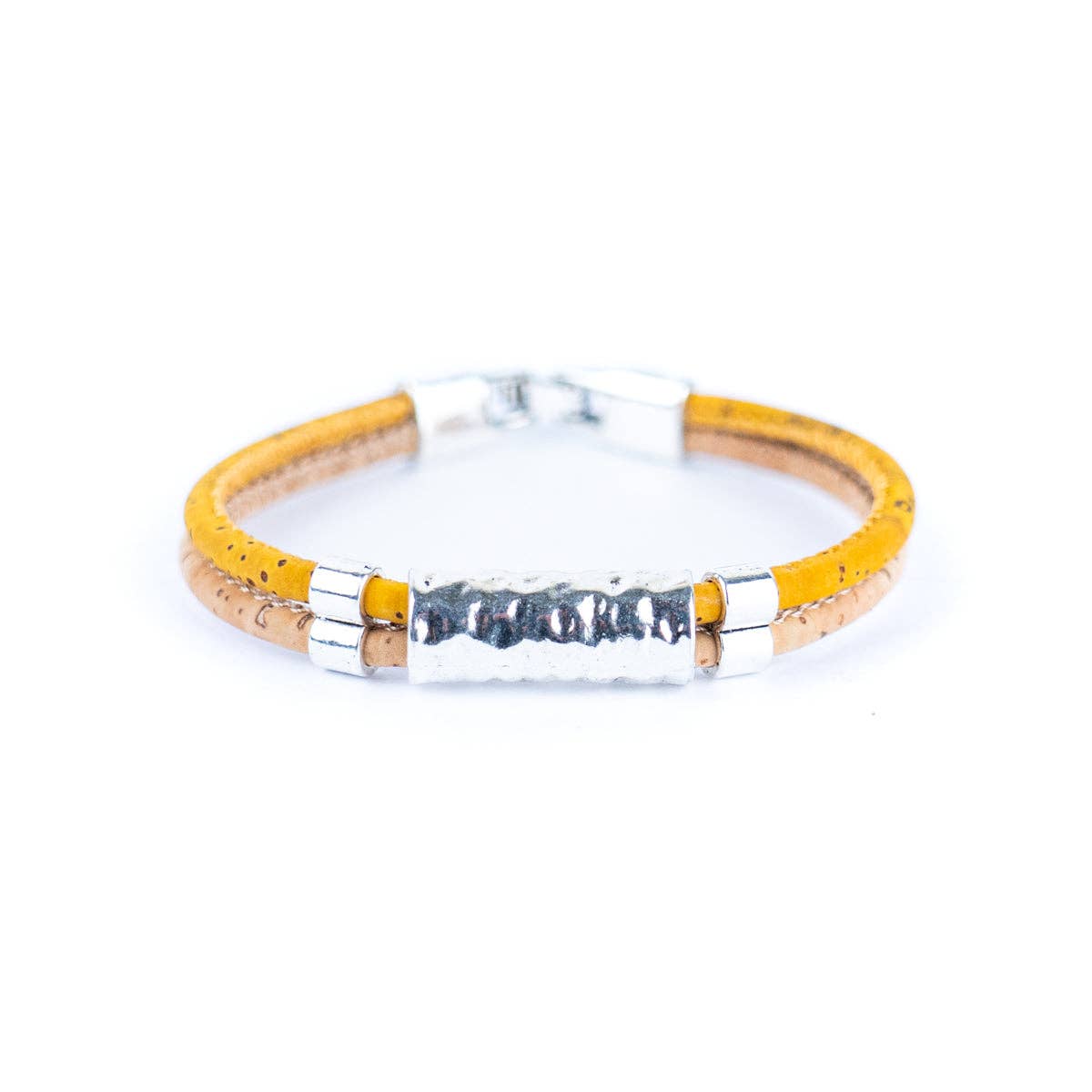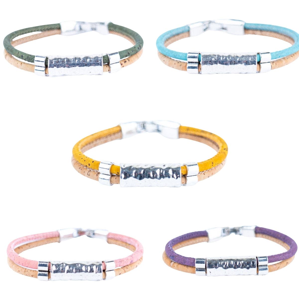 Natural Cork Bracelet with Silver Tube Alloy 446