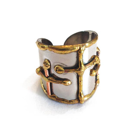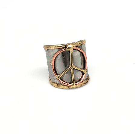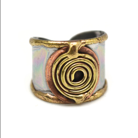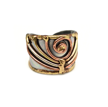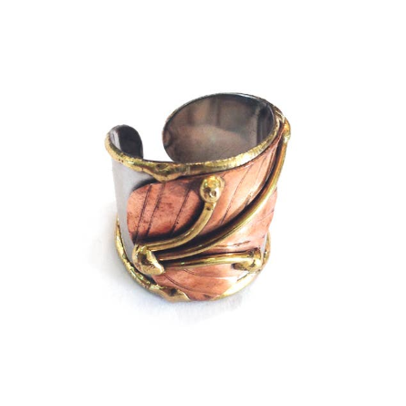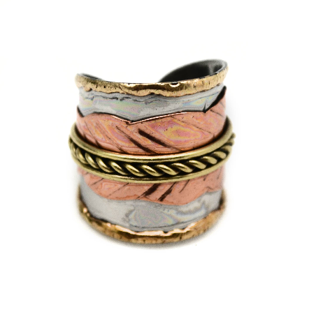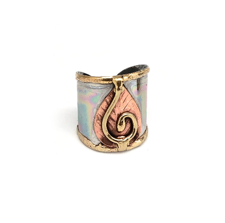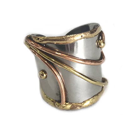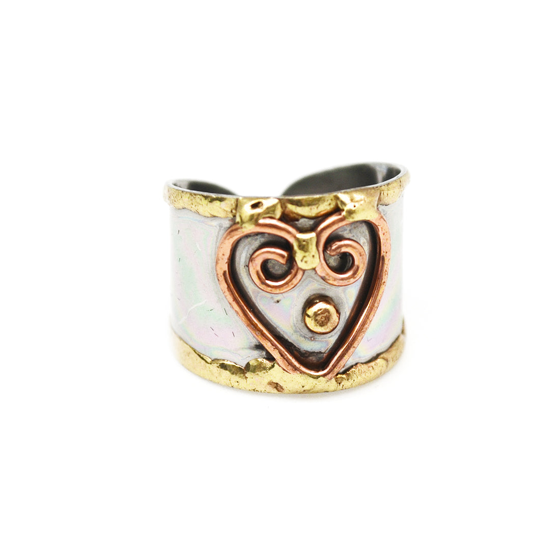 Mixed metal (stainless steel base with copper and brass accents) ring – heart