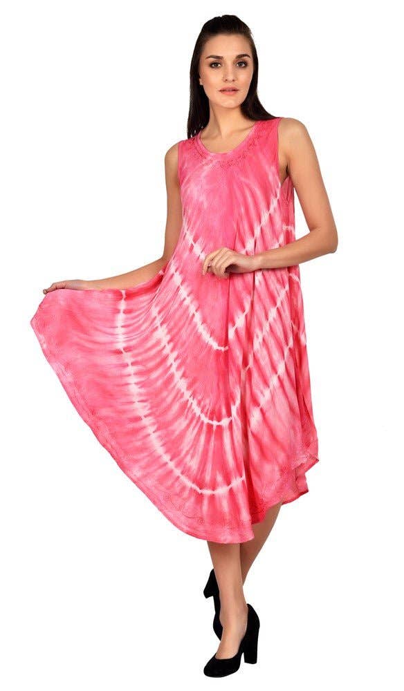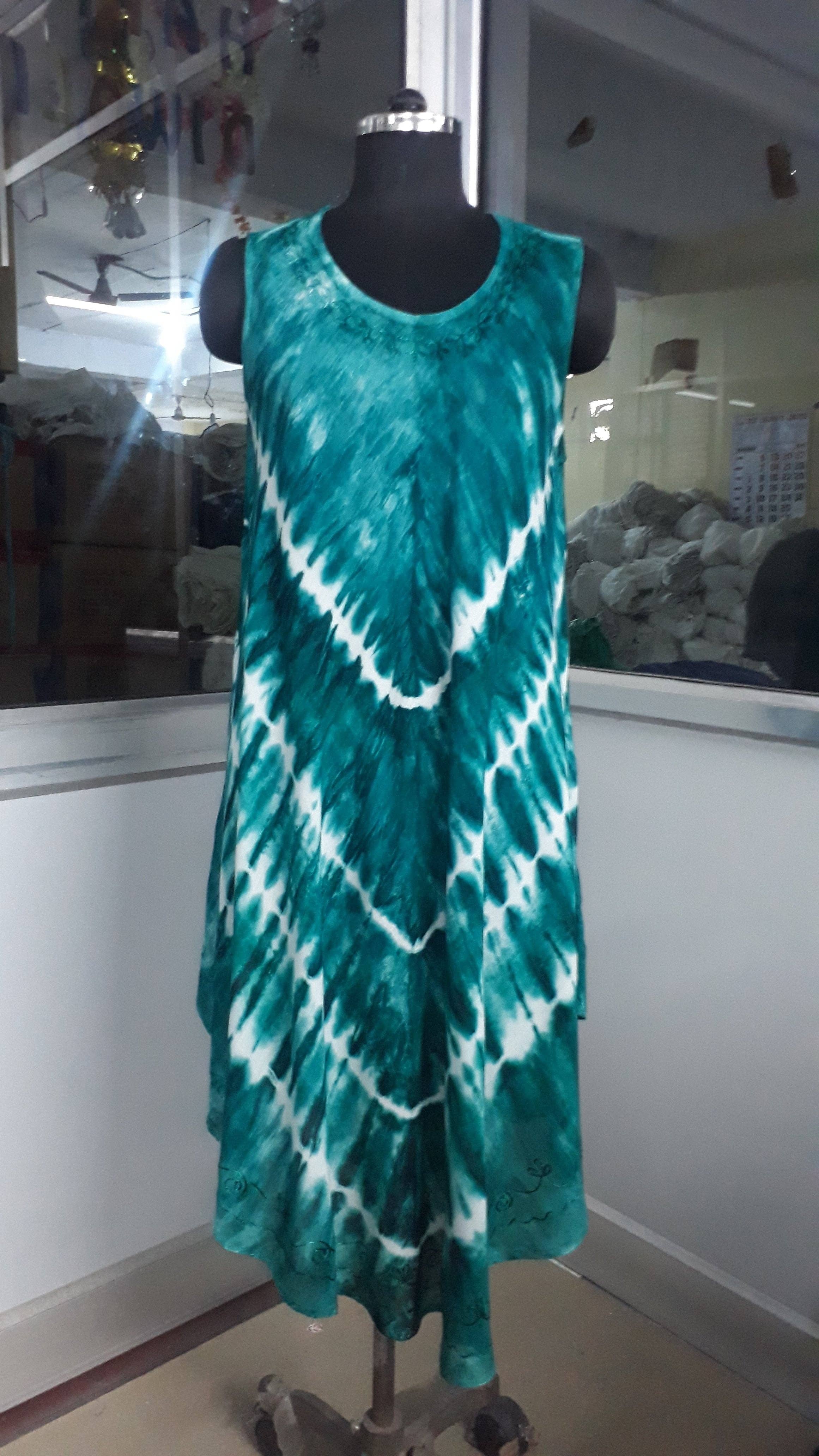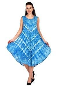 This 42 inch Advance Apparels wide strap sleeveless tie dye dress is individually dyed and stitched by skilled artisans in Jaipur, India. Our one size a-line umbrella dresses are designed to provide all day comfort whether you're in your house or on vacation without sacrificing any style.. * 100% Rayon * Made-in-India * One Size Fits Most *