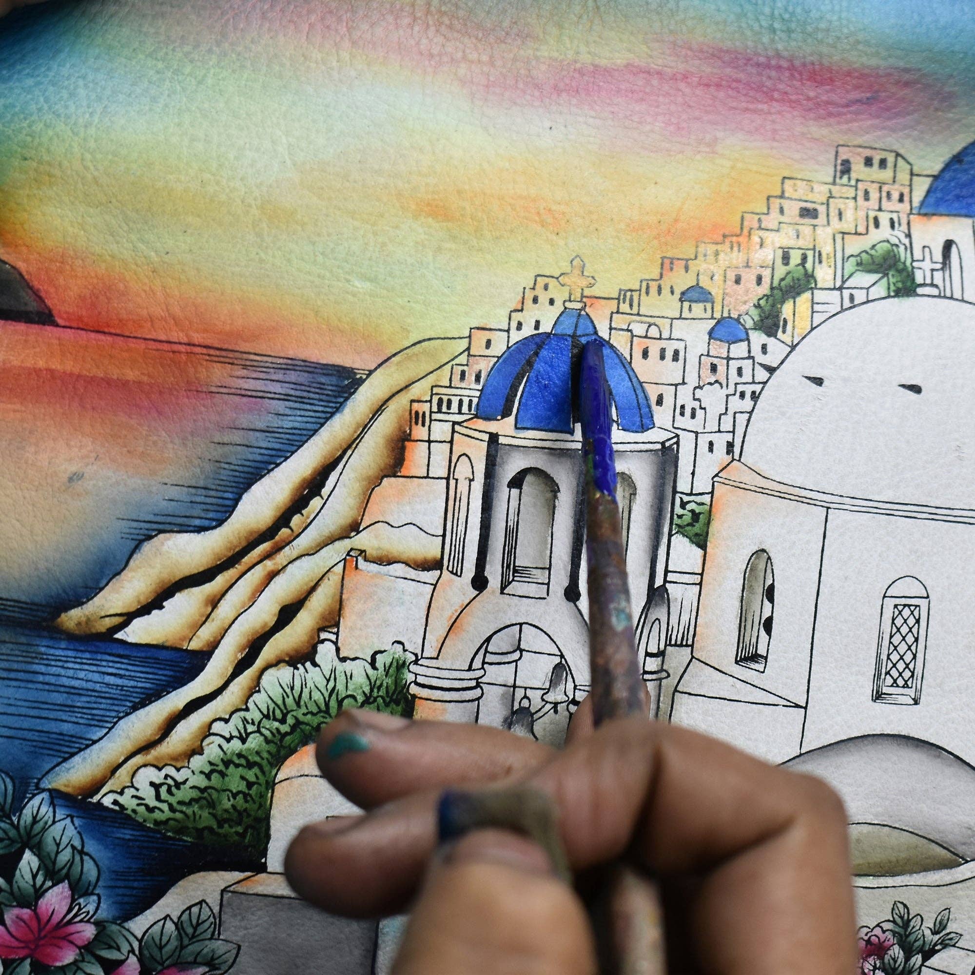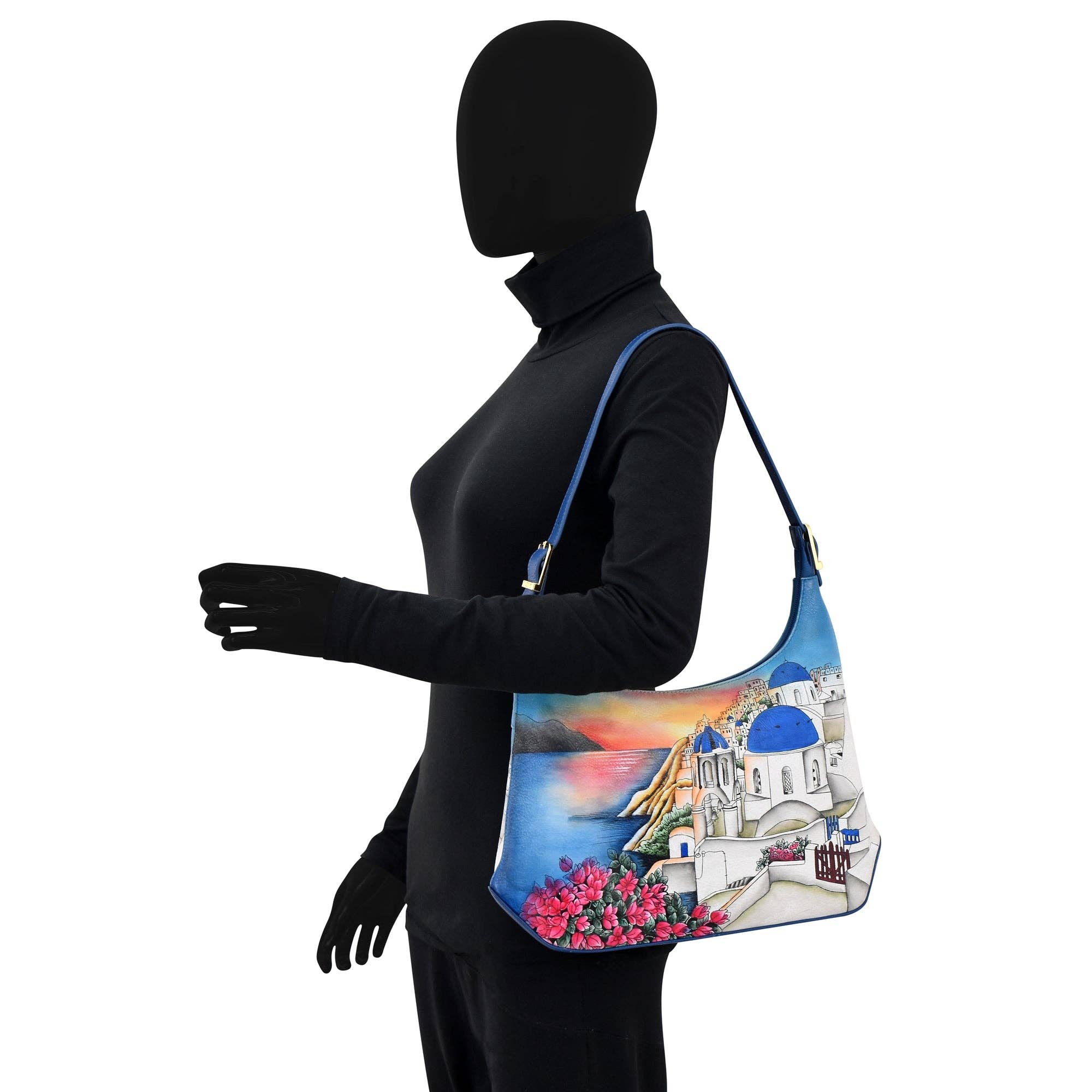 Hand Painted Slim Shoulder Hobo - 714 Santorini