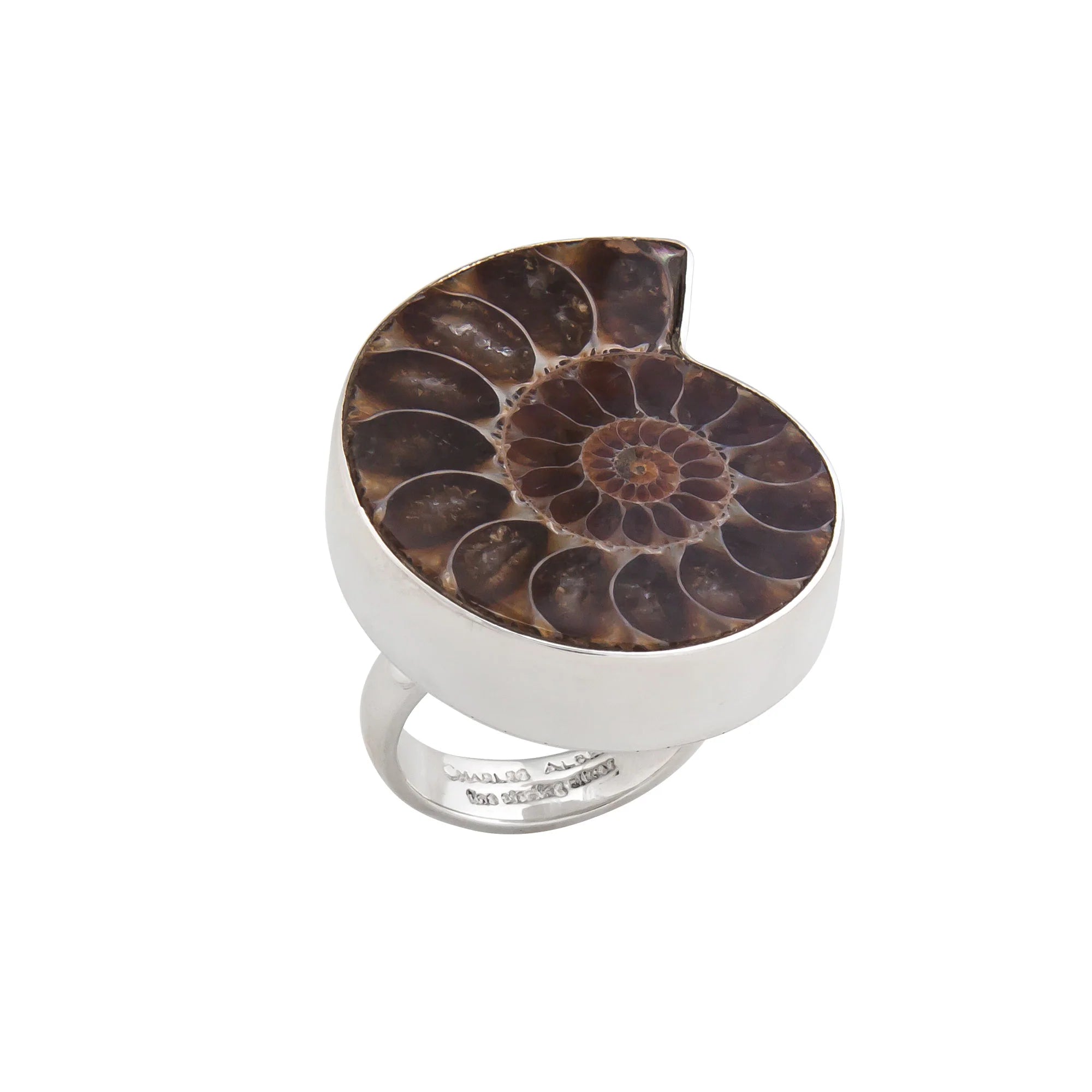 Embrace the beauty of nature with our Sterling Silver Ammonite Adjustable Ring!
