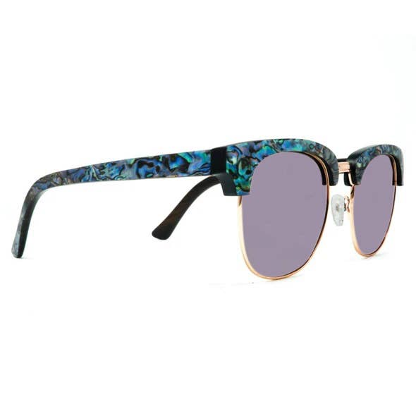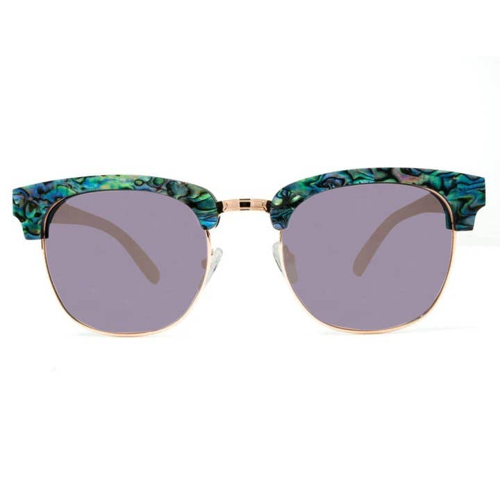 Introducing our timeless Yachtmaster design, now layered with genuine abalone seashells! This clubmaster style frame features gold wire and ebony wood. The smoke polarized lenses are perfect for everyday conditions.